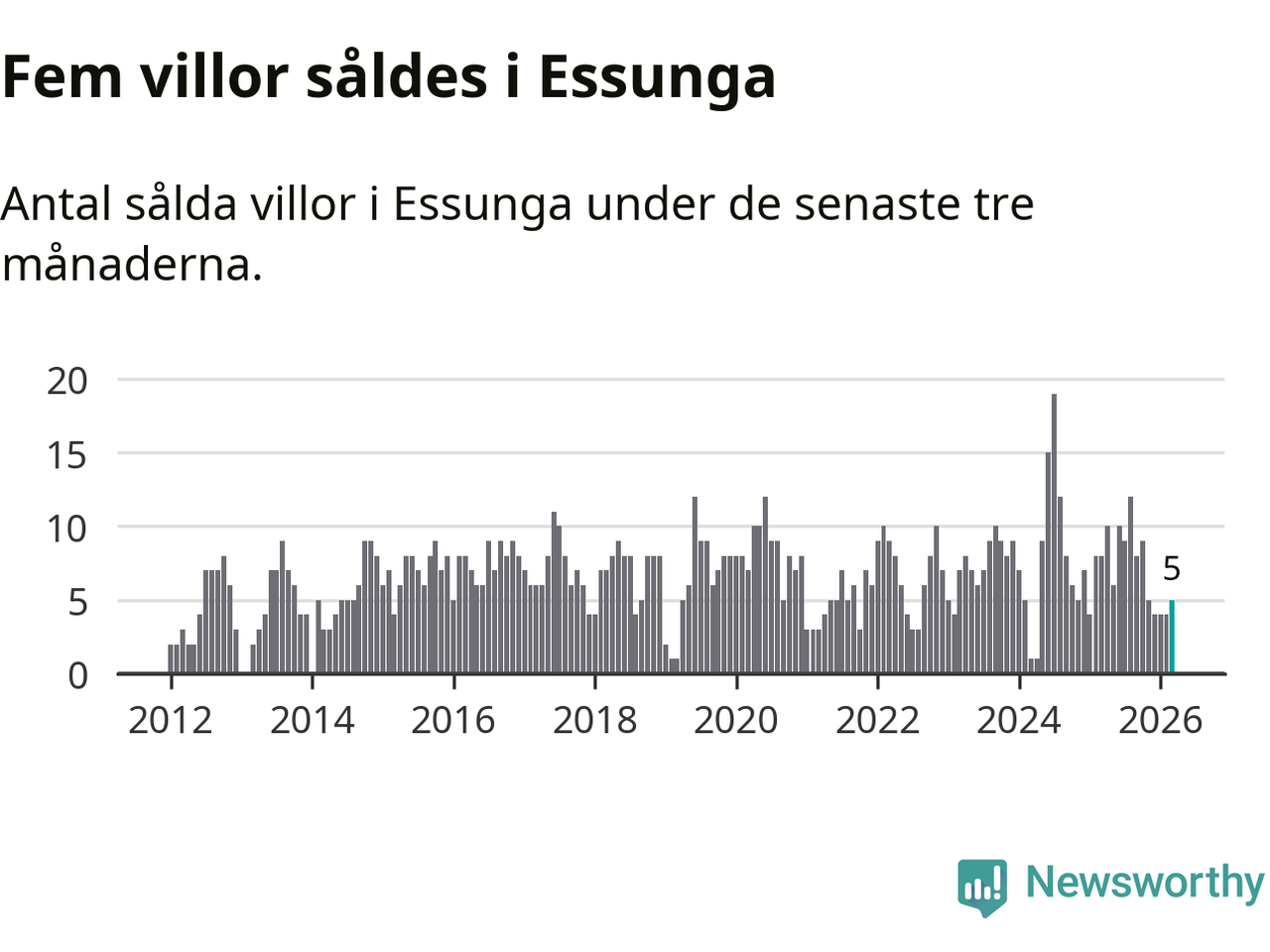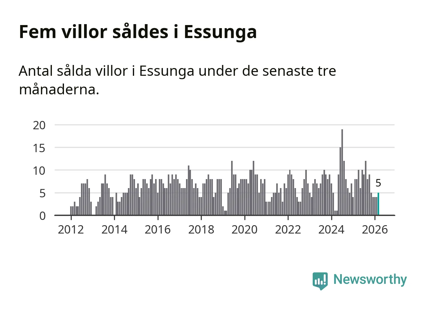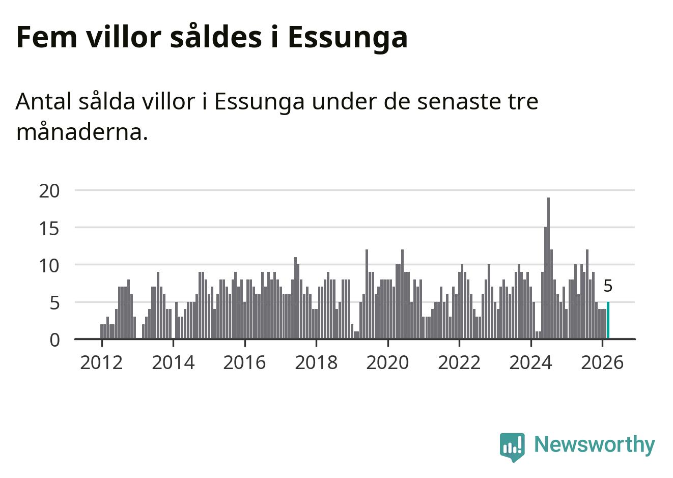 Mellan januari och mars gjordes sammanlagt fem affärer med villor i Essunga kommun. Det kan jämföras med åtta vid motsvarande tid i fjol.