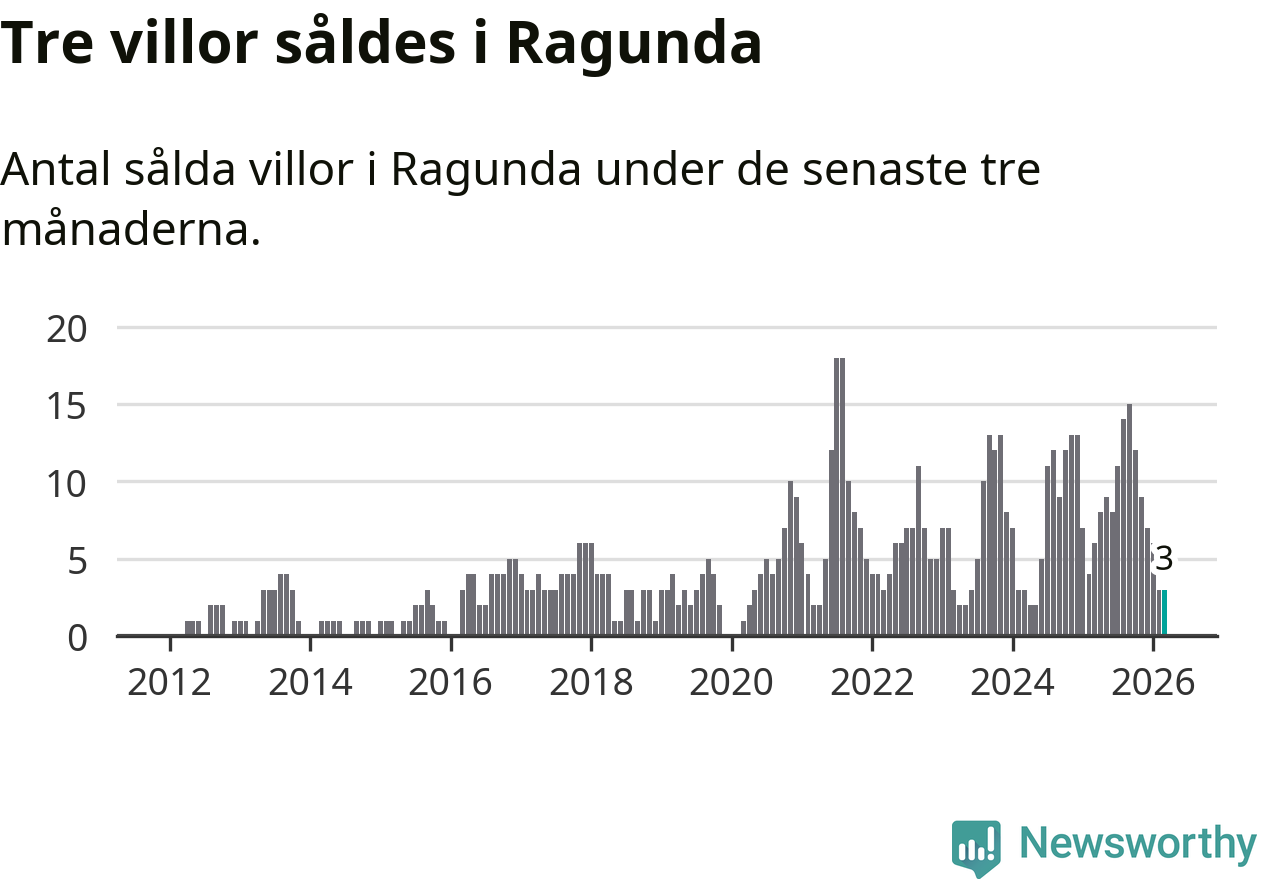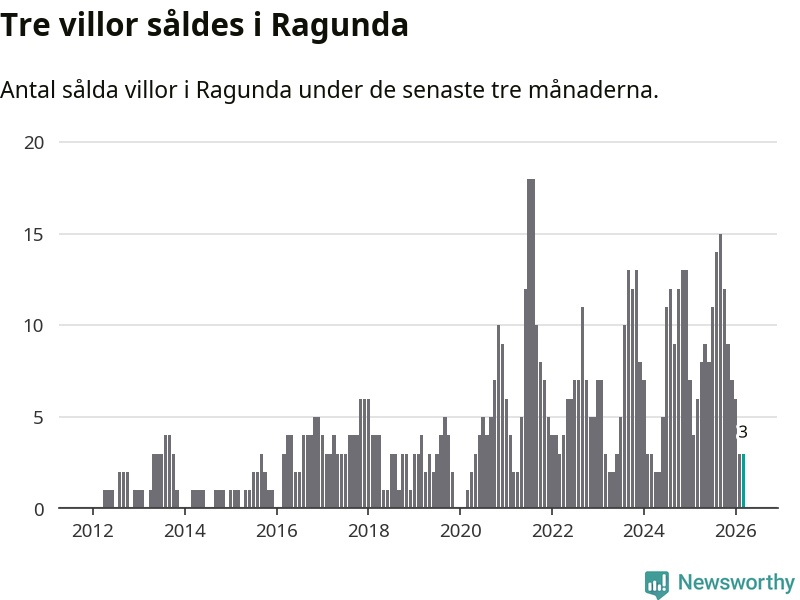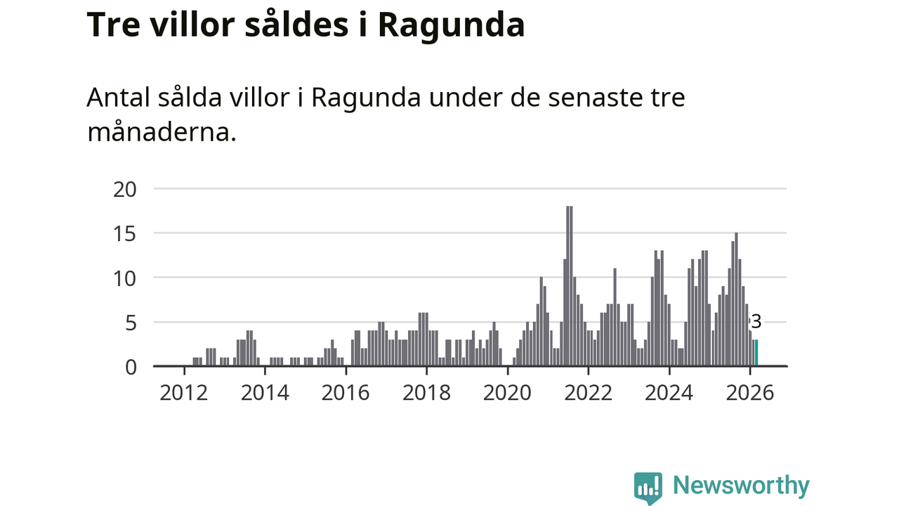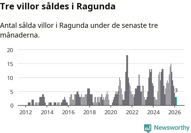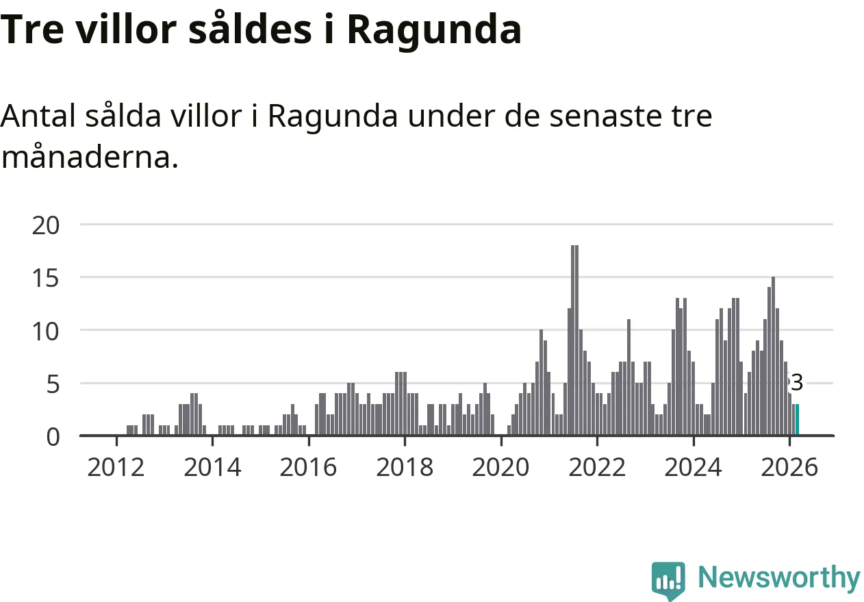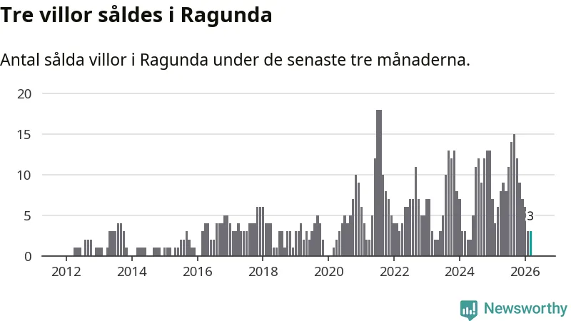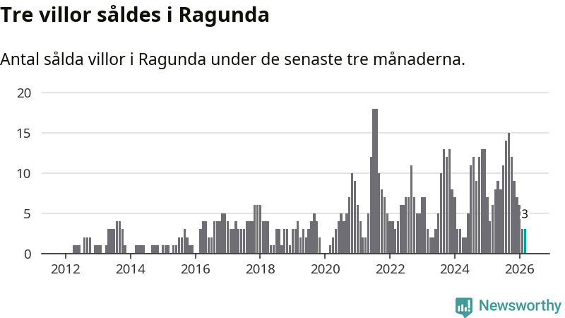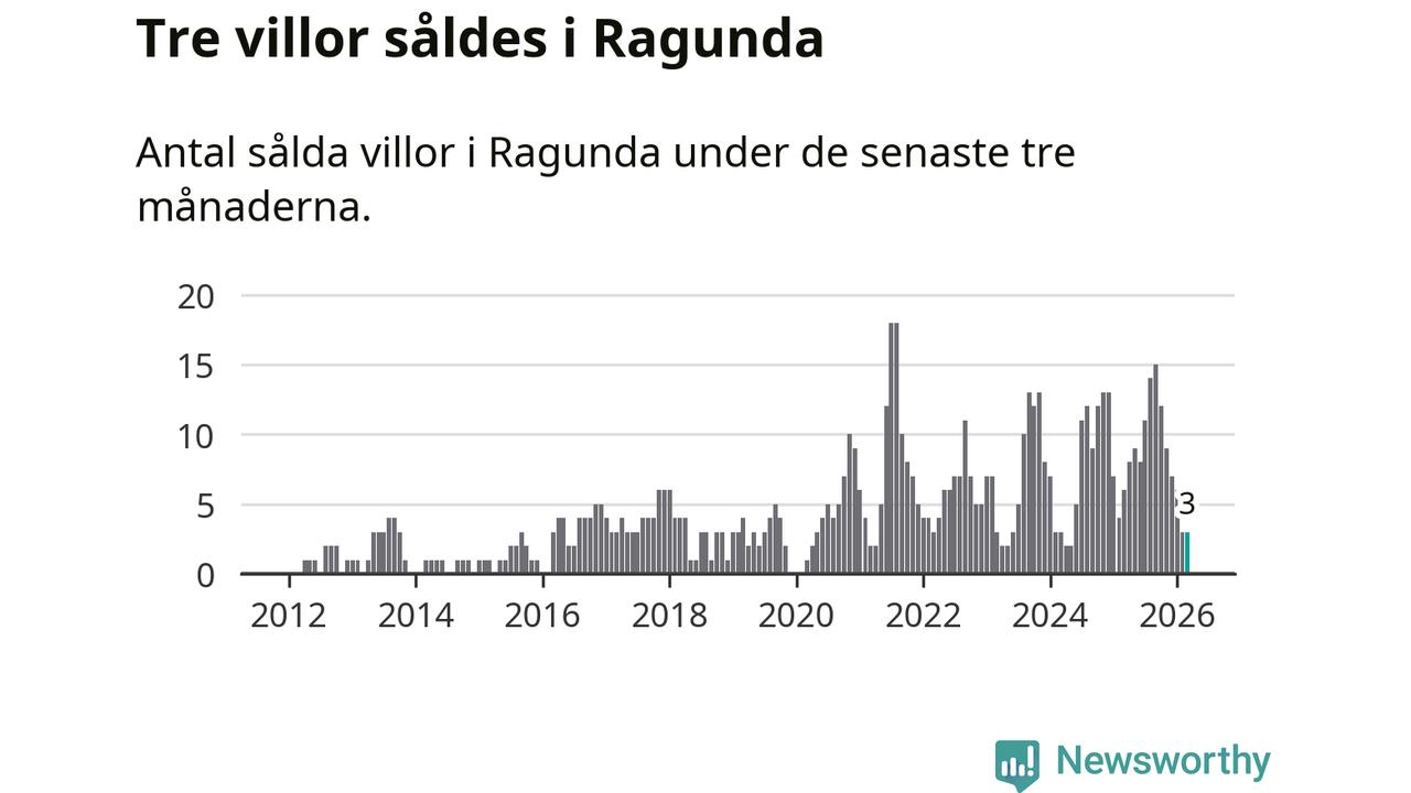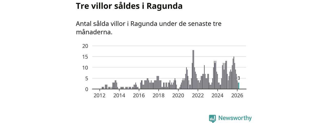 Mellan januari och mars gjordes sammanlagt tre affärer med villor i Ragunda kommun. Det kan jämföras med sex vid motsvarande tid i fjol.