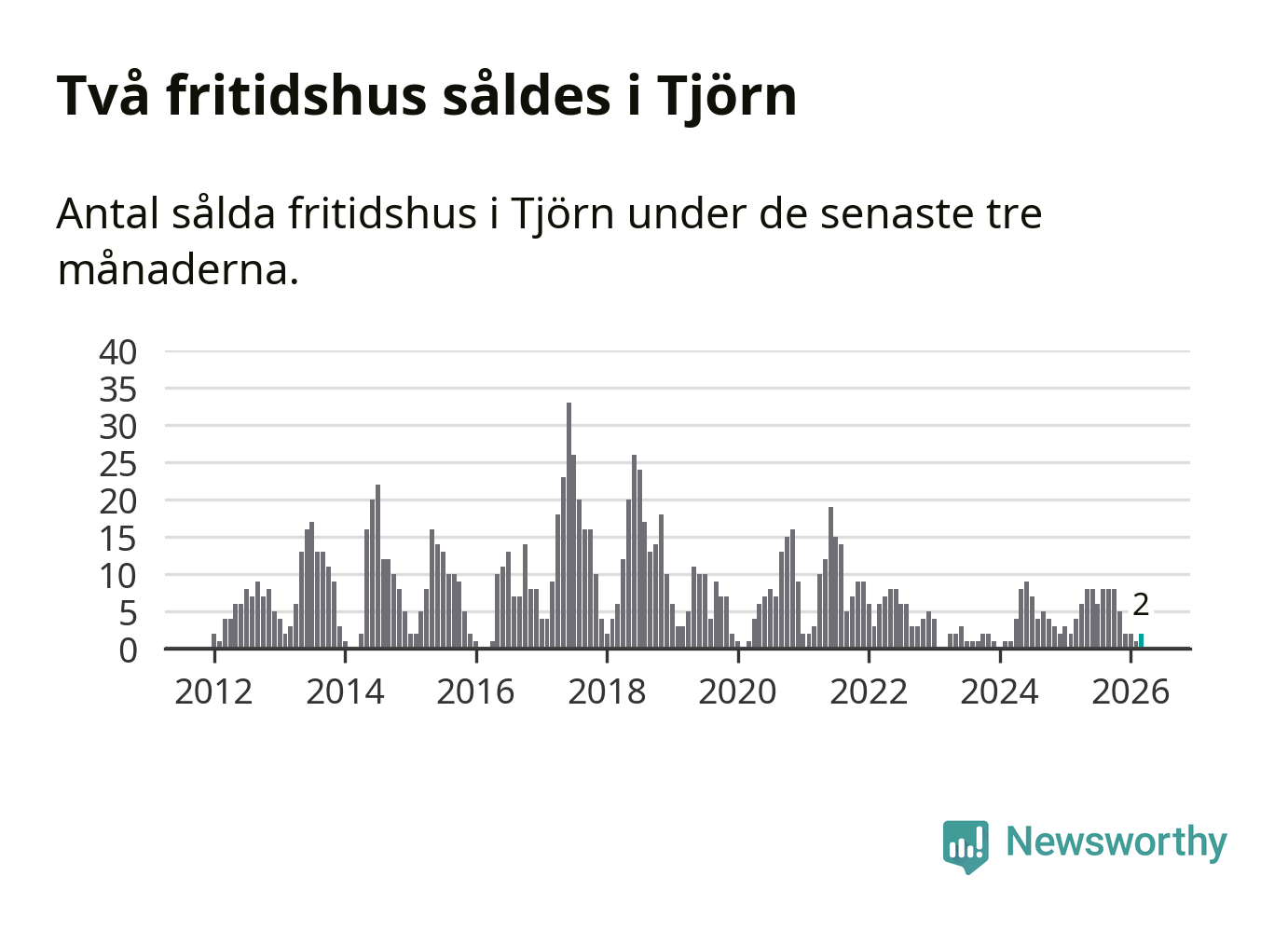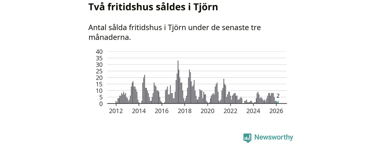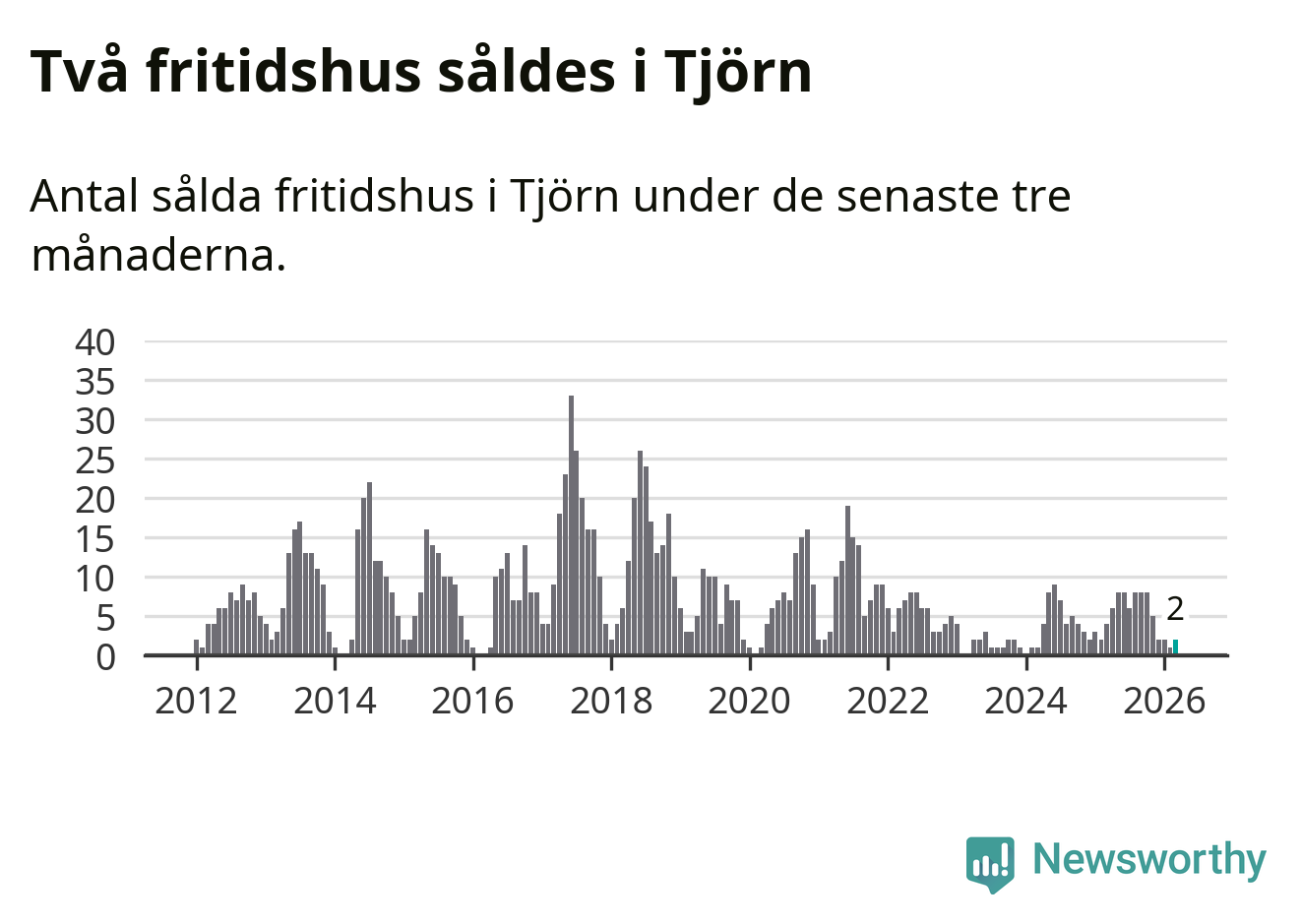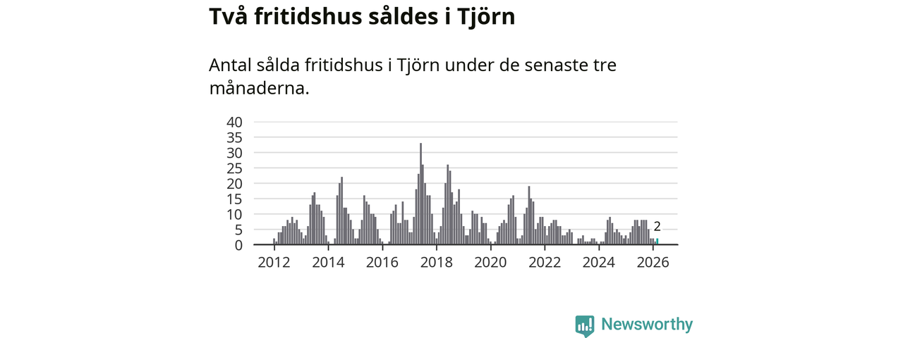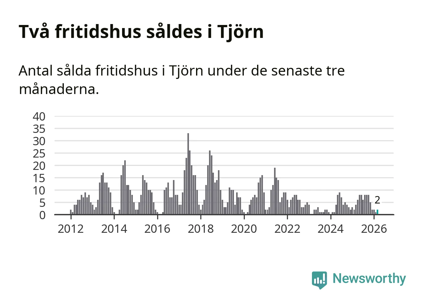 Mellan januari och mars gjordes sammanlagt två affärer med fritidshus i Tjörns kommun. Det kan jämföras med fyra vid motsvarande tid i fjol.