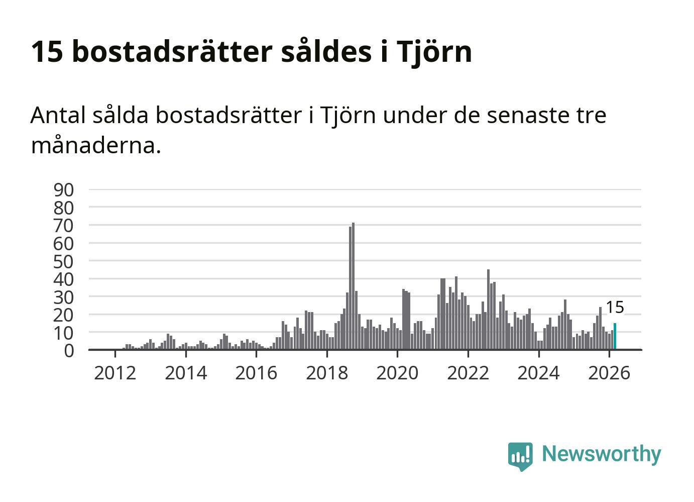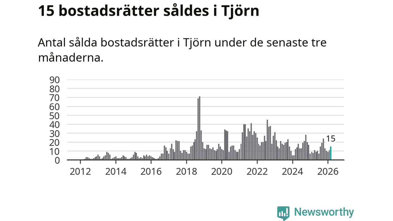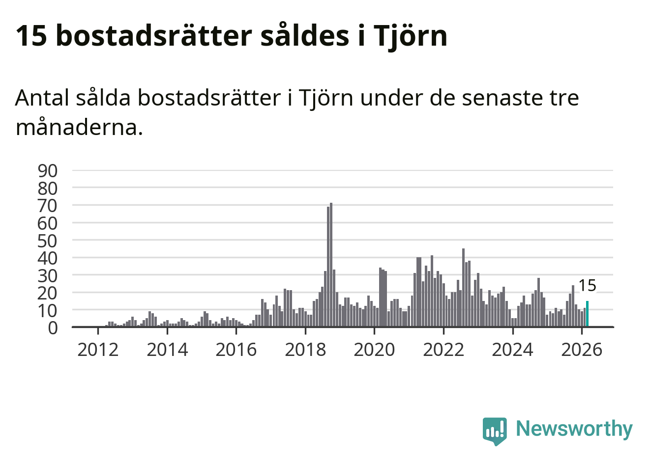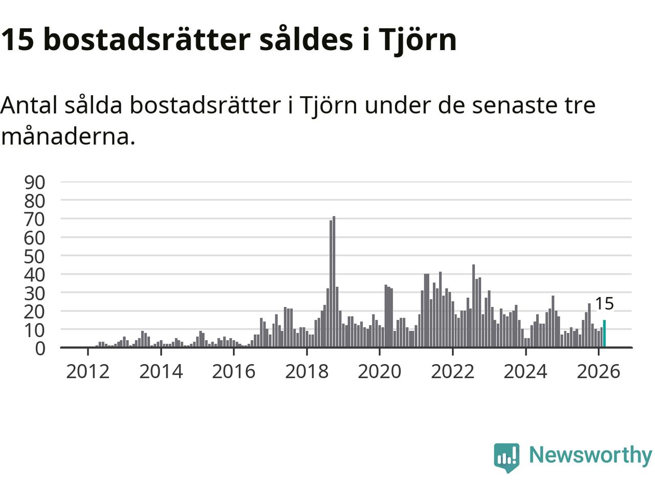 Mellan januari och mars gjordes sammanlagt 15 affärer med bostadsrätter i Tjörns kommun. Det kan jämföras med åtta vid motsvarande tid i fjol.