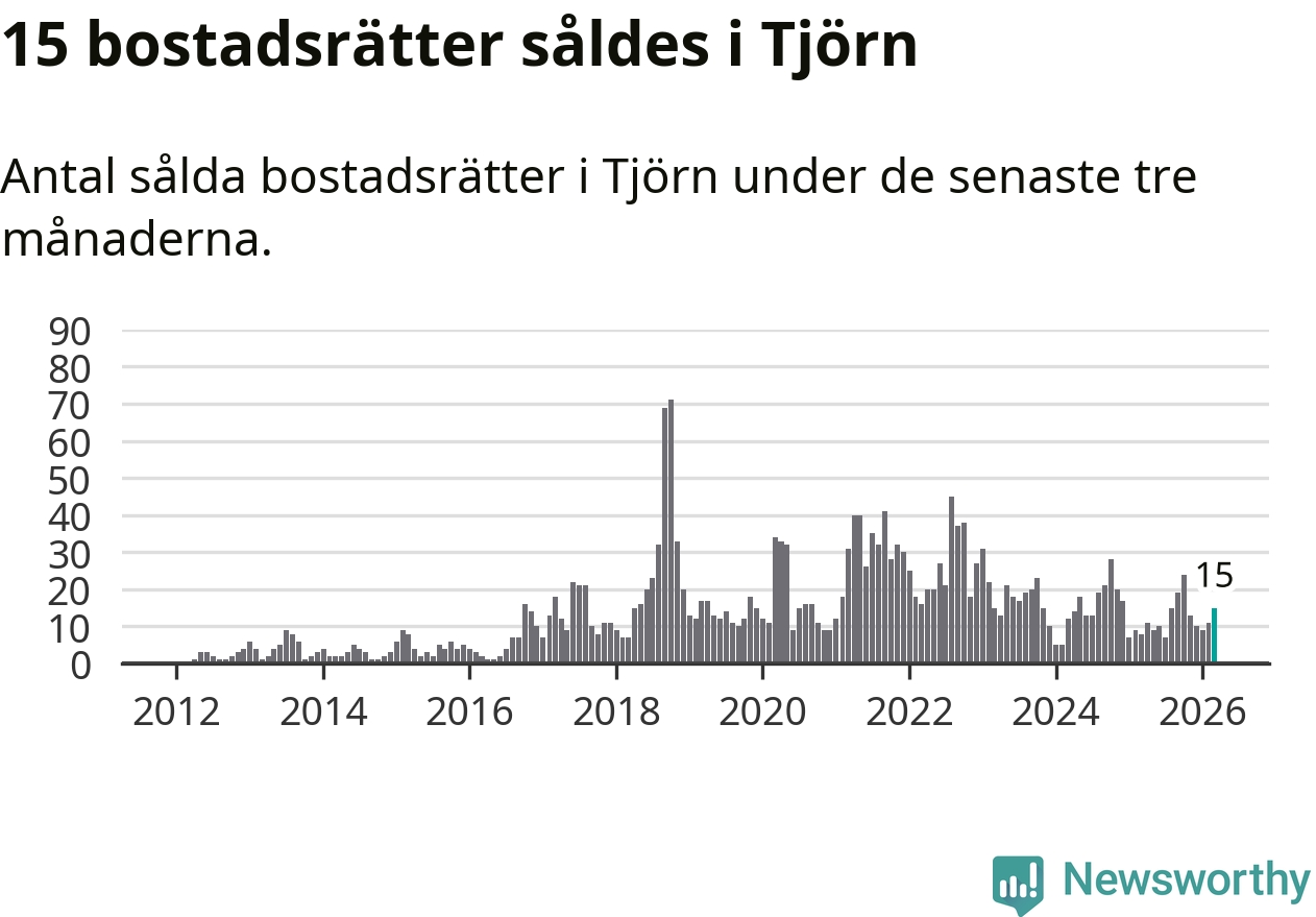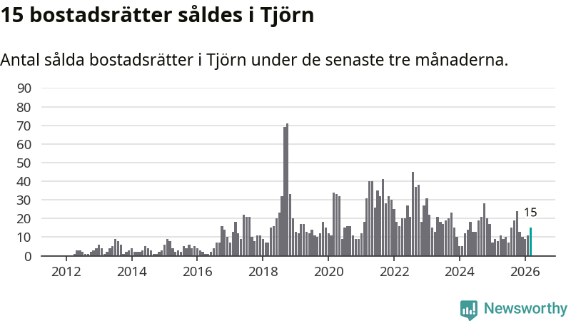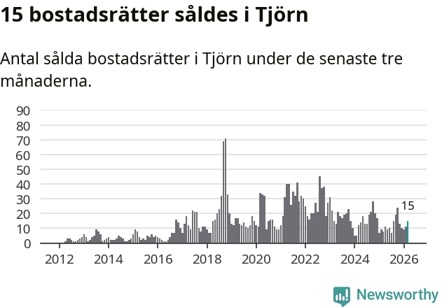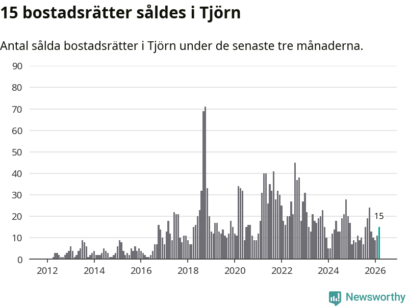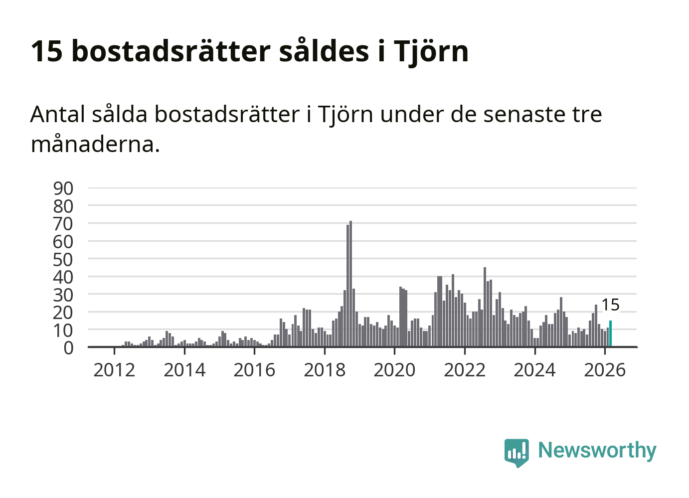 Mellan januari och mars gjordes sammanlagt 15 affärer med bostadsrätter i Tjörns kommun. Det kan jämföras med åtta vid motsvarande tid i fjol.