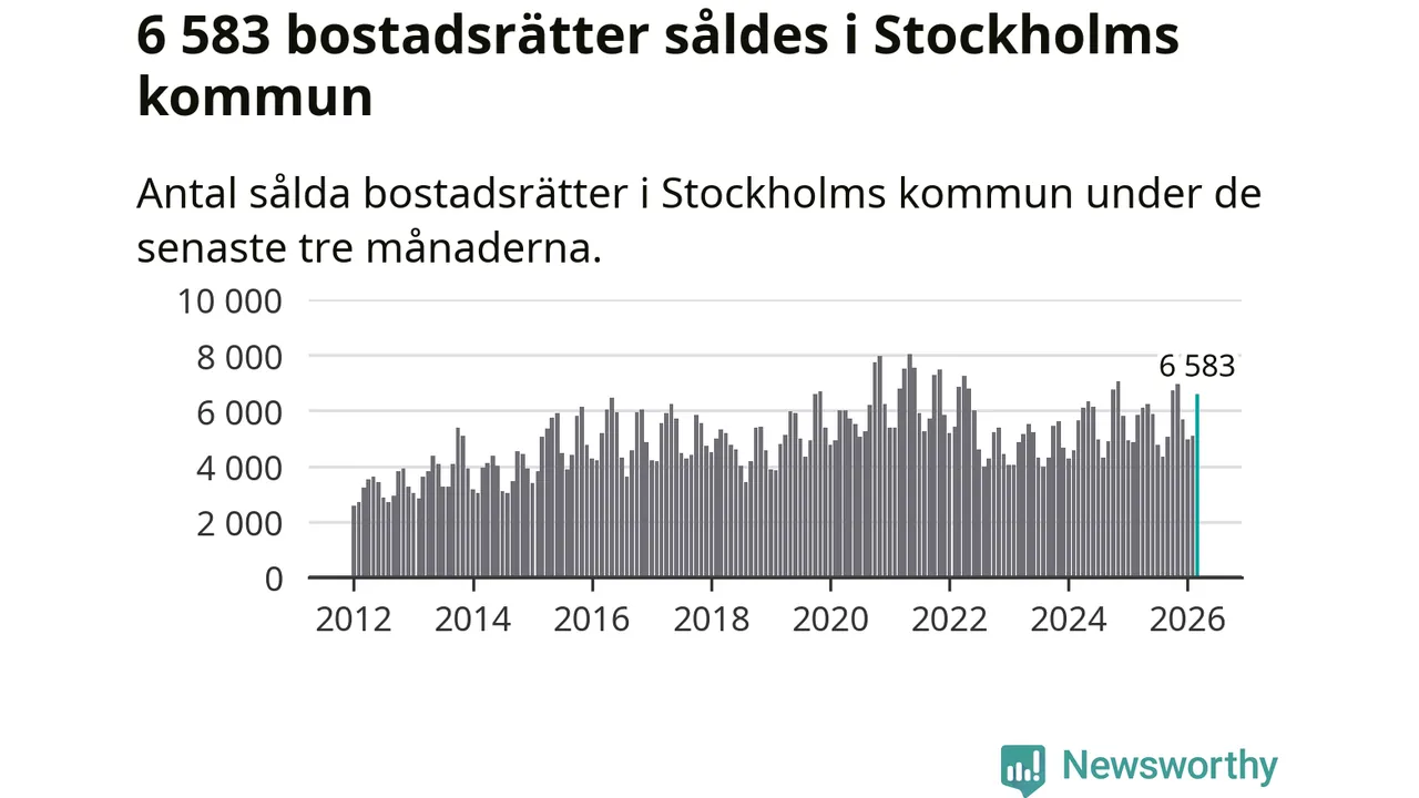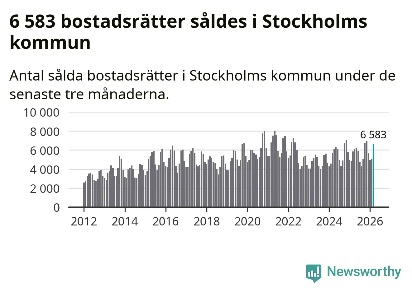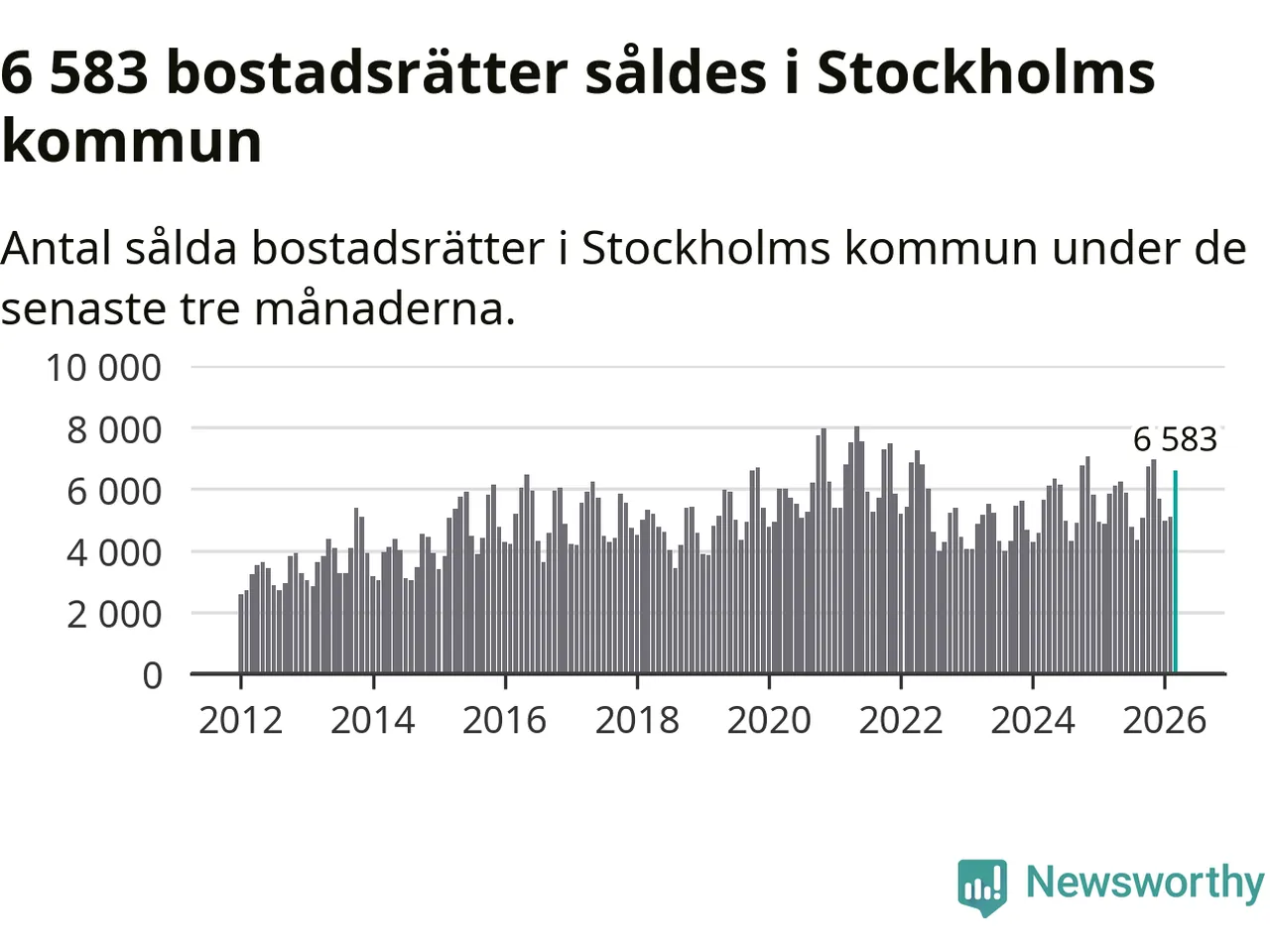 | Stockholm | +4 % ▲ | 6 583 | 5,4 miljoner |