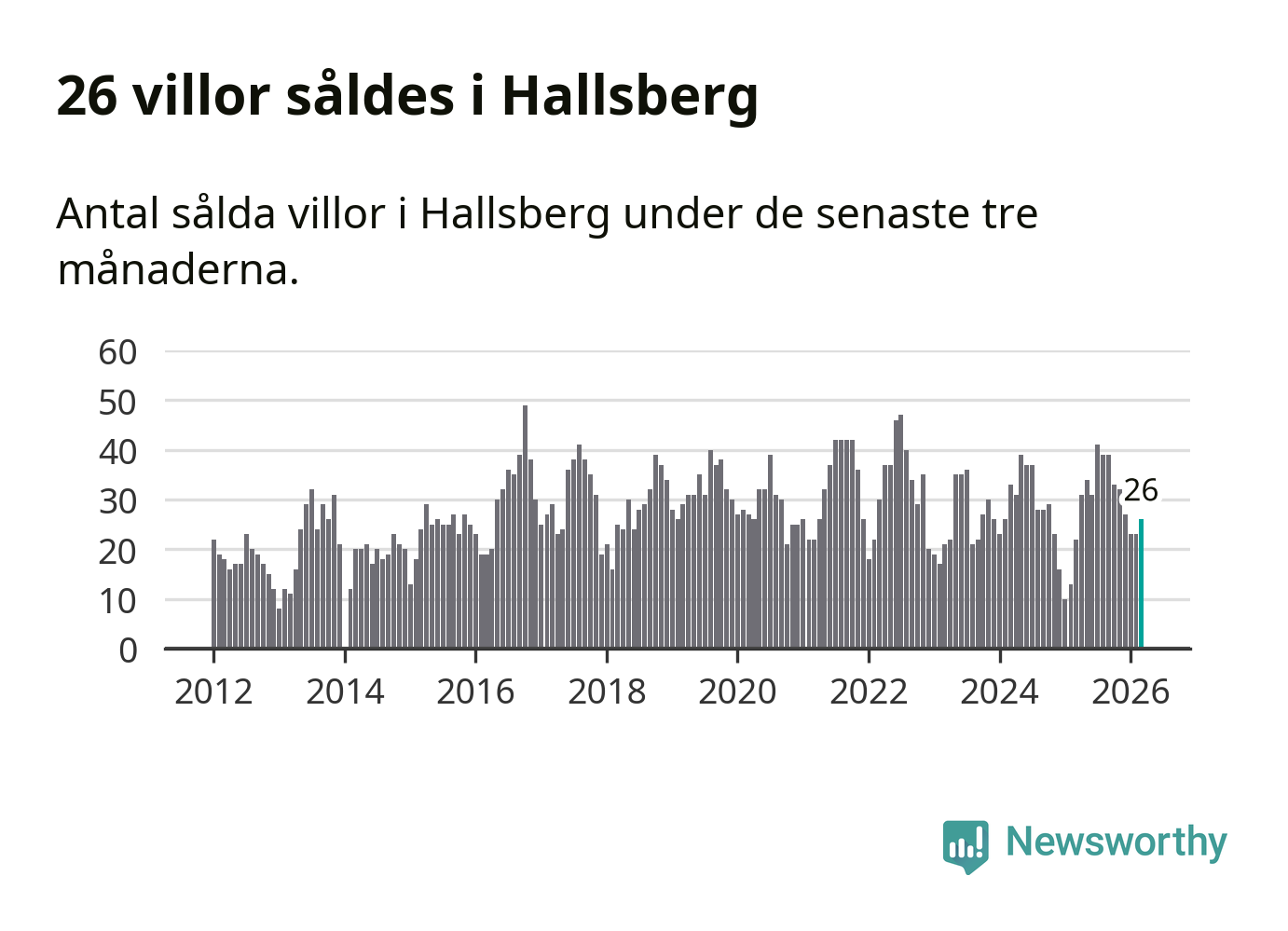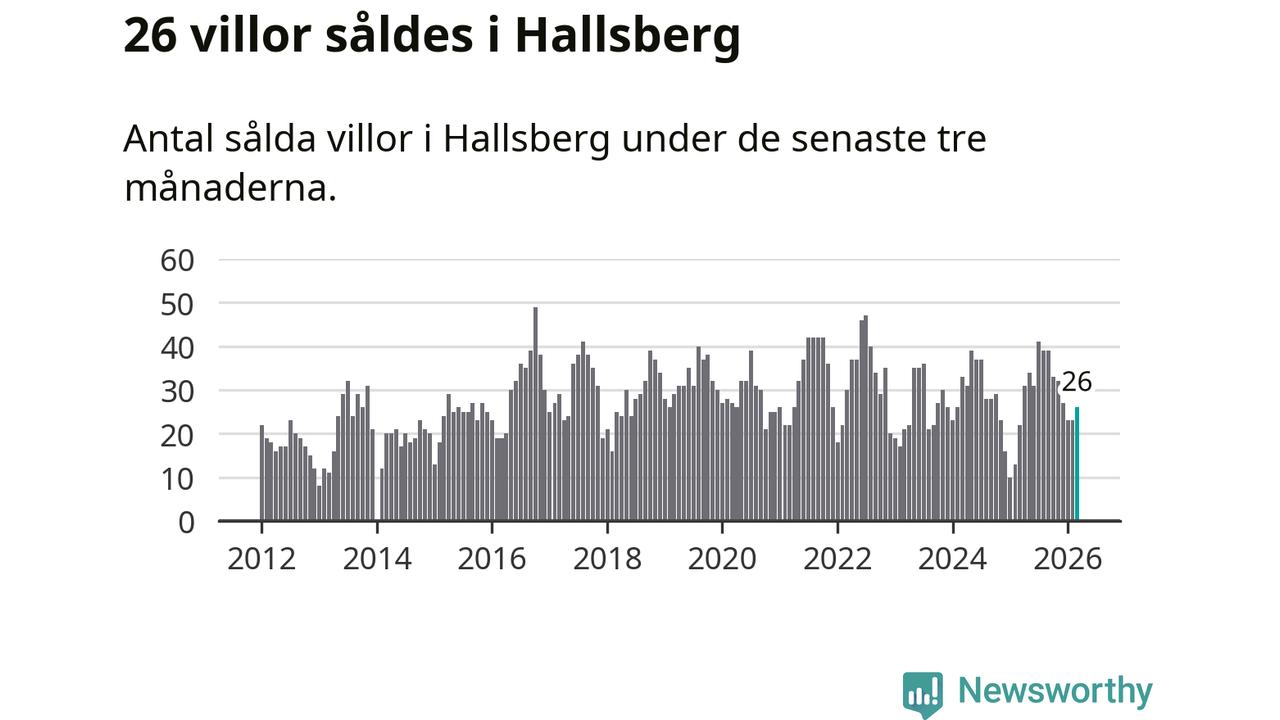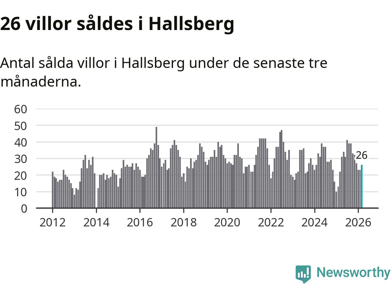Mellan januari och mars gjordes sammanlagt 26 affärer med villor i Hallsbergs kommun. Det kan jämföras med 22 vid motsvarande tid i fjol.