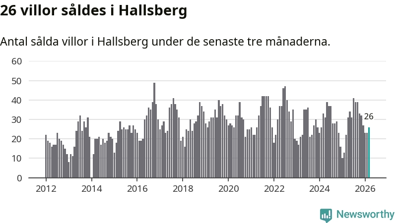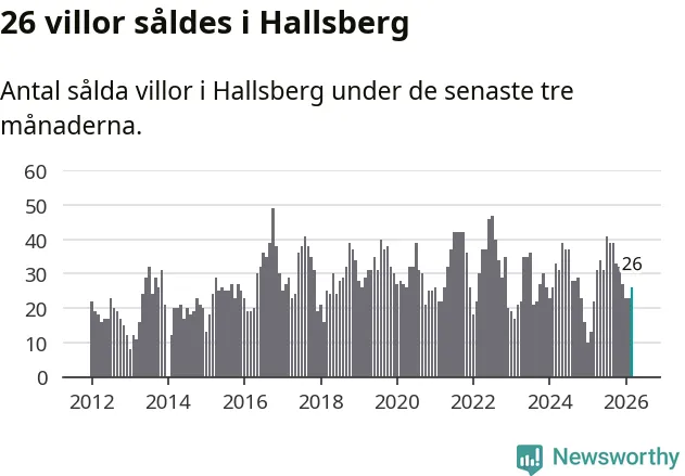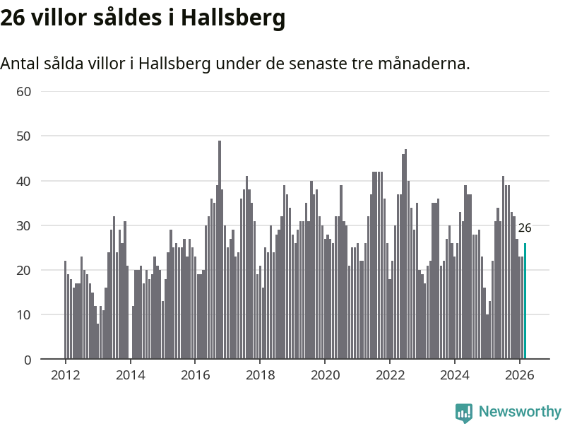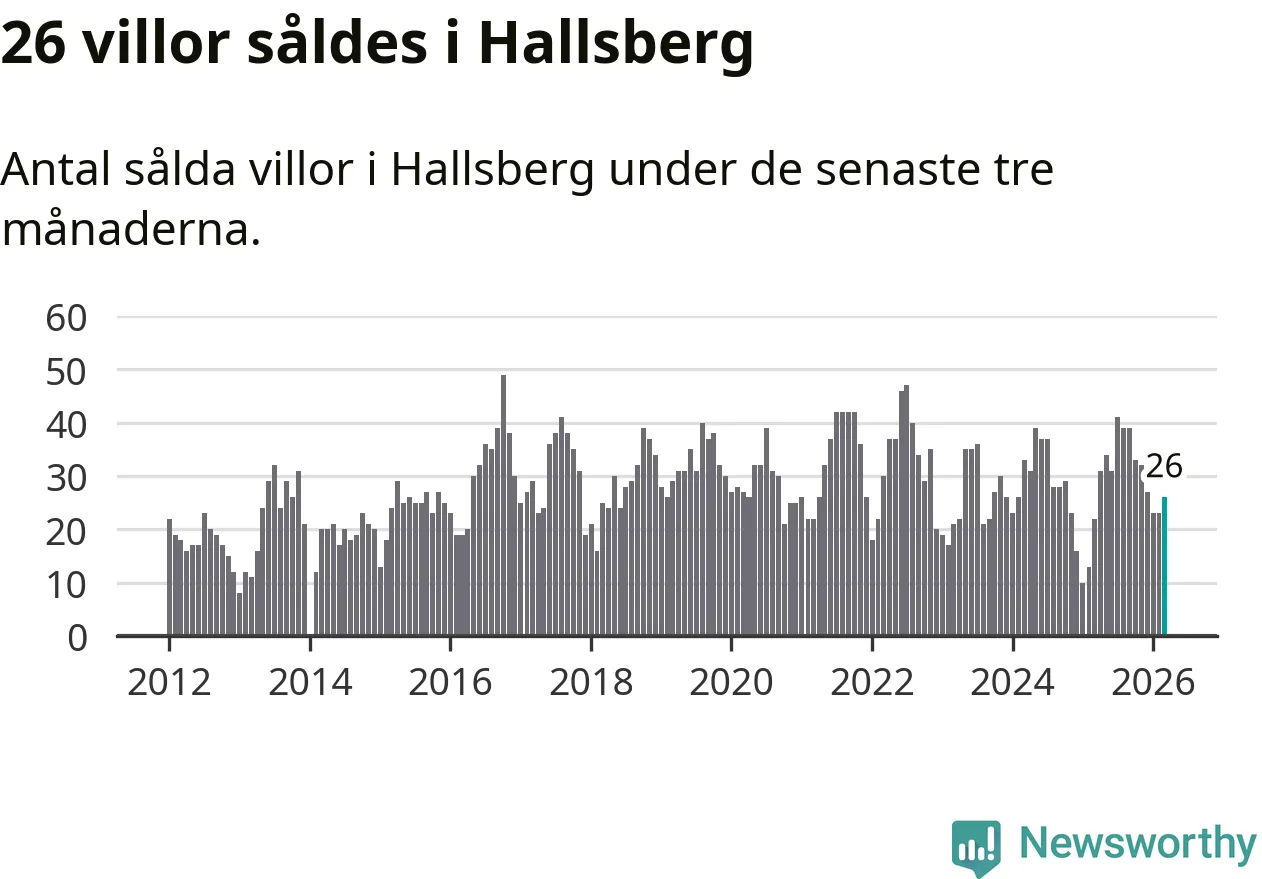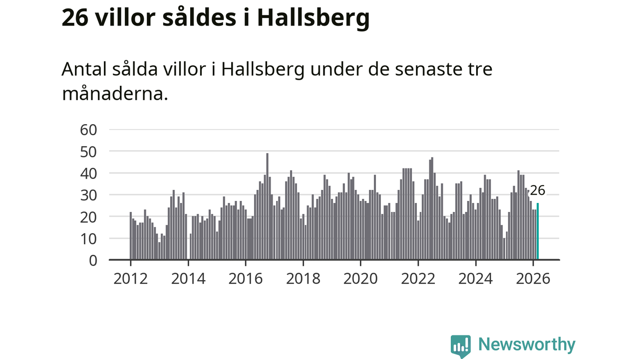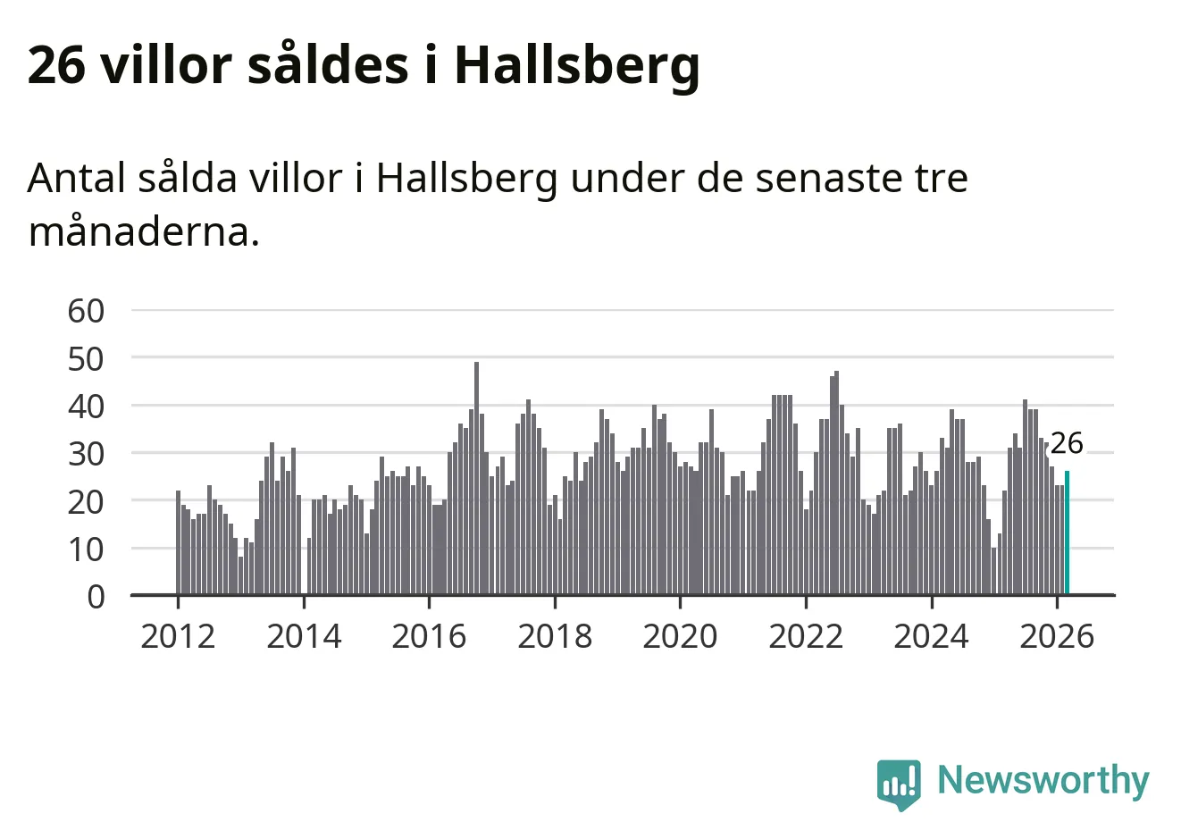 Mellan januari och mars gjordes sammanlagt 26 affärer med villor i Hallsbergs kommun. Det kan jämföras med 22 vid motsvarande tid i fjol.