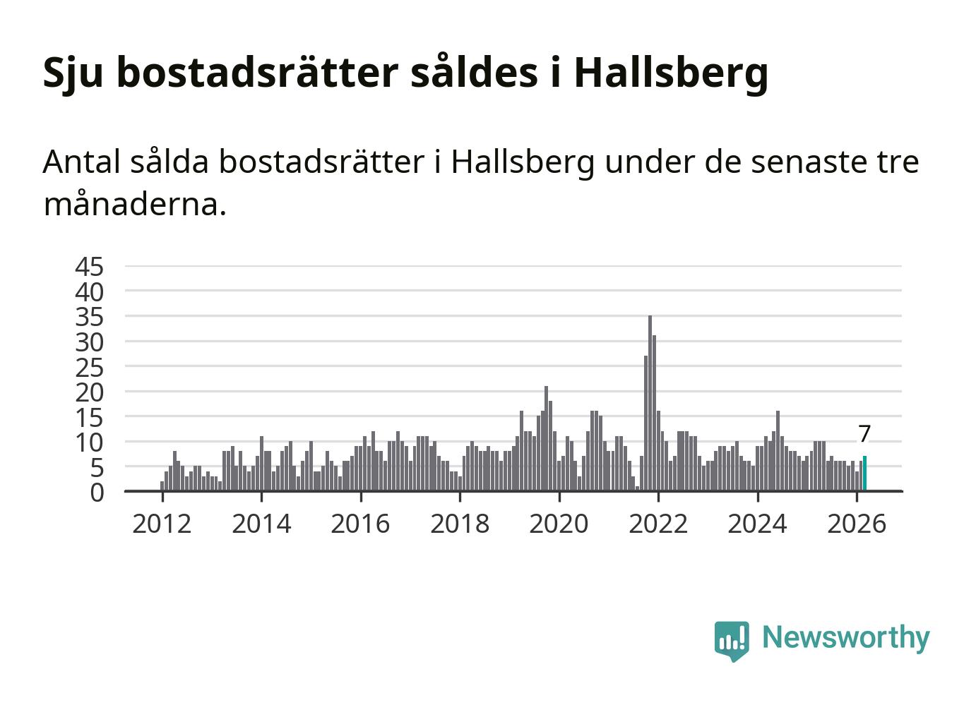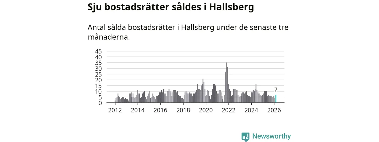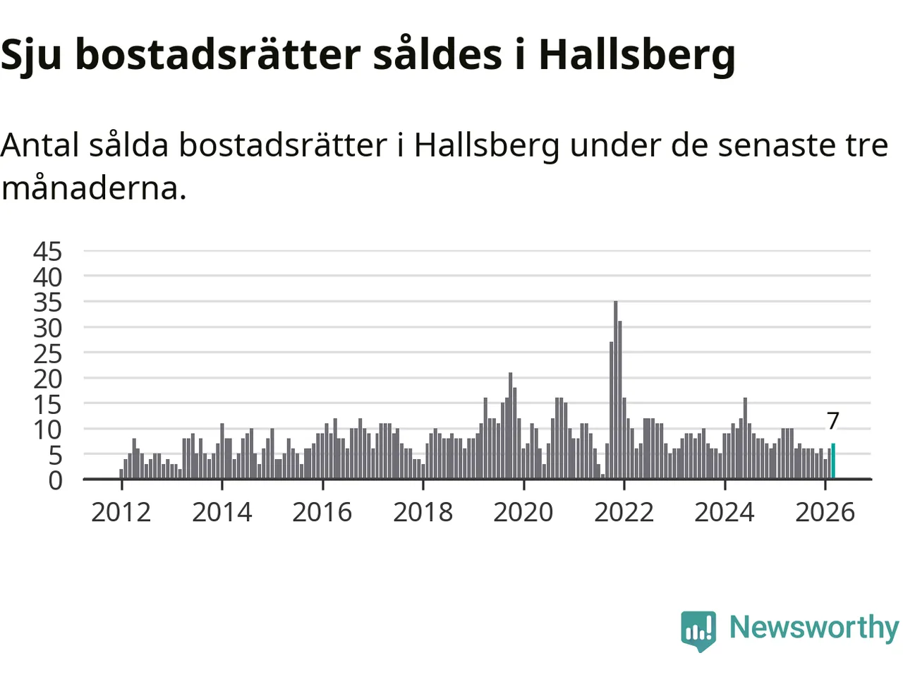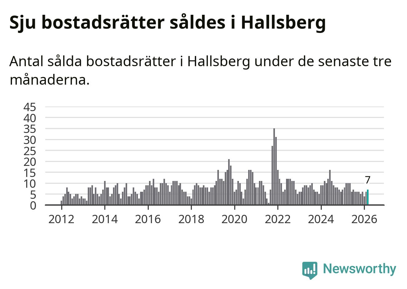 Mellan januari och mars gjordes sammanlagt sju affärer med bostadsrätter i Hallsbergs kommun. Det kan jämföras med tio vid motsvarande tid i fjol.
