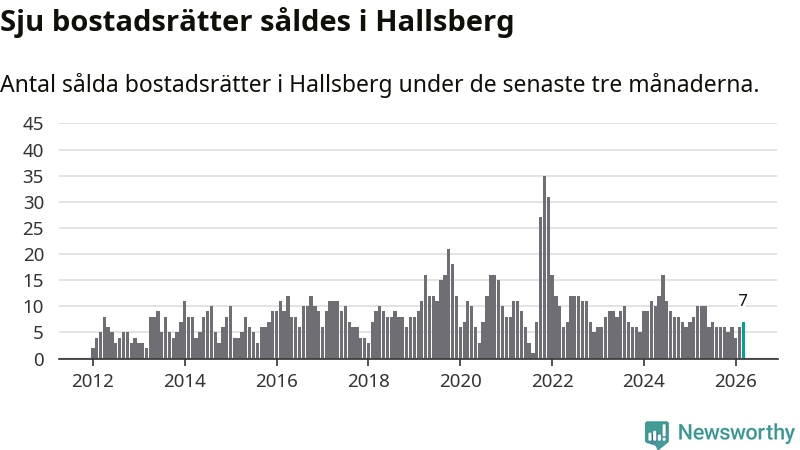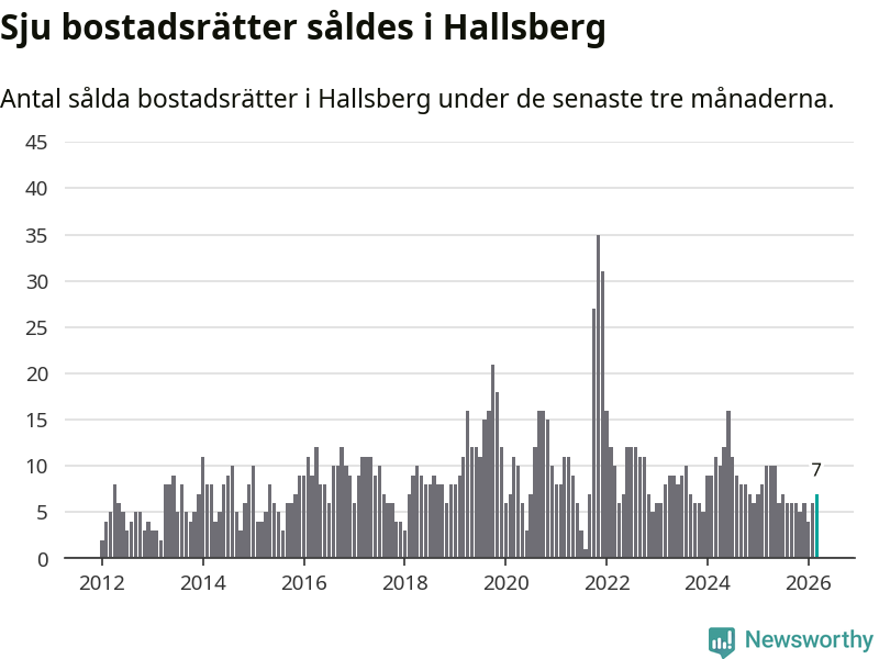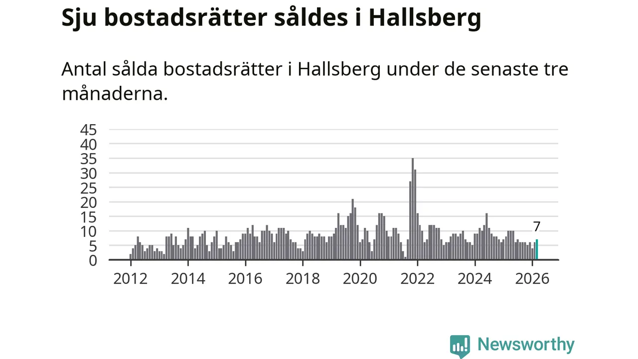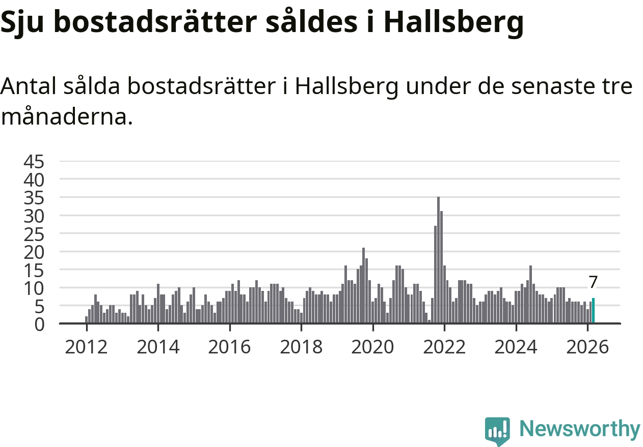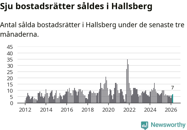 Mellan januari och mars gjordes sammanlagt sju affärer med bostadsrätter i Hallsbergs kommun. Det kan jämföras med tio vid motsvarande tid i fjol.
