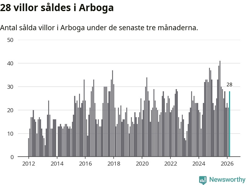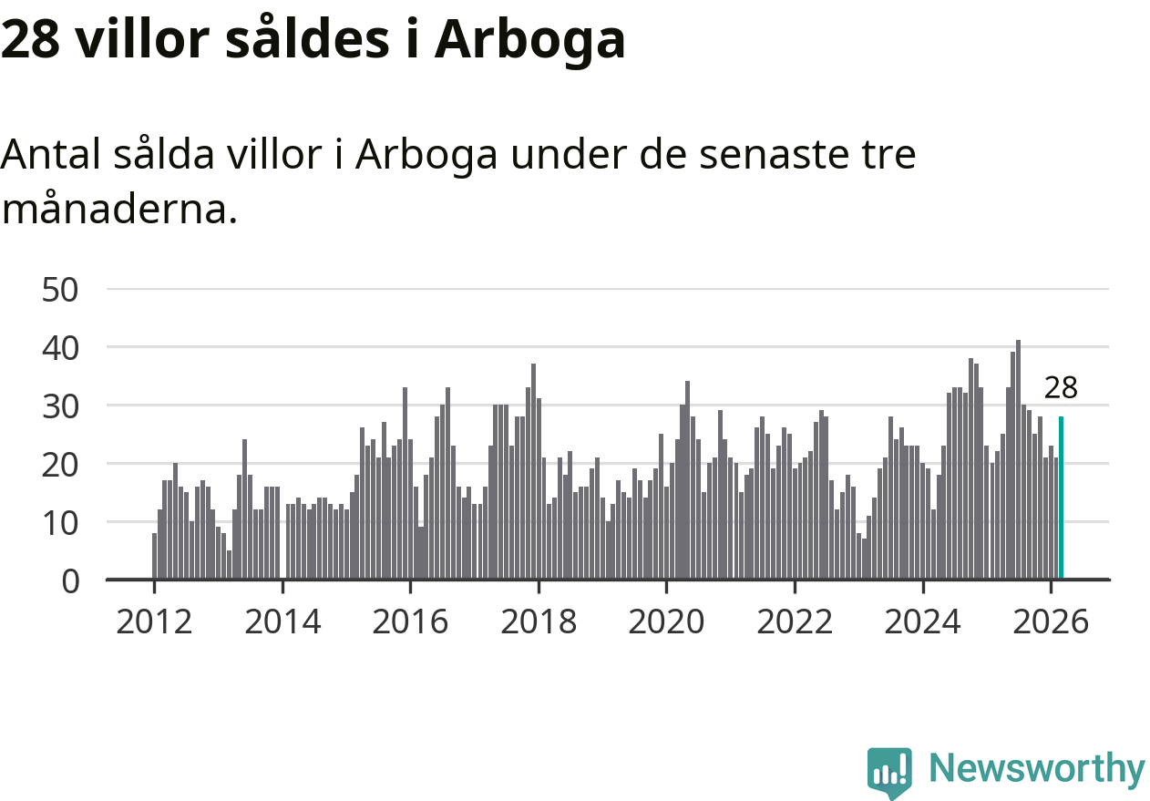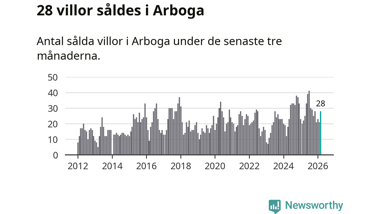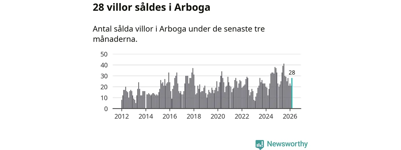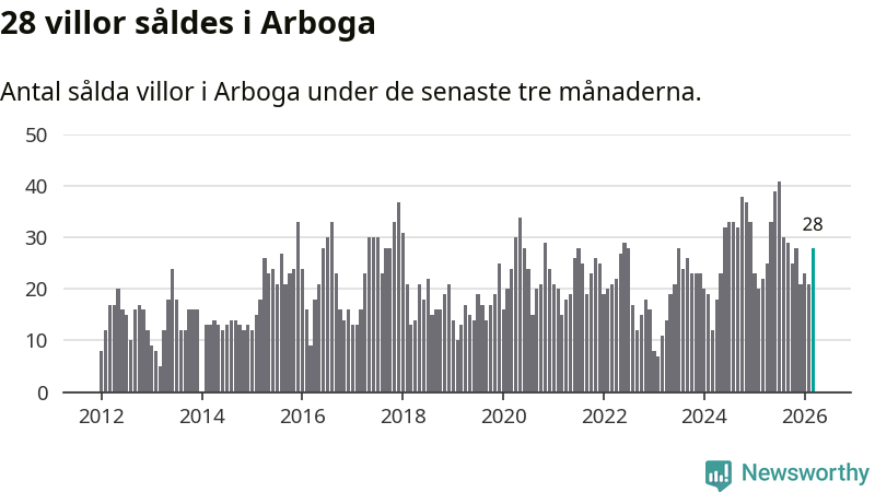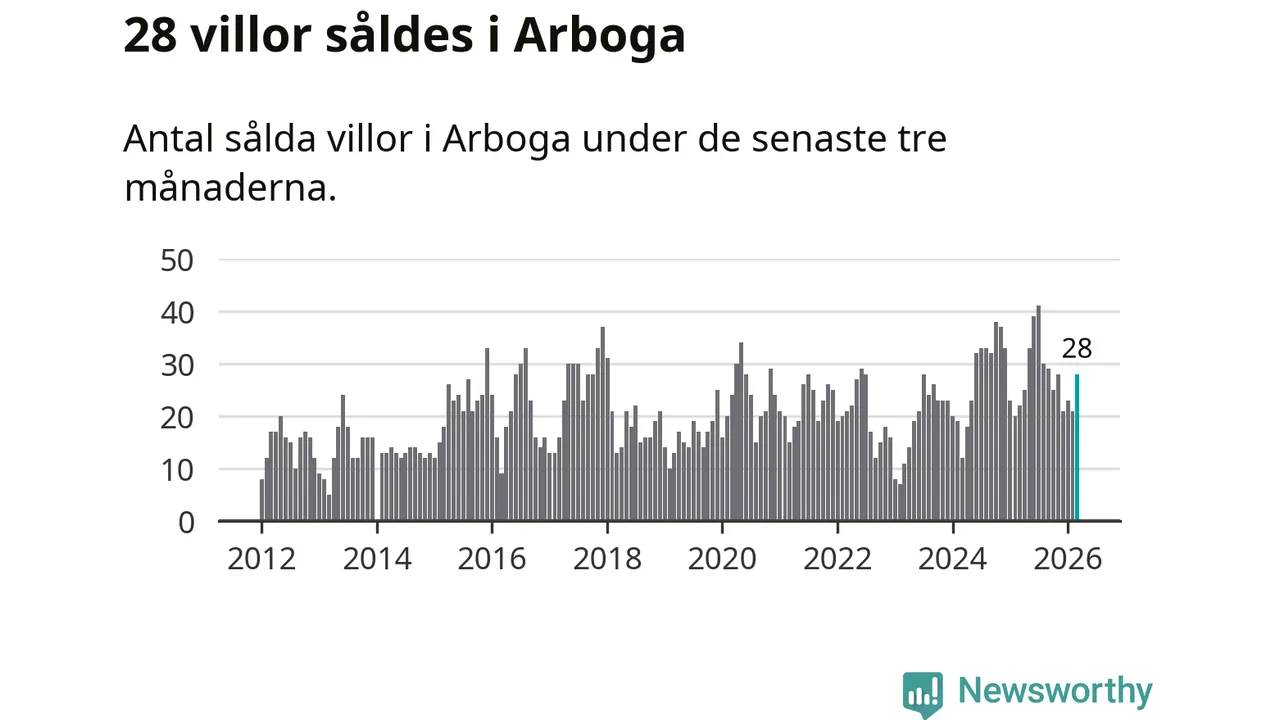 Mellan januari och mars gjordes sammanlagt 28 affärer med villor i Arboga kommun. Det kan jämföras med 22 vid motsvarande tid i fjol.