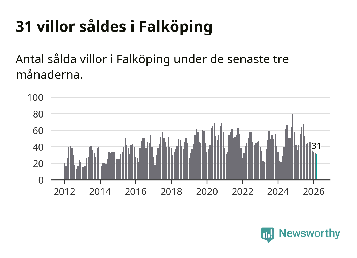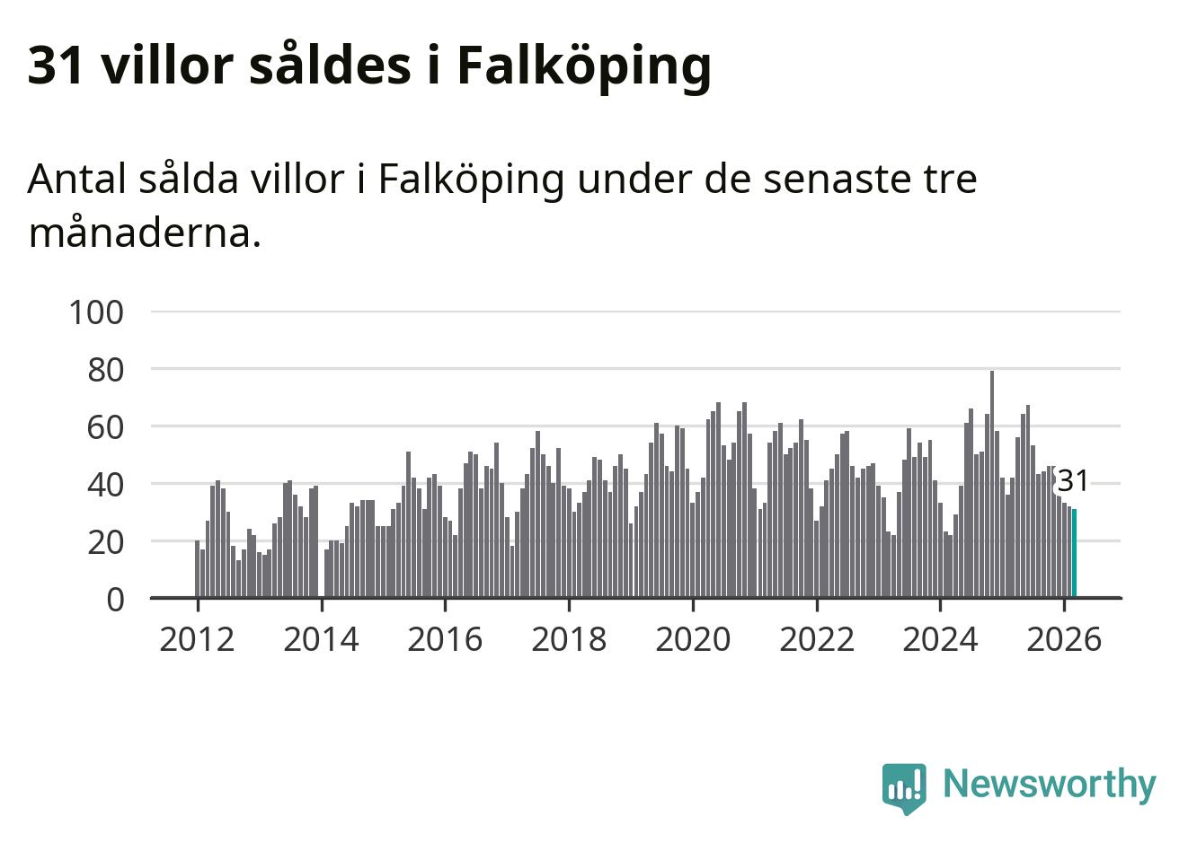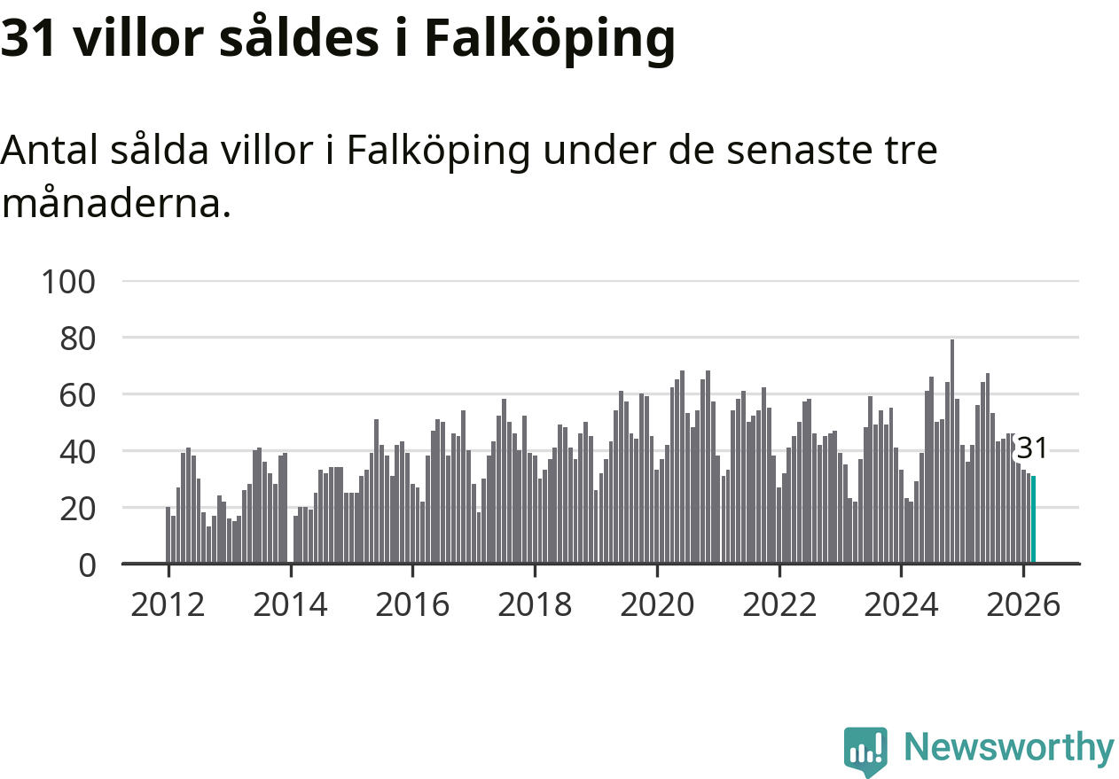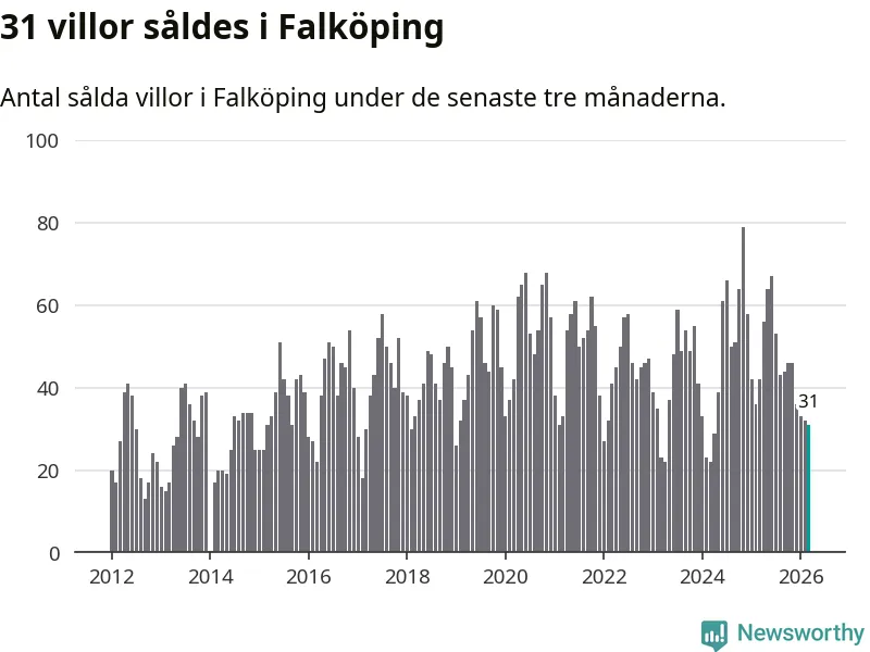 Graf: Antal sålda villor i Falköpings kommun