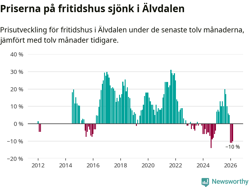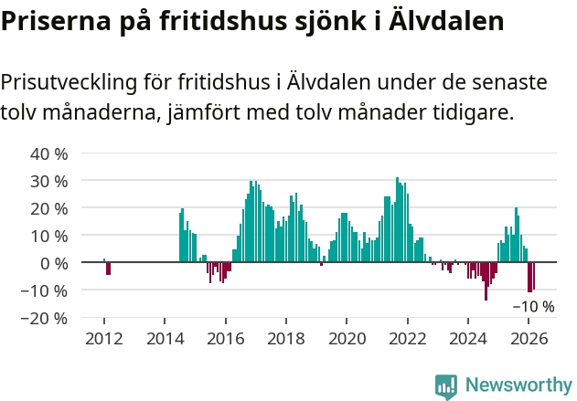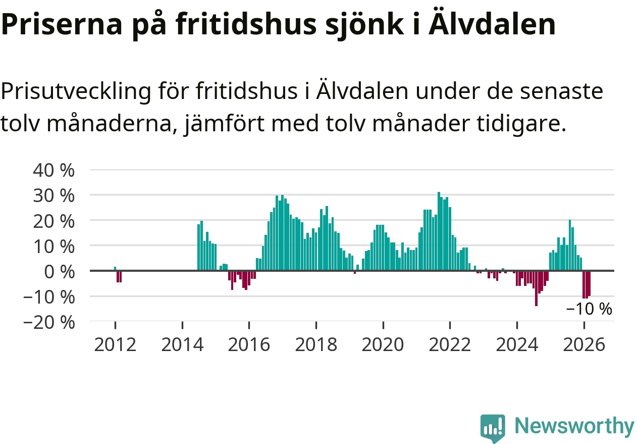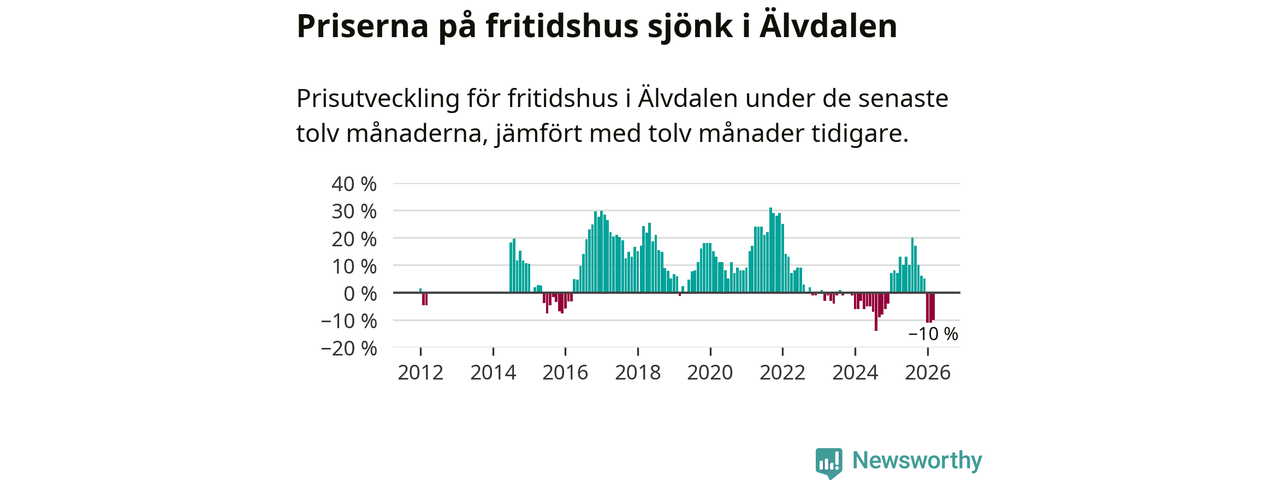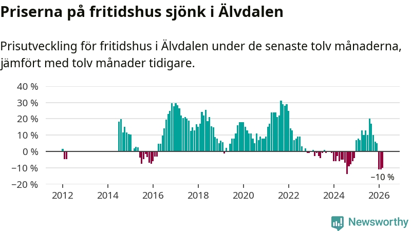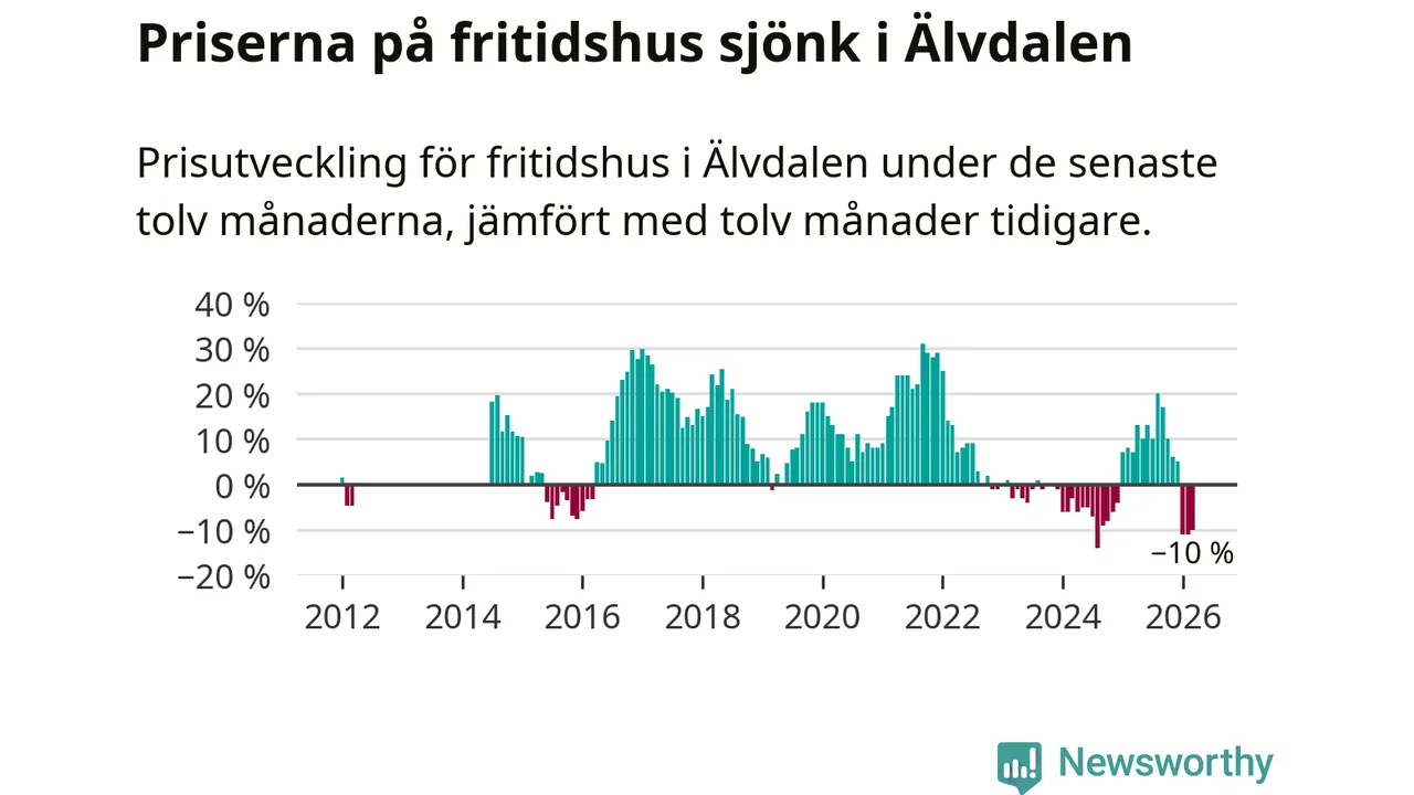 Priserna på fritidshus har gått ner i Älvdalens kommun. Medelpriset på försäljningarna under de senaste tolv månaderna visar på en nedgång med 10 procent.