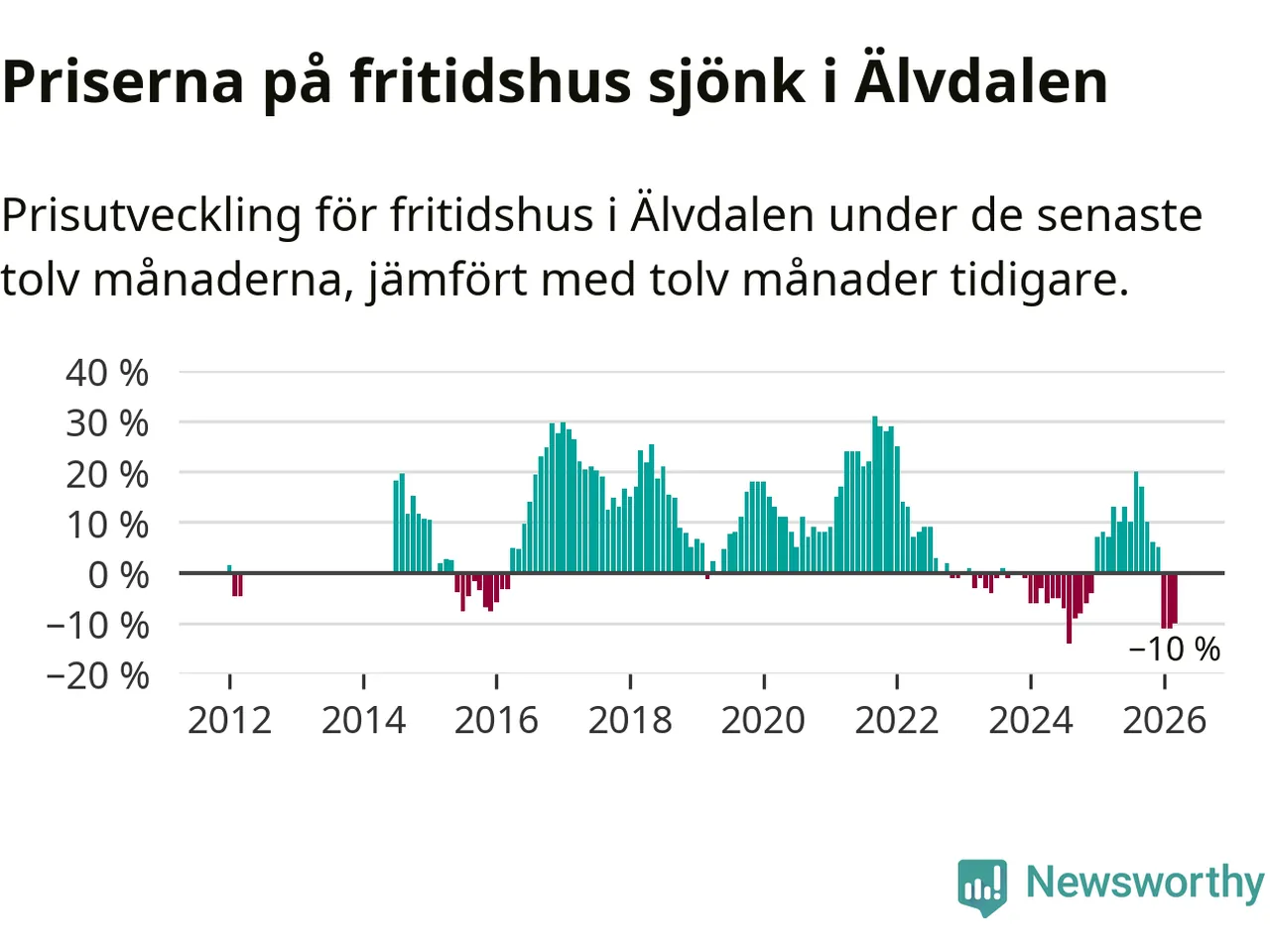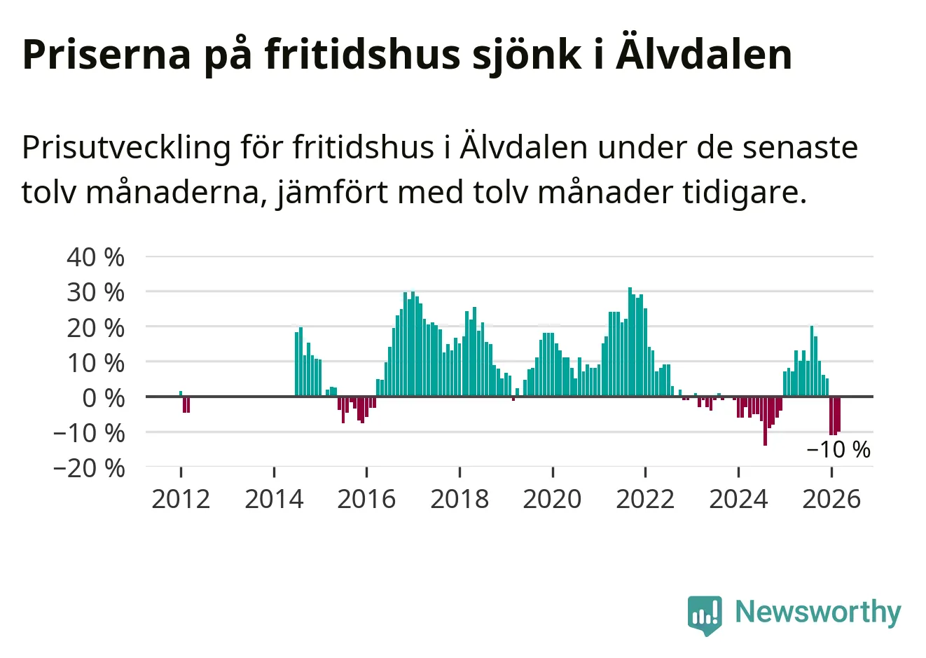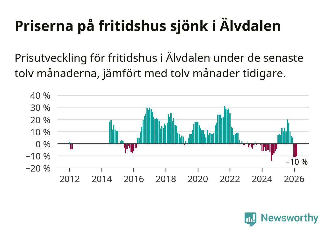 Priserna på fritidshus har gått ner i Älvdalens kommun. Medelpriset på försäljningarna under de senaste tolv månaderna visar på en nedgång med 10 procent.