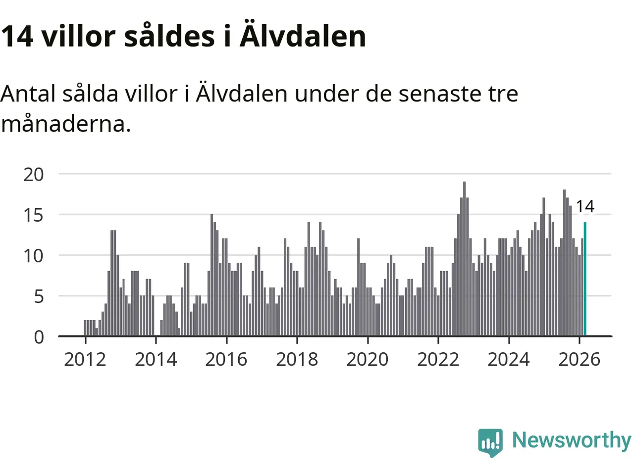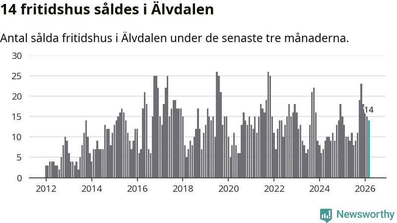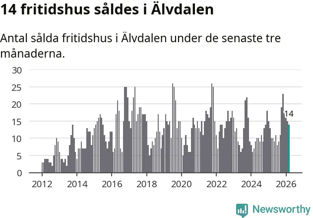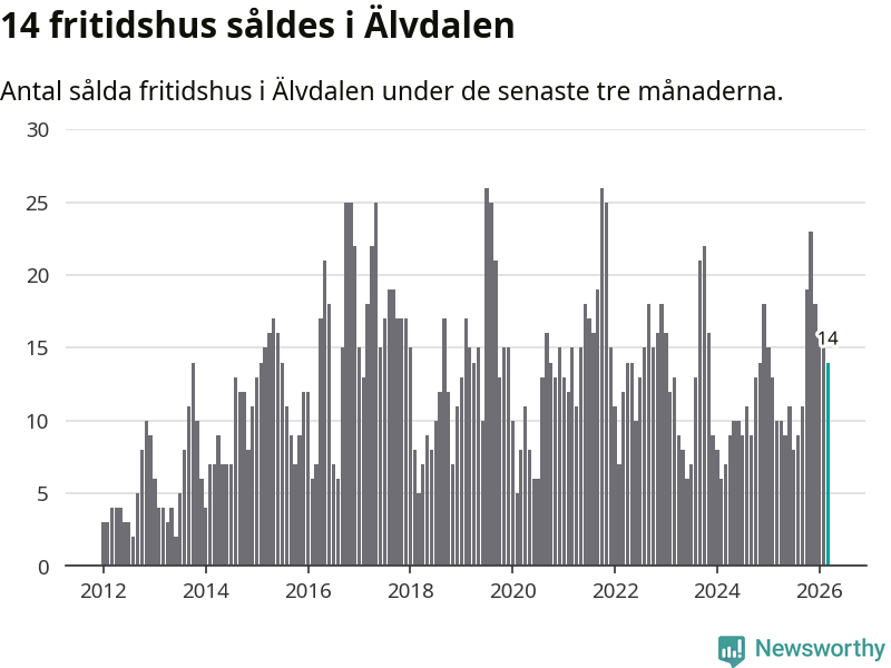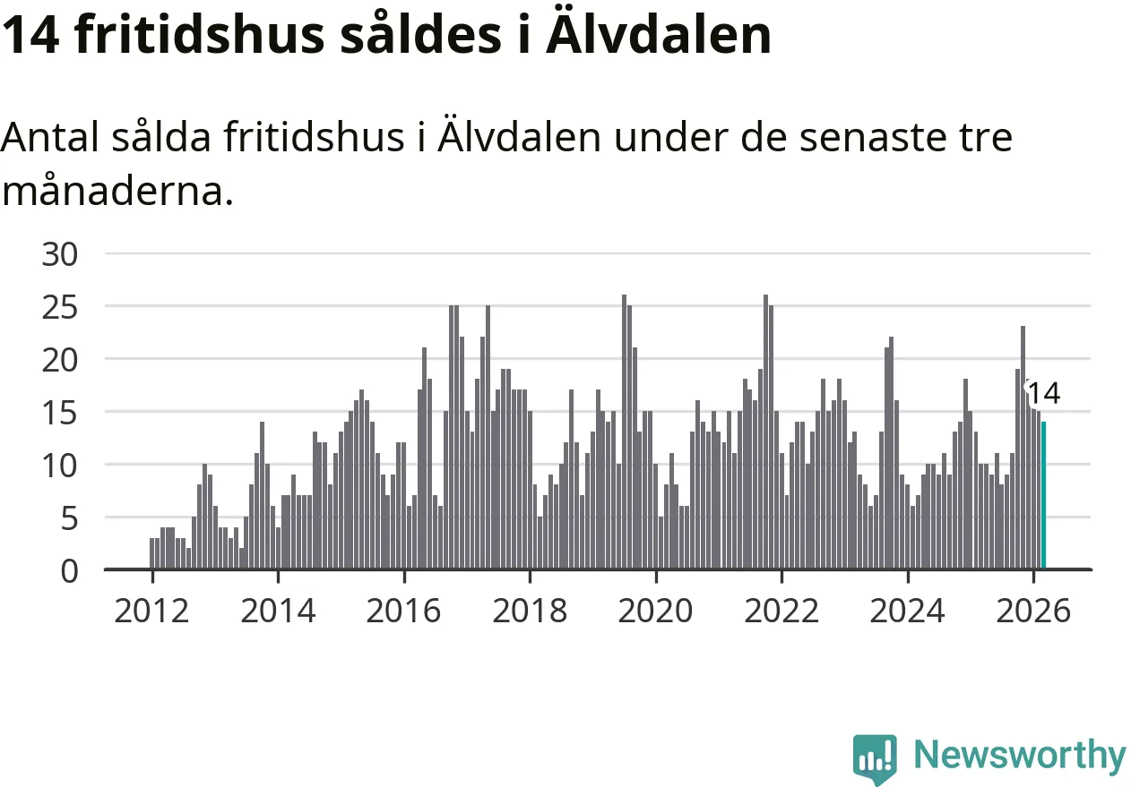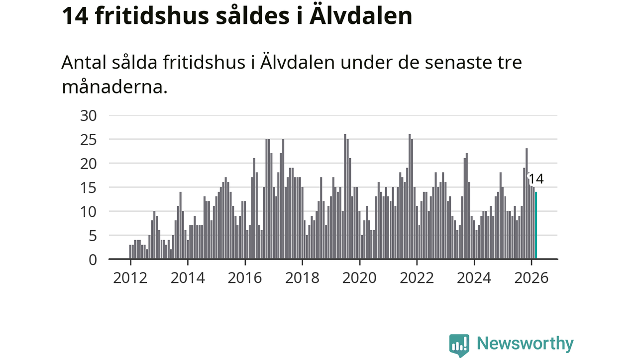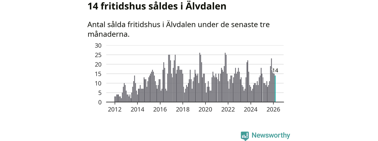 Mellan januari och mars gjordes sammanlagt 14 affärer med villor i Älvdalens kommun. Det kan jämföras med 15 vid motsvarande tid i fjol.