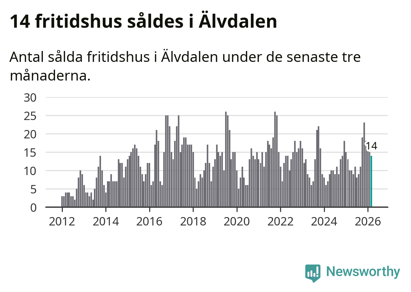Graf: Antal sålda fritidshus i Älvdalens kommun