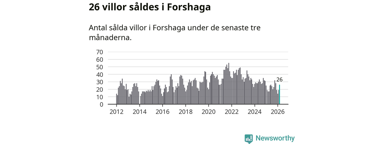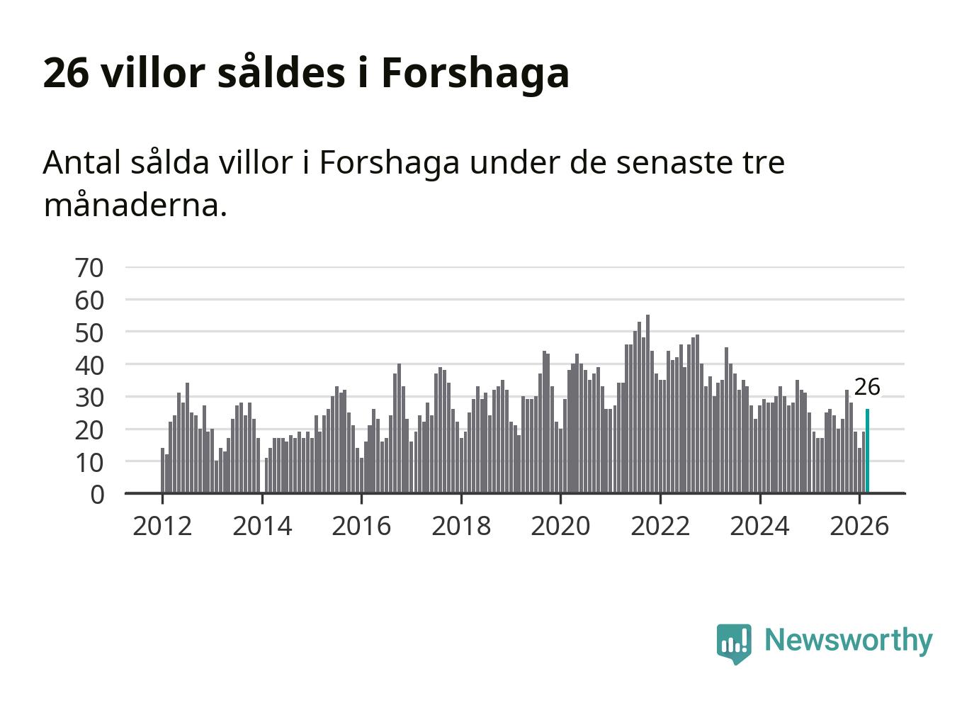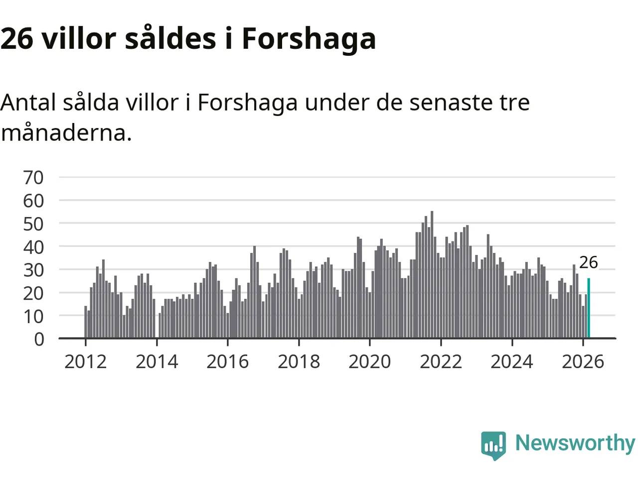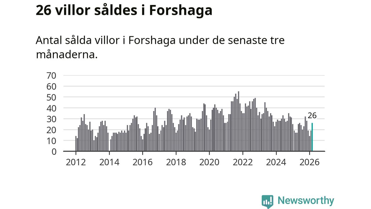 Mellan januari och mars gjordes sammanlagt 26 affärer med villor i Forshaga kommun. Det kan jämföras med 17 vid motsvarande tid i fjol.
