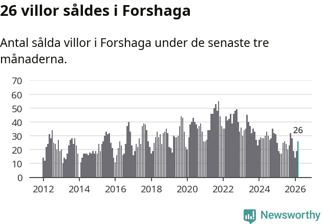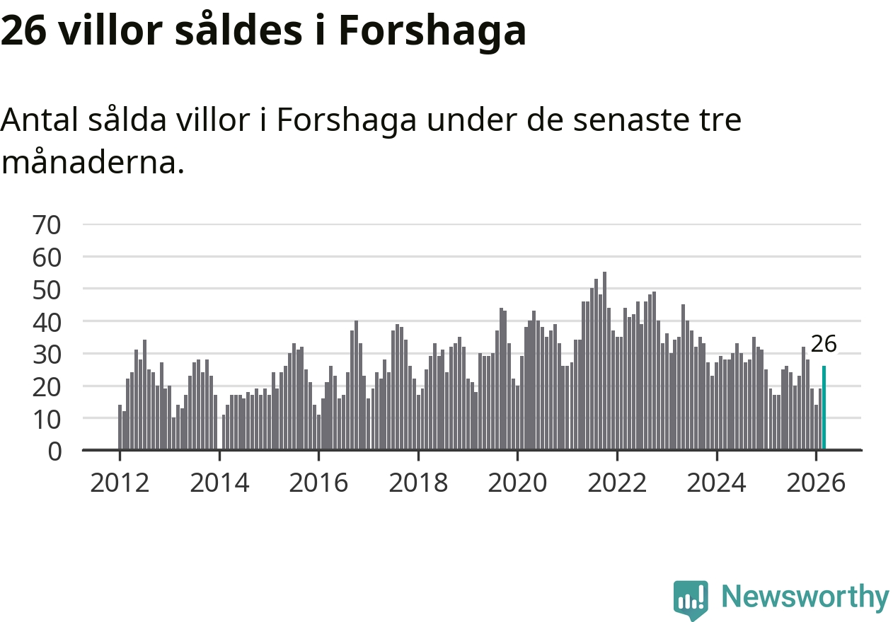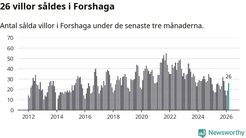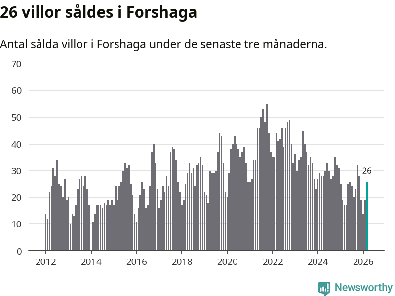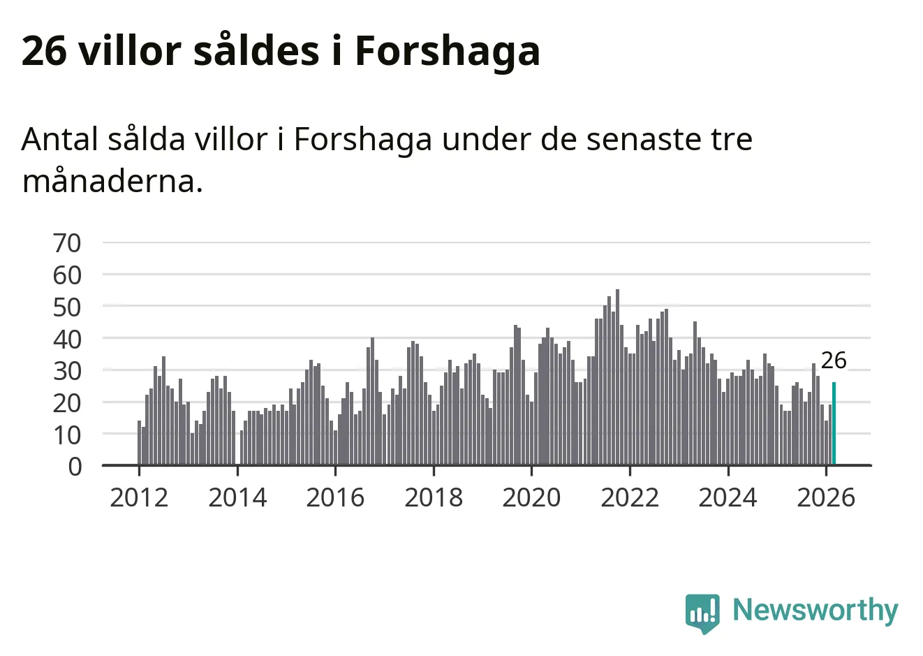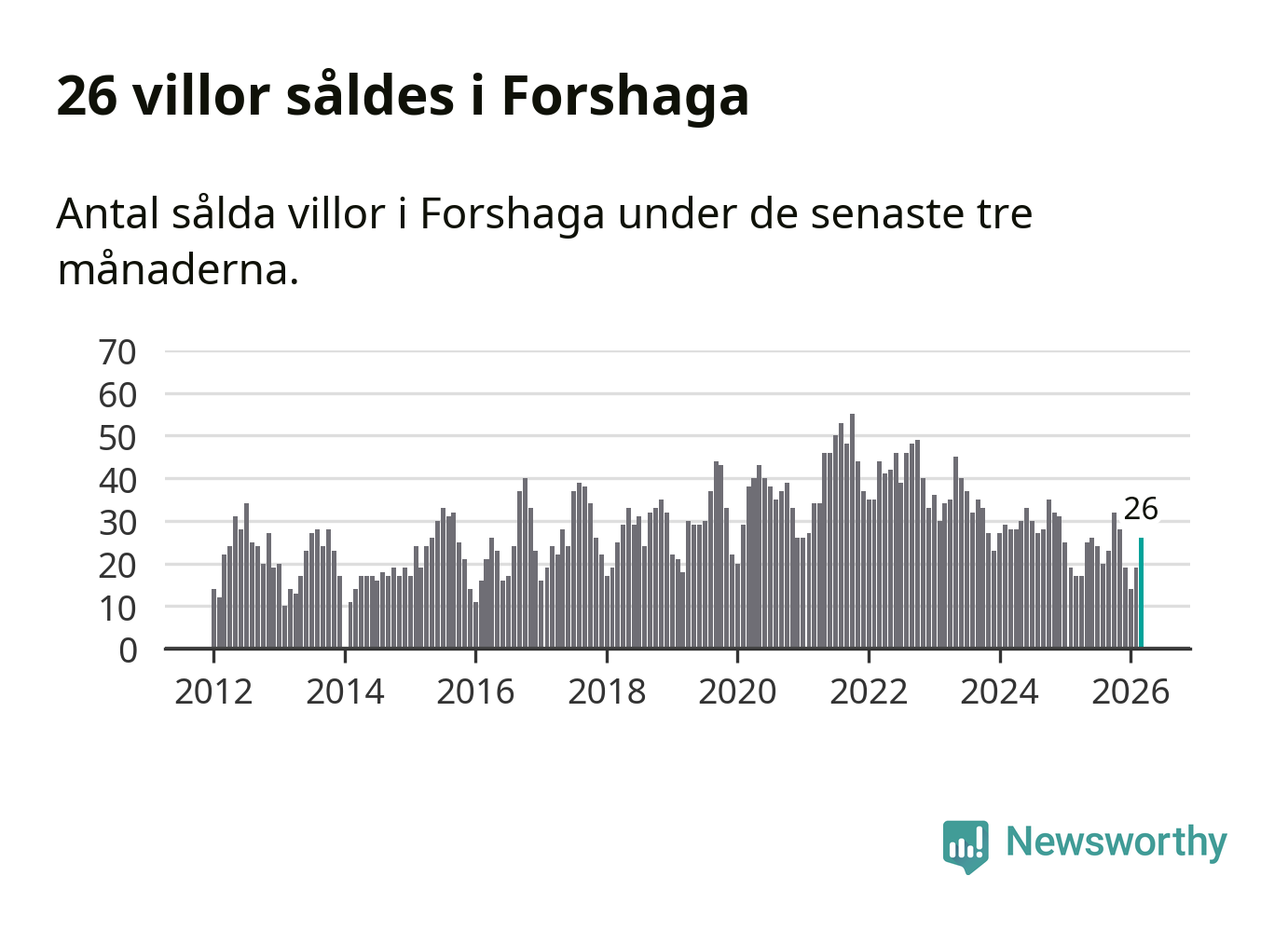 Mellan januari och mars gjordes sammanlagt 26 affärer med villor i Forshaga kommun. Det kan jämföras med 17 vid motsvarande tid i fjol.
