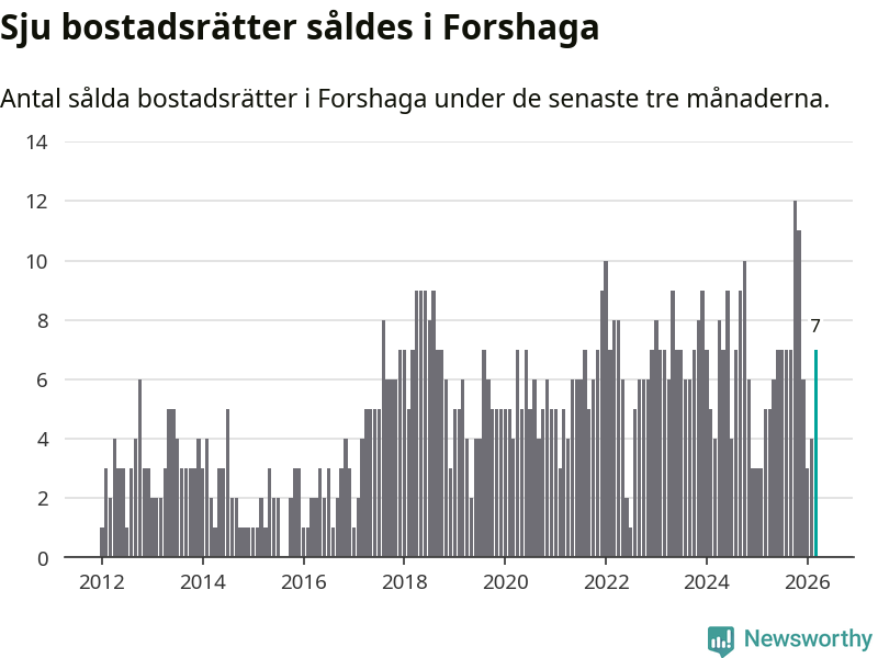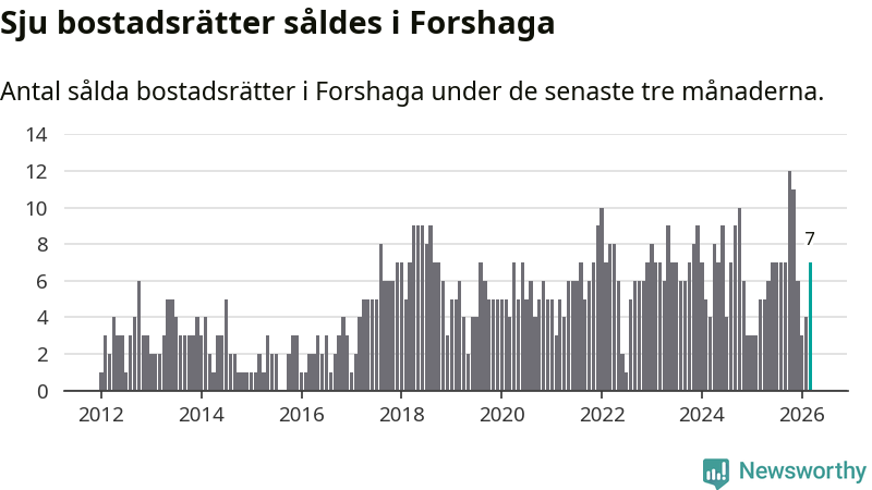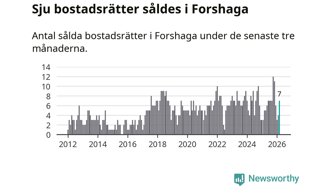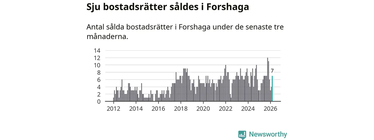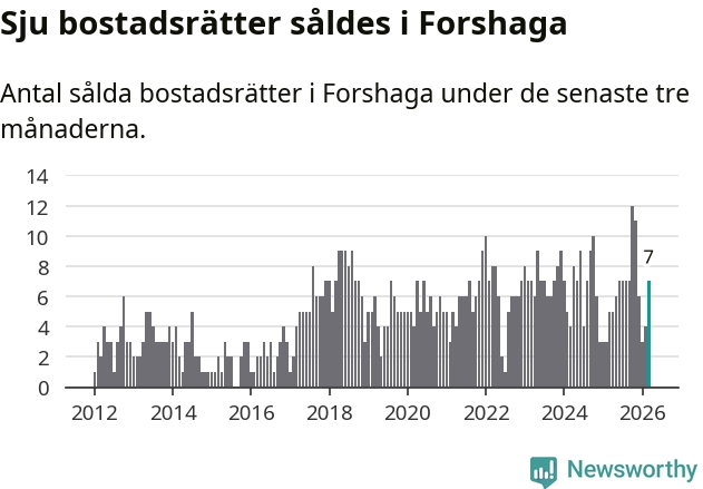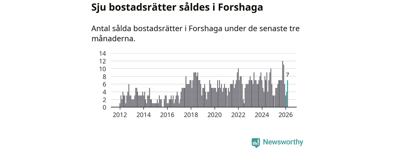 Mellan januari och mars gjordes sammanlagt sju affärer med bostadsrätter i Forshaga kommun. Det kan jämföras med fem vid motsvarande tid i fjol.