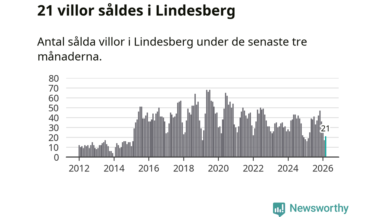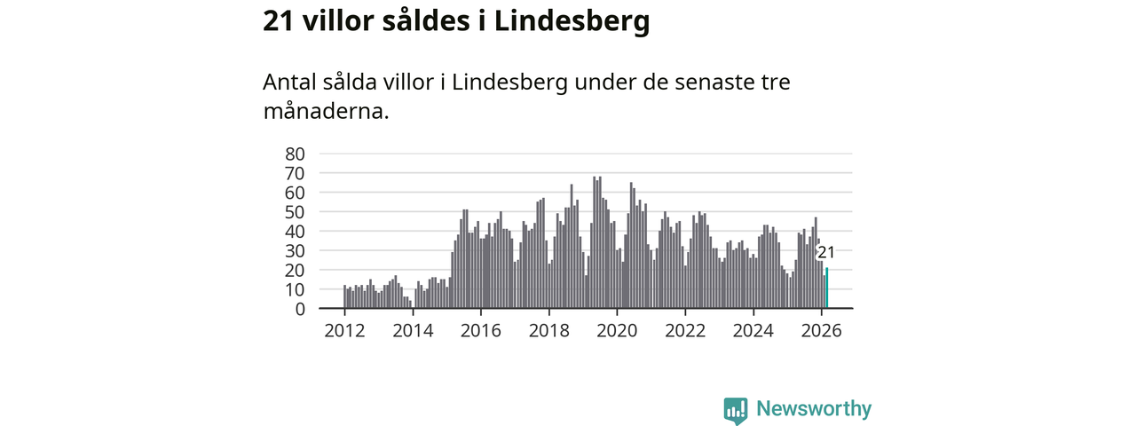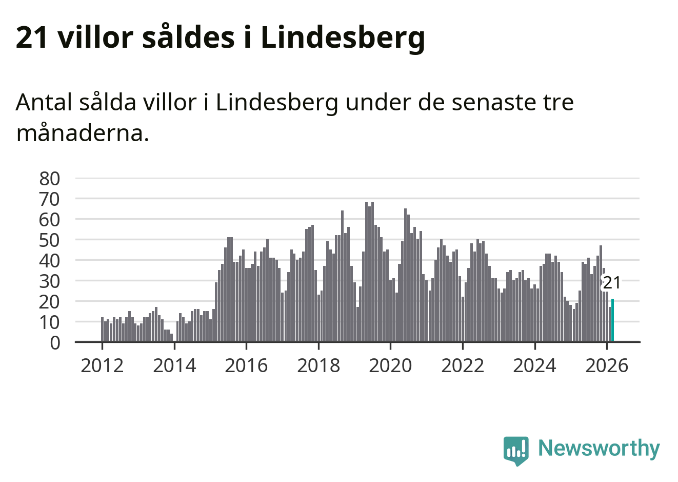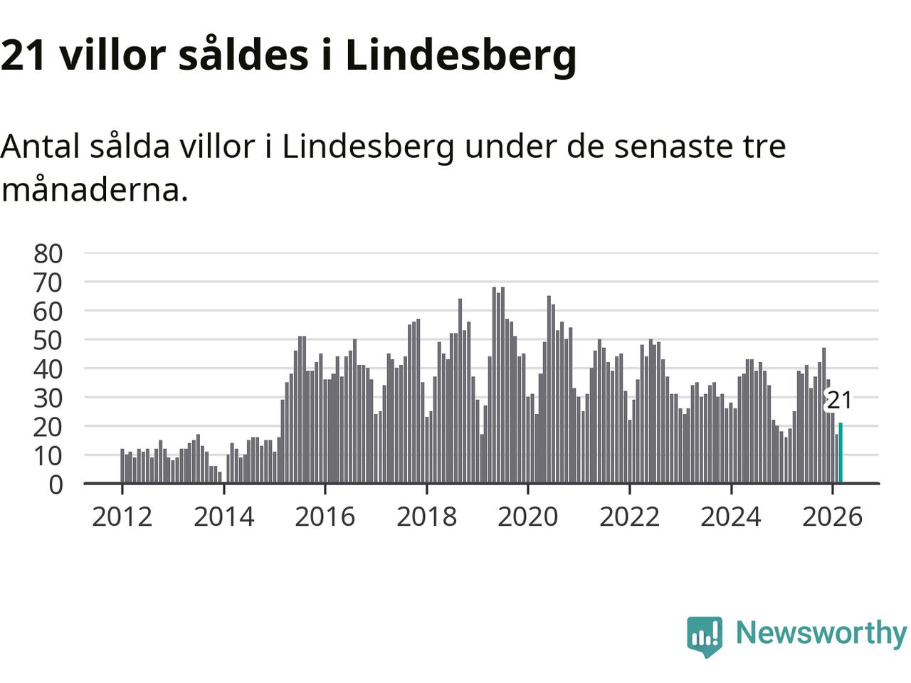 Mellan januari och mars gjordes sammanlagt 21 affärer med villor i Lindesbergs kommun. Det kan jämföras med 19 vid motsvarande tid i fjol.