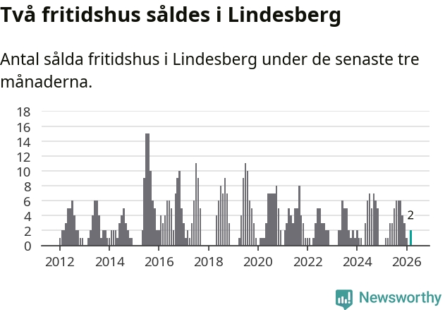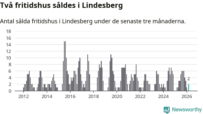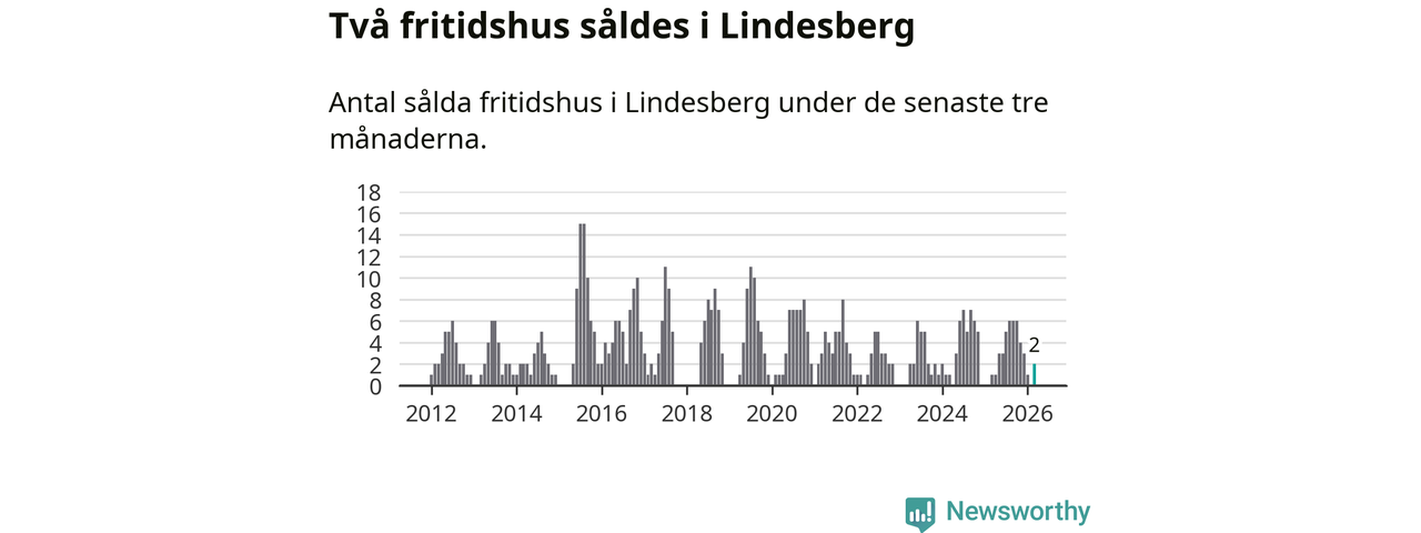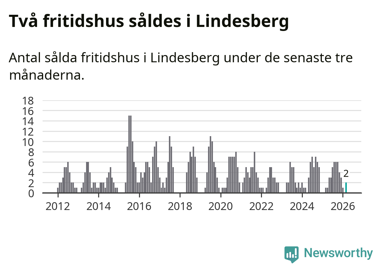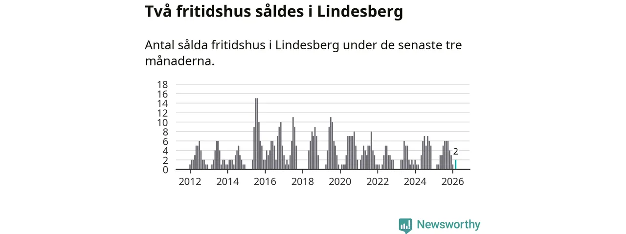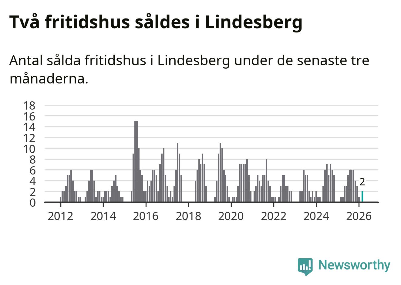 Mellan januari och mars gjordes sammanlagt två affärer med fritidshus i Lindesbergs kommun. Det kan jämföras med ett vid motsvarande tid i fjol.