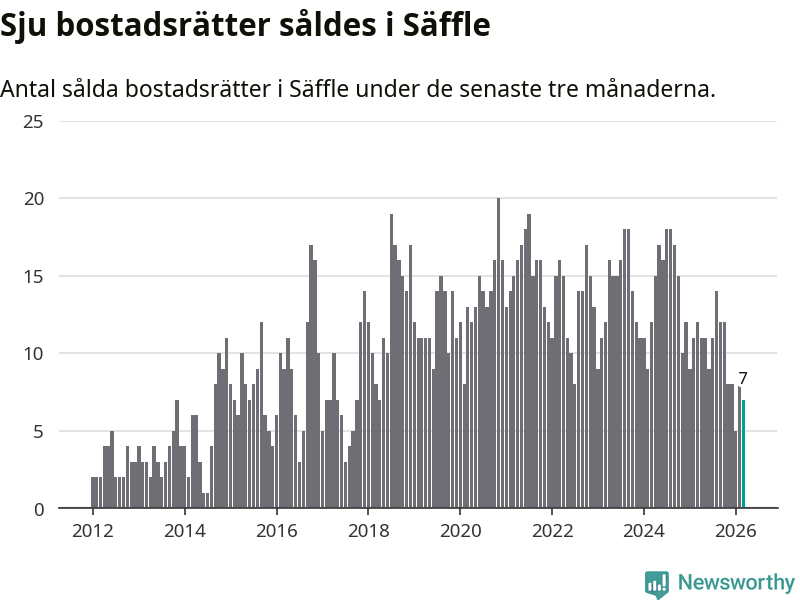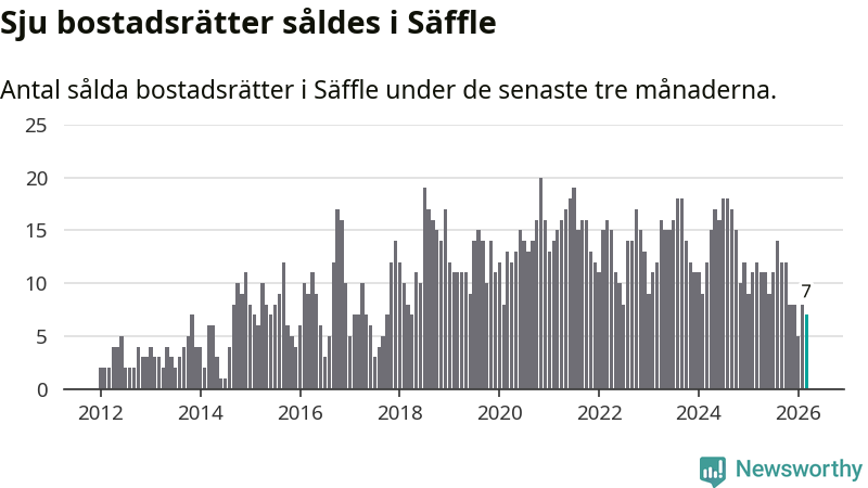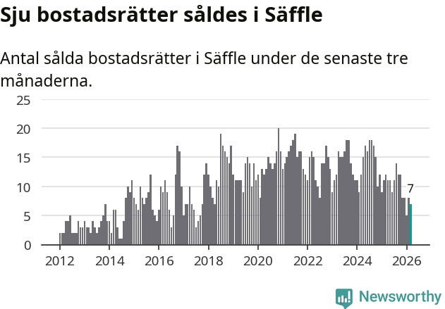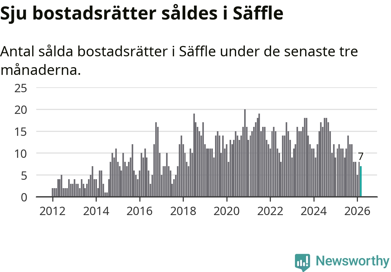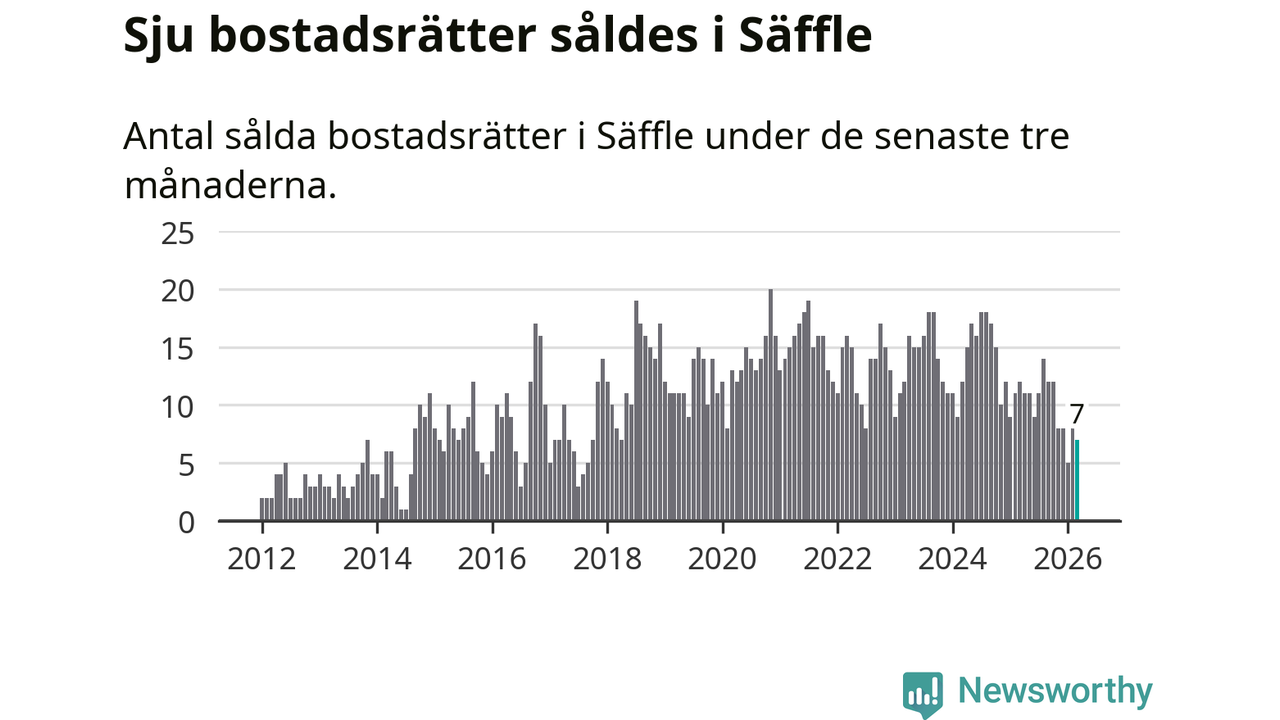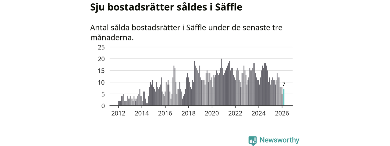 Mellan januari och mars gjordes sammanlagt sju affärer med bostadsrätter i Säffle kommun. Det kan jämföras med tolv vid motsvarande tid i fjol.