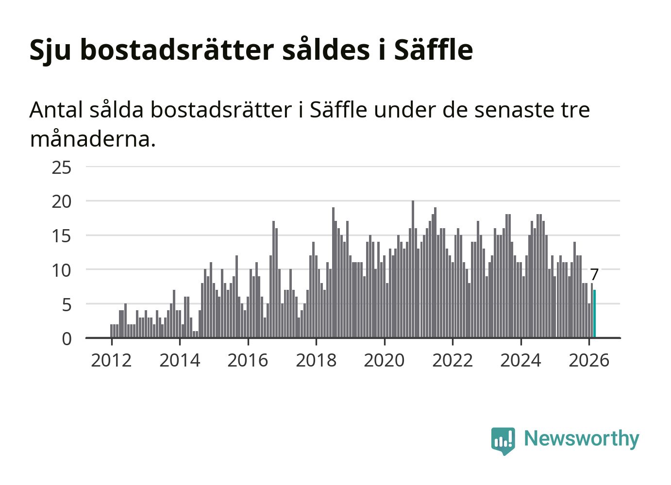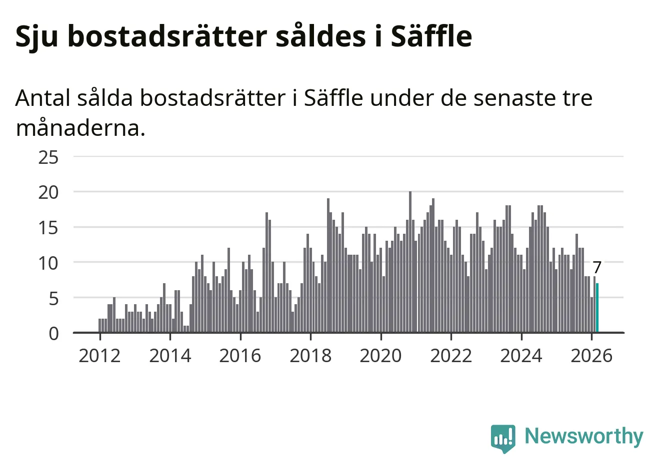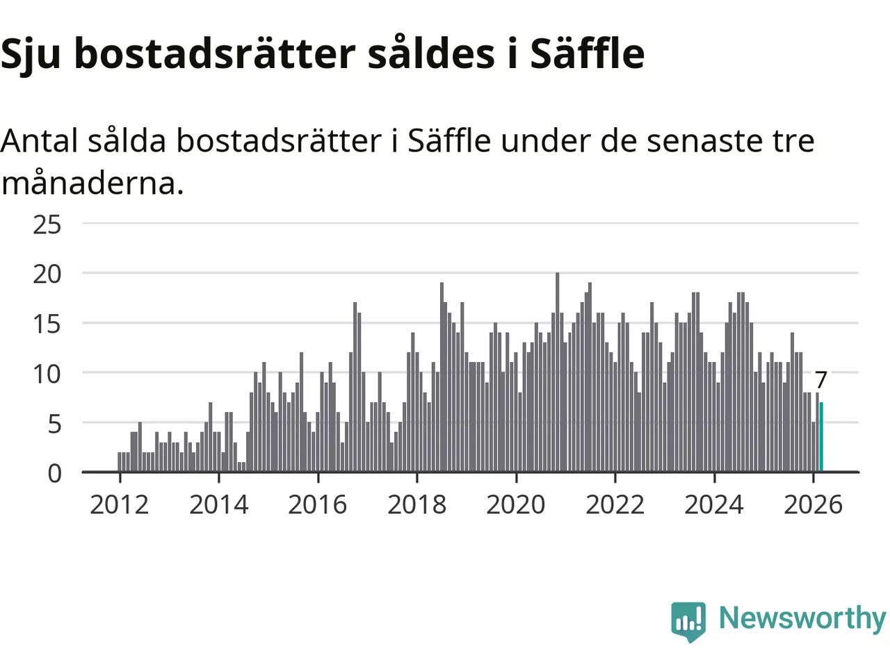 Mellan januari och mars gjordes sammanlagt sju affärer med bostadsrätter i Säffle kommun. Det kan jämföras med tolv vid motsvarande tid i fjol.
