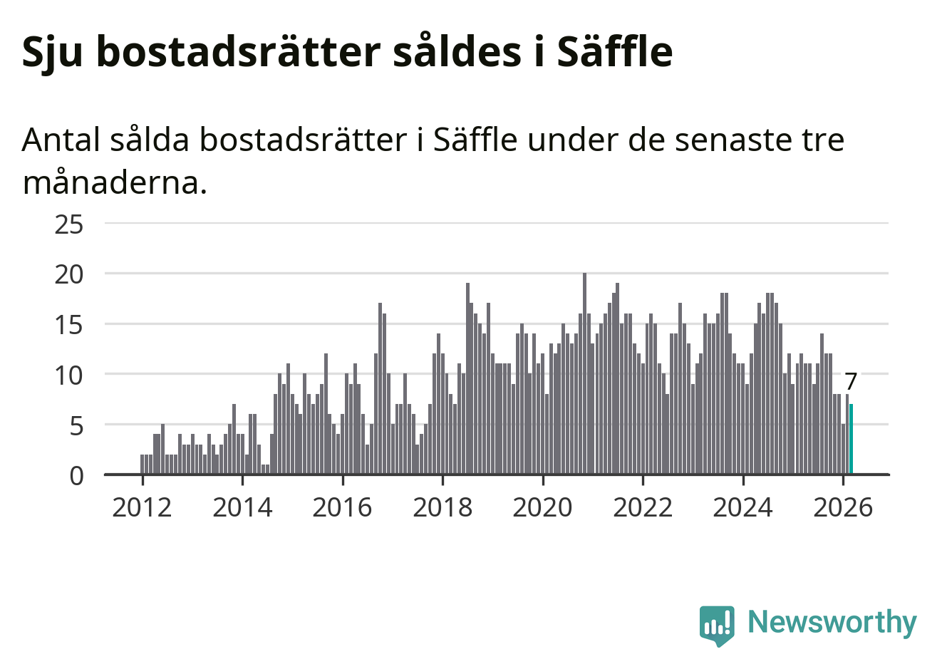 Graf: Antal sålda bostadsrätter i Säffle kommun