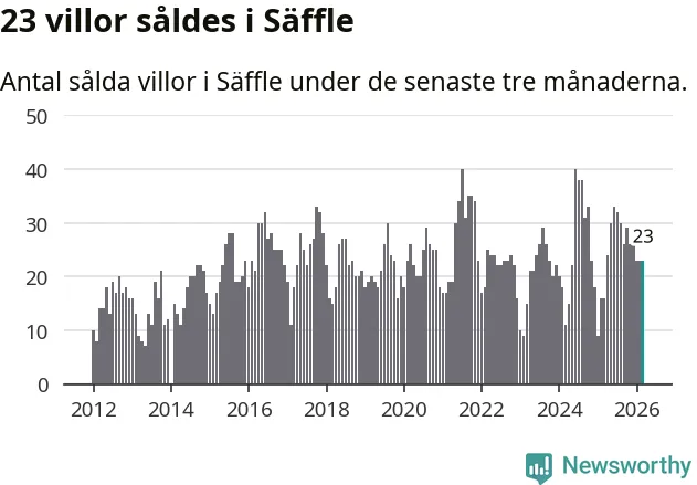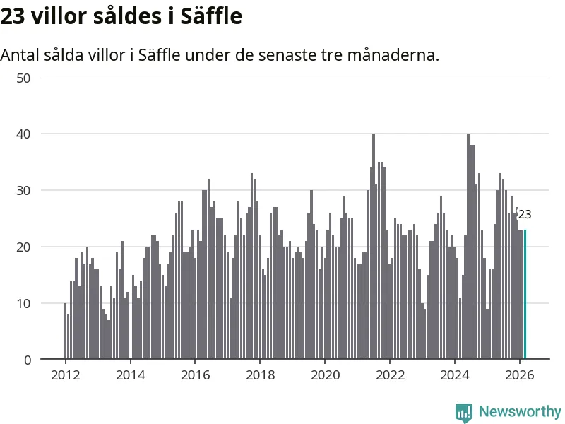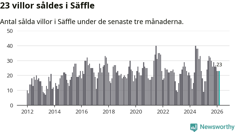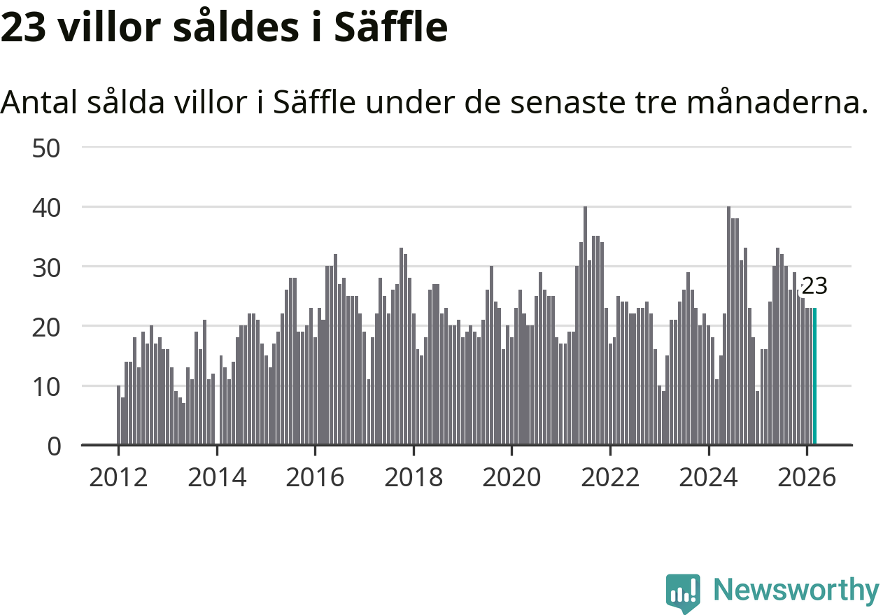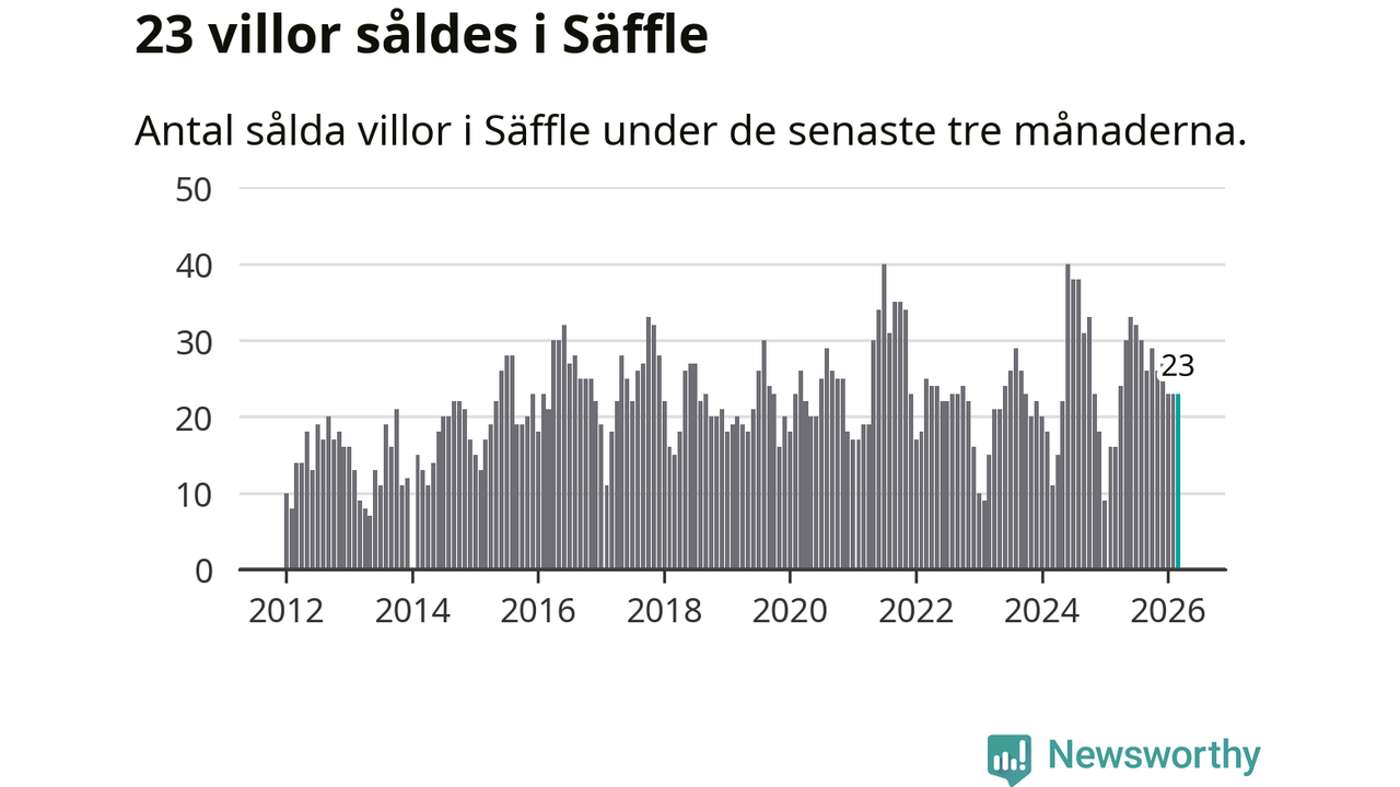 Mellan januari och mars gjordes sammanlagt 23 affärer med villor i Säffle kommun. Det kan jämföras med 16 vid motsvarande tid i fjol.