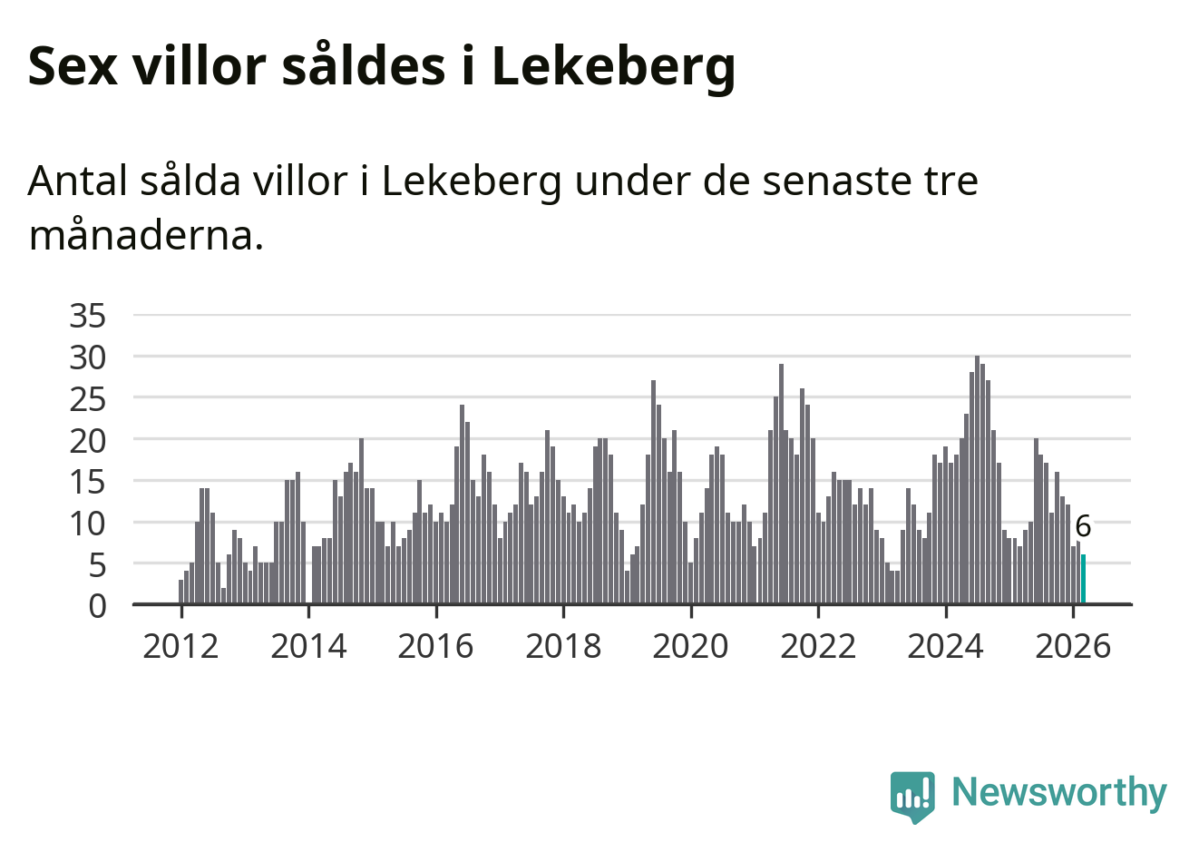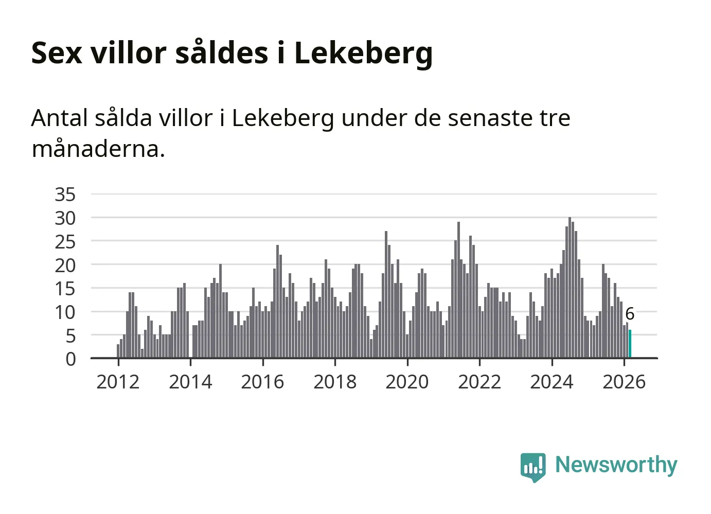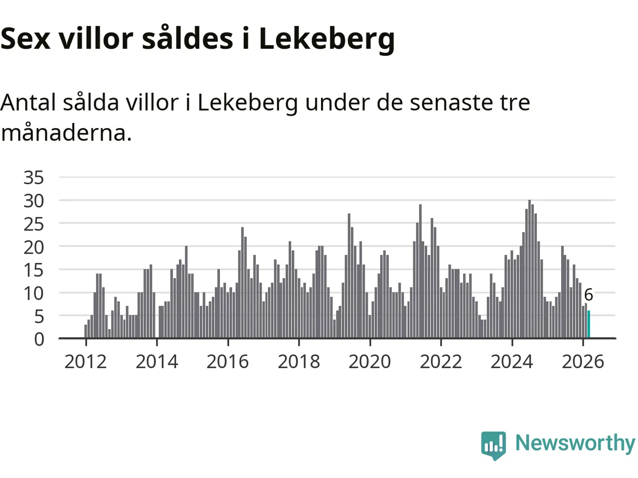 Mellan januari och mars gjordes sammanlagt sex affärer med villor i Lekebergs kommun. Det kan jämföras med sju vid motsvarande tid i fjol.