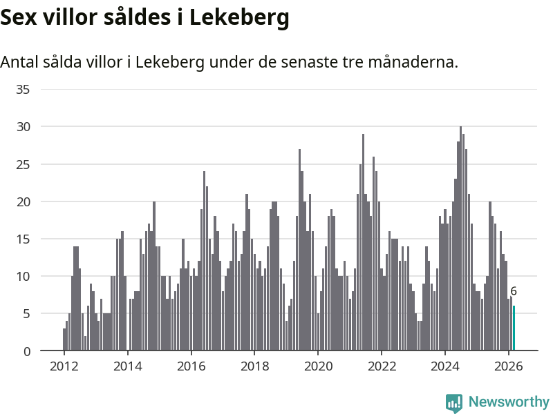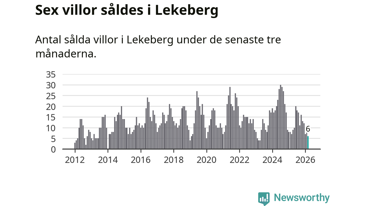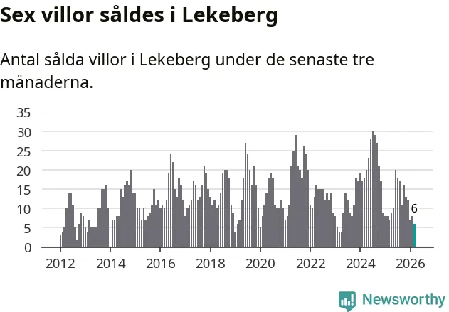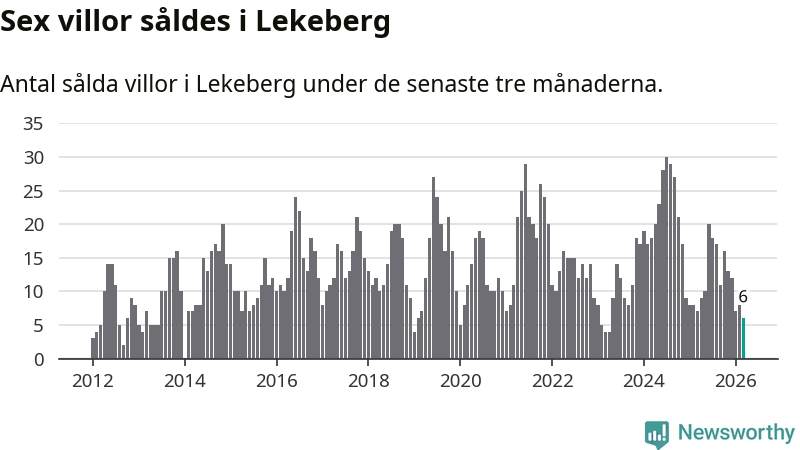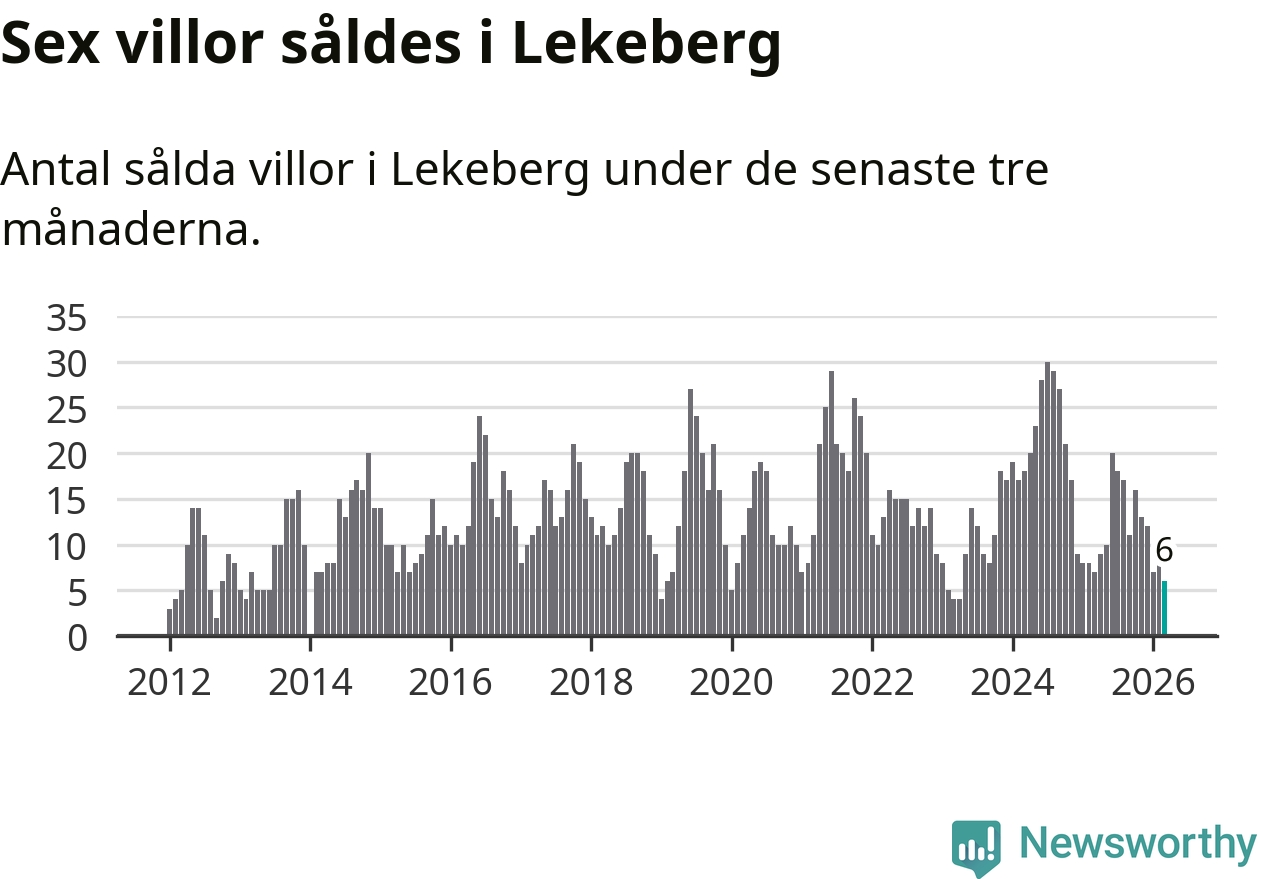 Mellan januari och mars gjordes sammanlagt sex affärer med villor i Lekebergs kommun. Det kan jämföras med sju vid motsvarande tid i fjol.