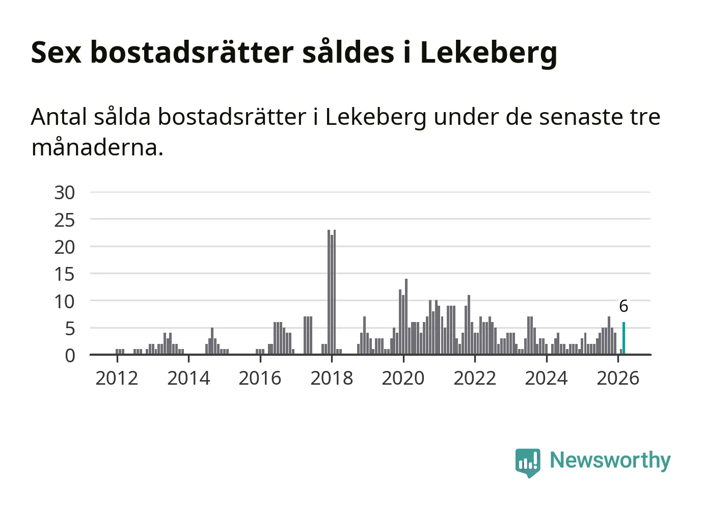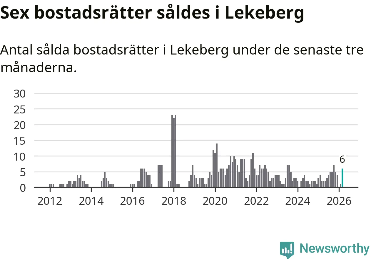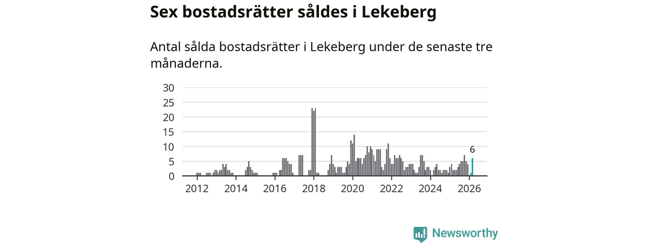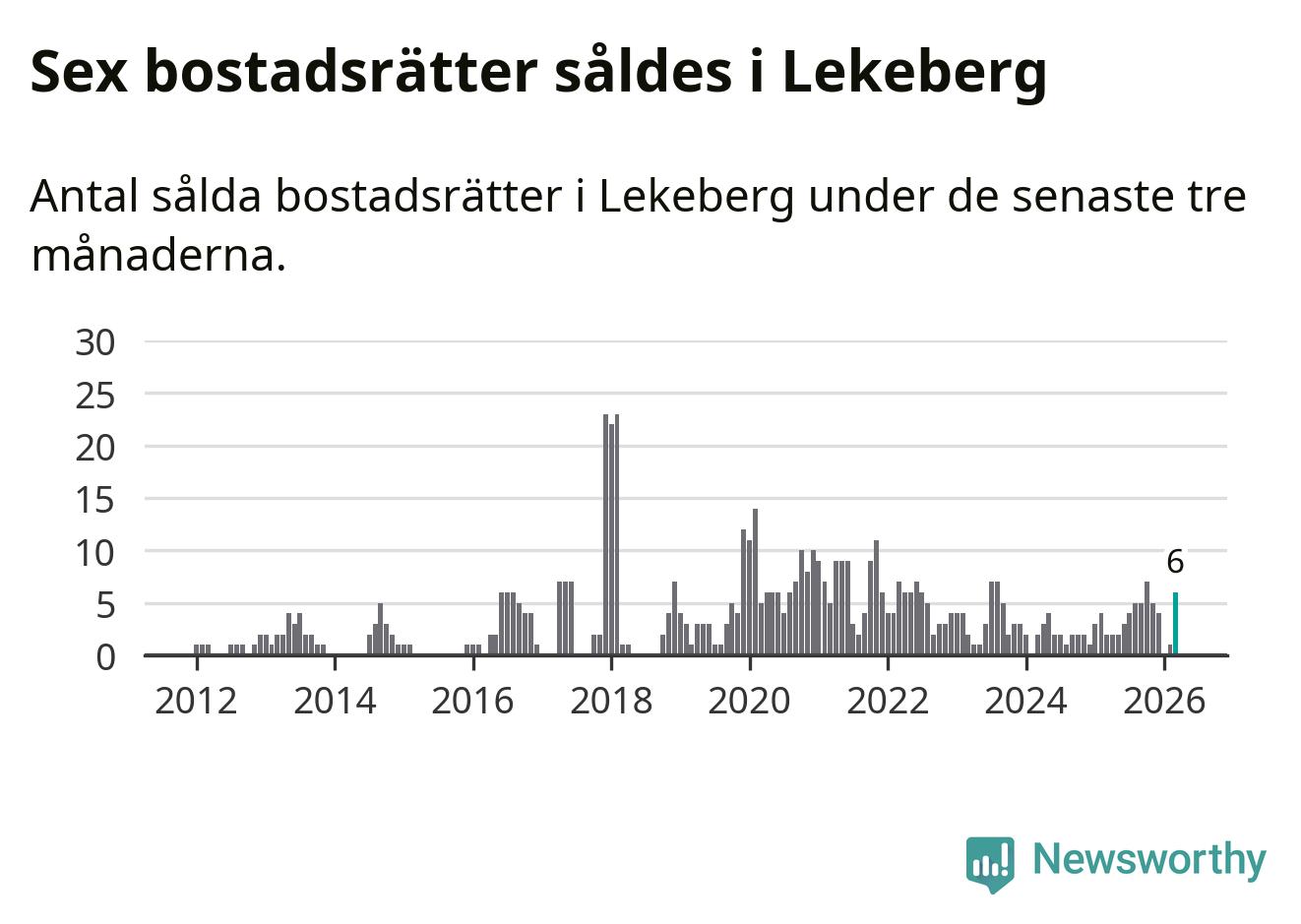 Mellan januari och mars gjordes sammanlagt sex affärer med bostadsrätter i Lekebergs kommun. Det kan jämföras med två vid motsvarande tid i fjol.