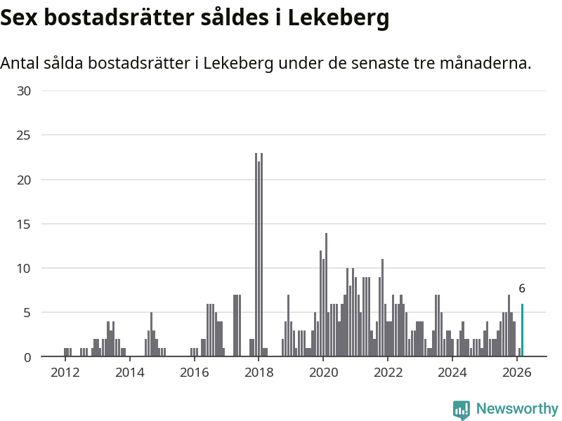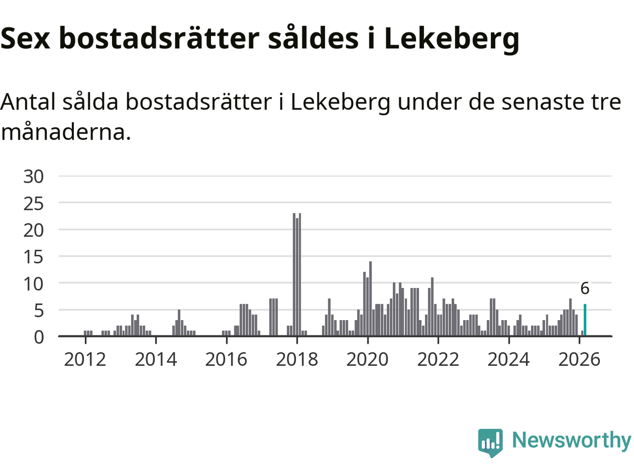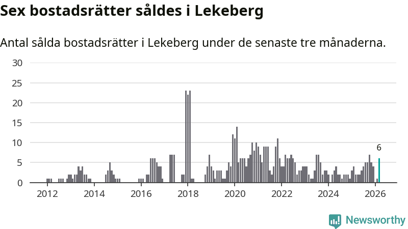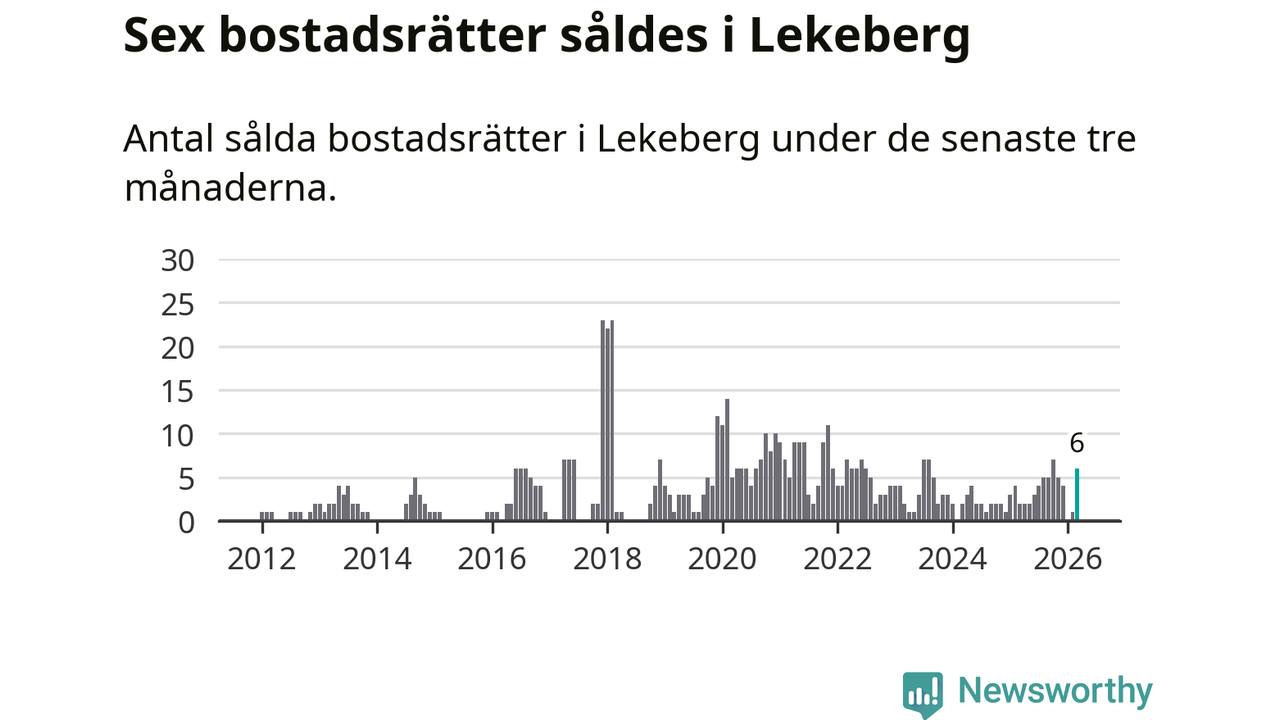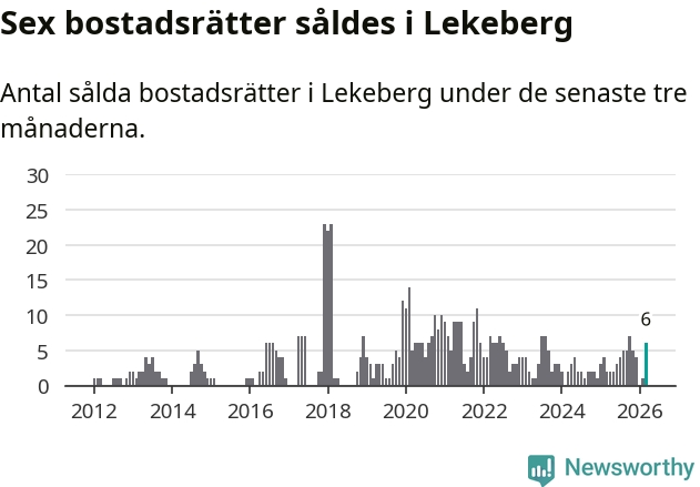 Mellan januari och mars gjordes sammanlagt sex affärer med bostadsrätter i Lekebergs kommun. Det kan jämföras med två vid motsvarande tid i fjol.