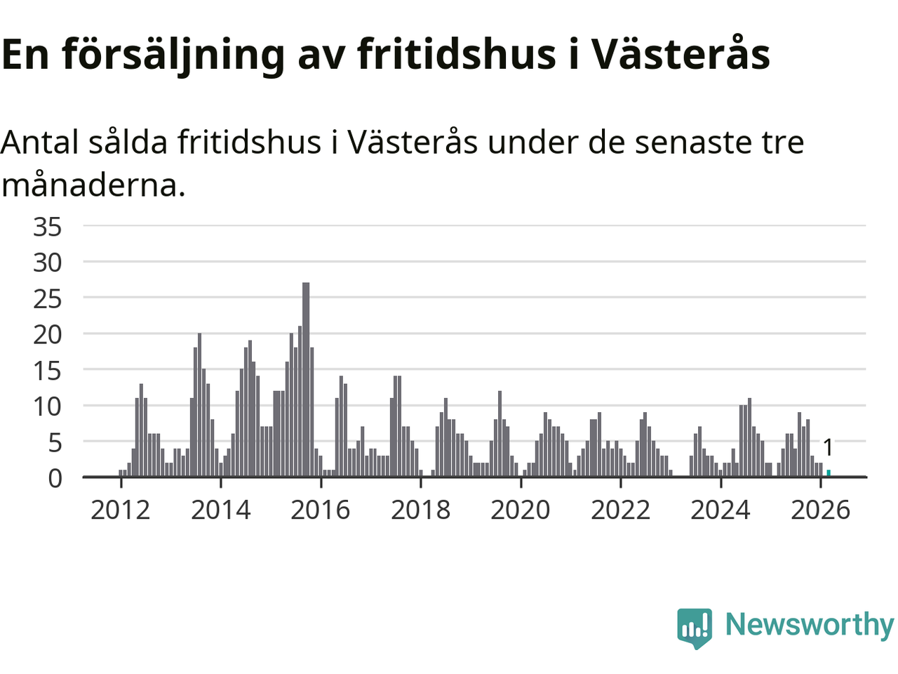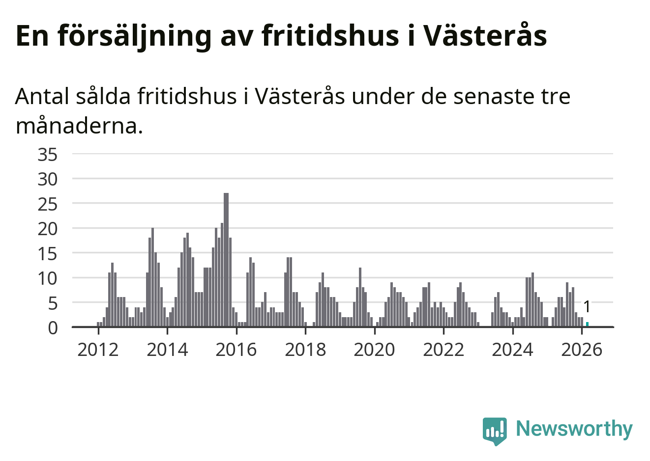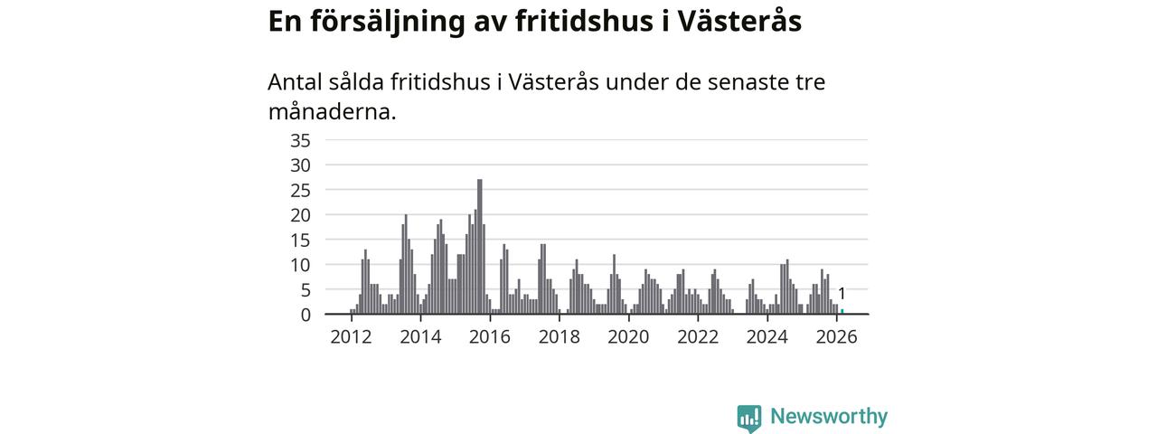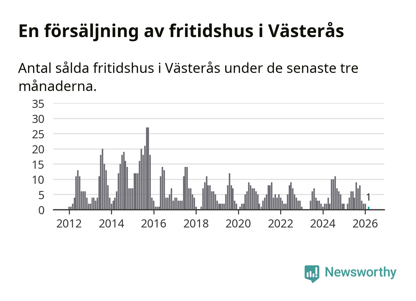 Mellan januari och mars gjordes sammanlagt en affär med fritidshus i Västerås kommun. Det kan jämföras med två vid motsvarande tid i fjol.