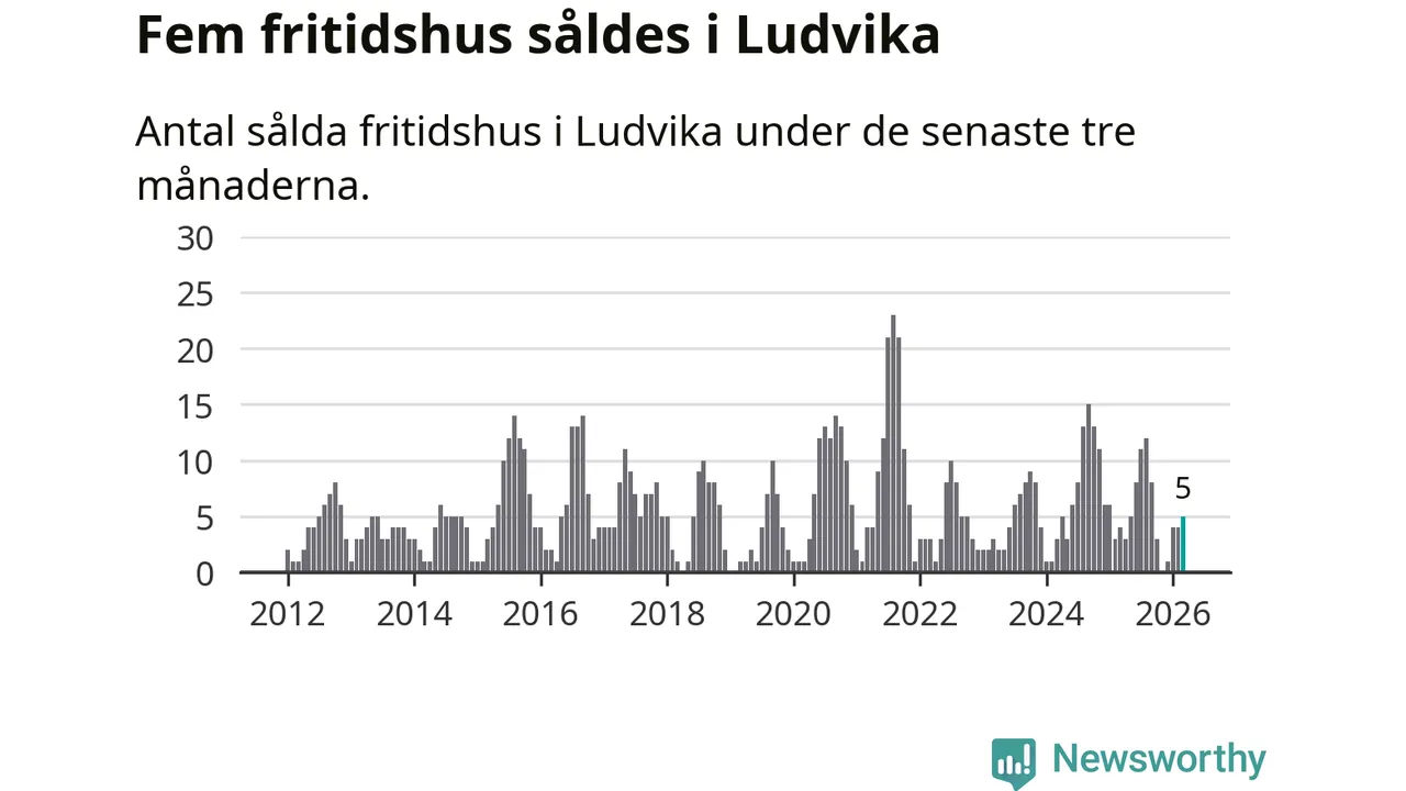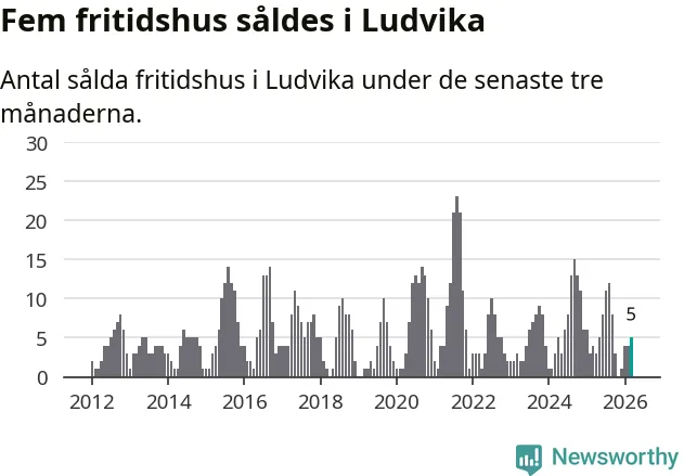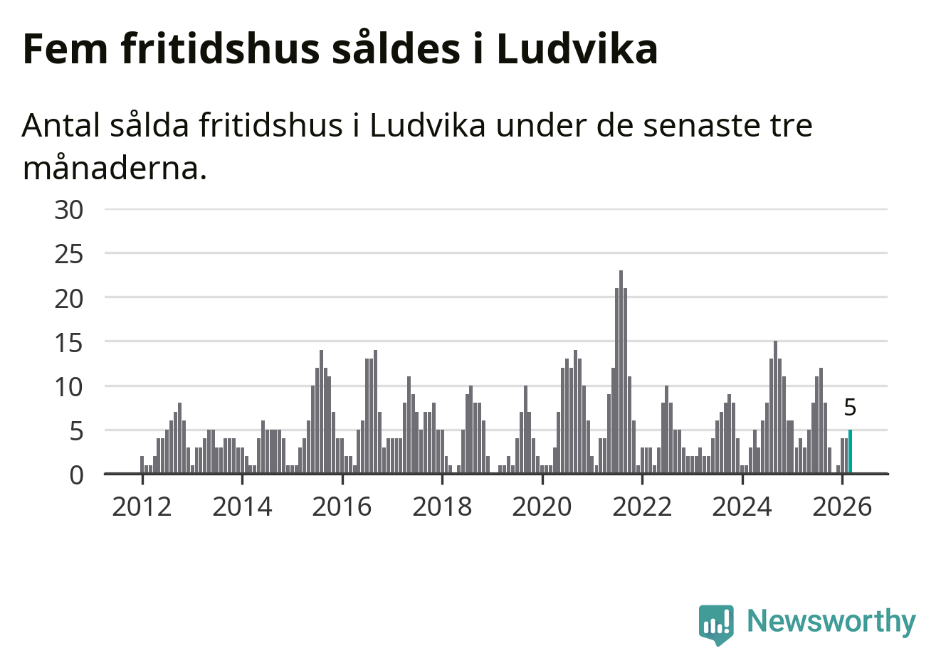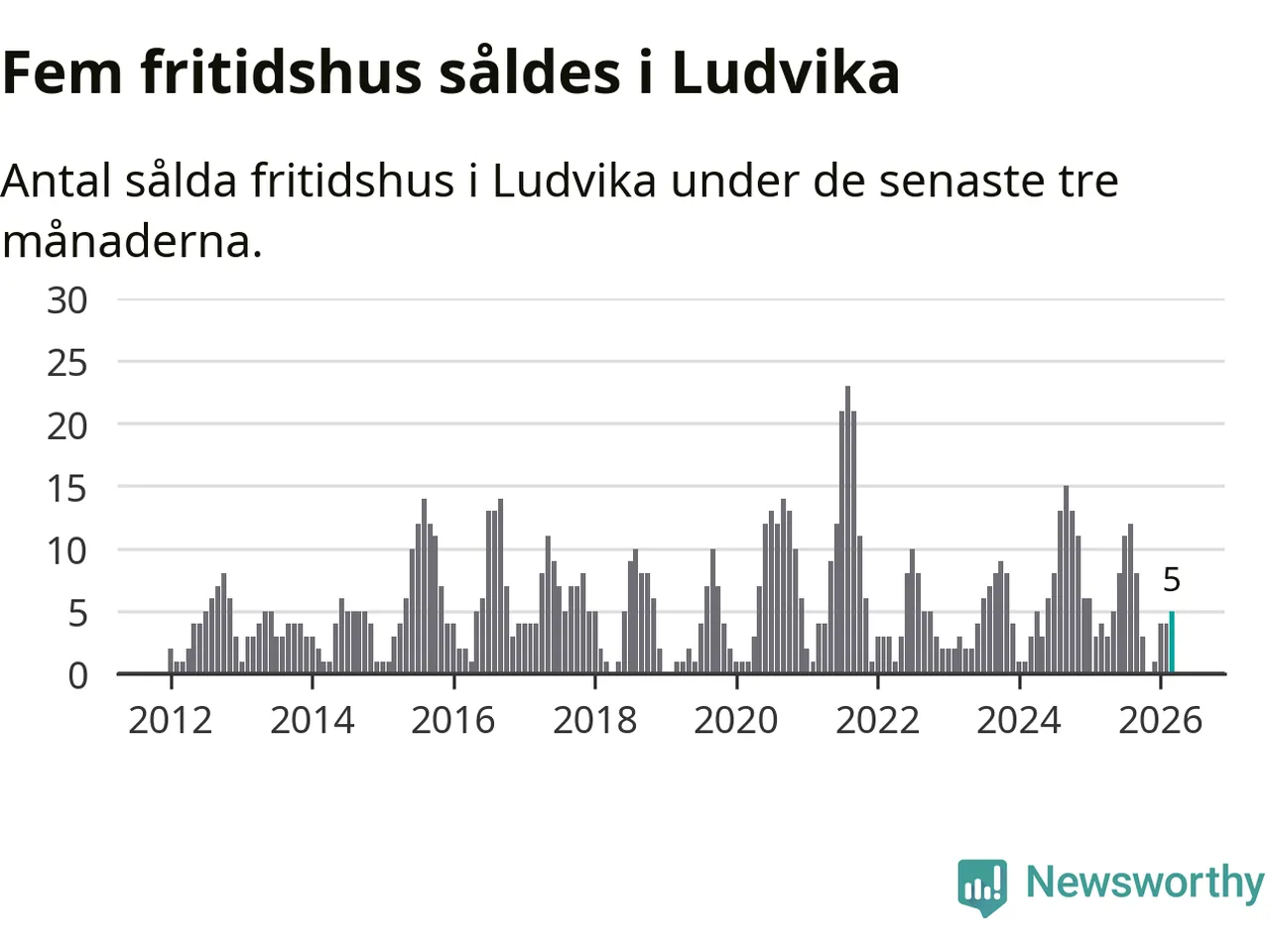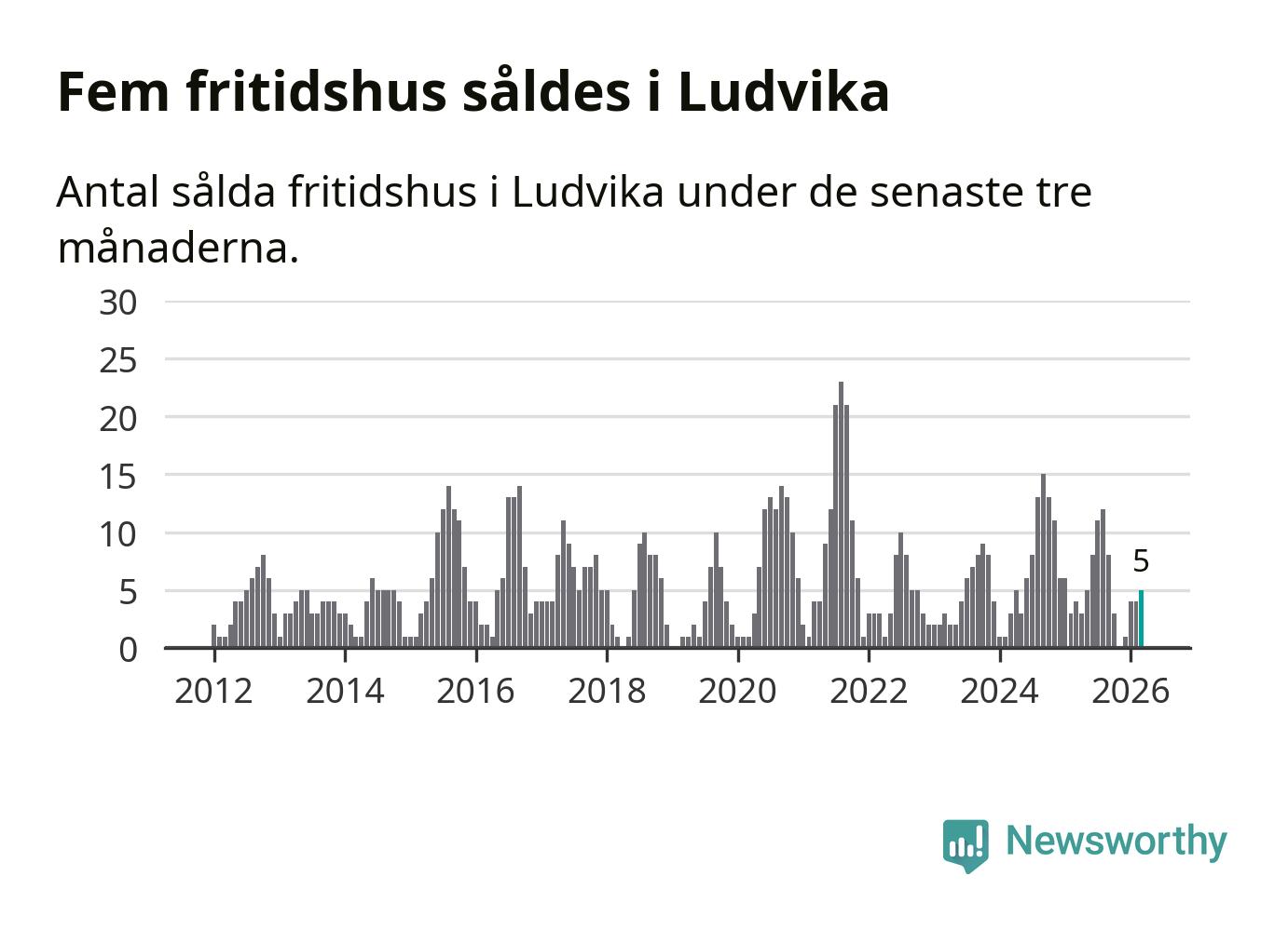 Mellan januari och mars gjordes sammanlagt fem affärer med fritidshus i Ludvika kommun. Det kan jämföras med fyra vid motsvarande tid i fjol.