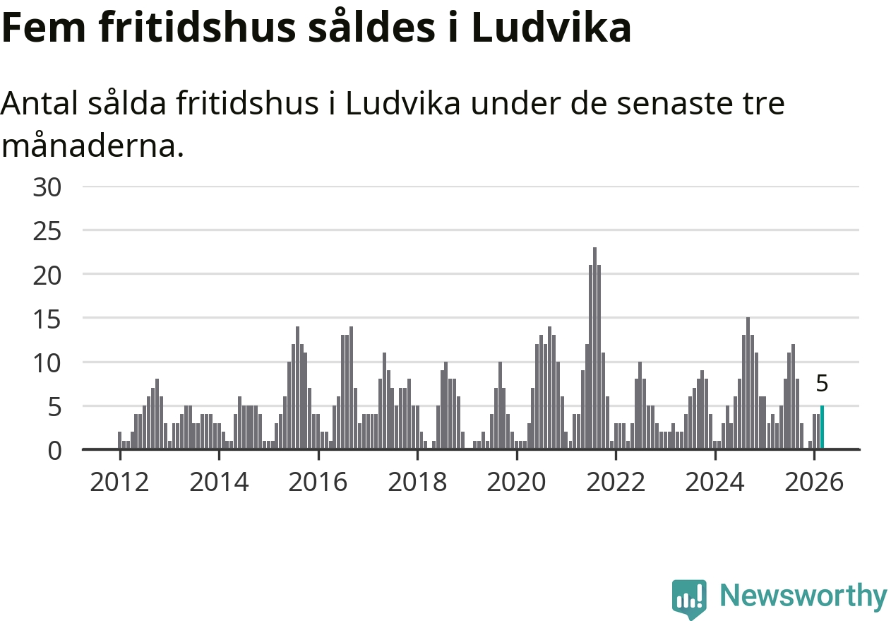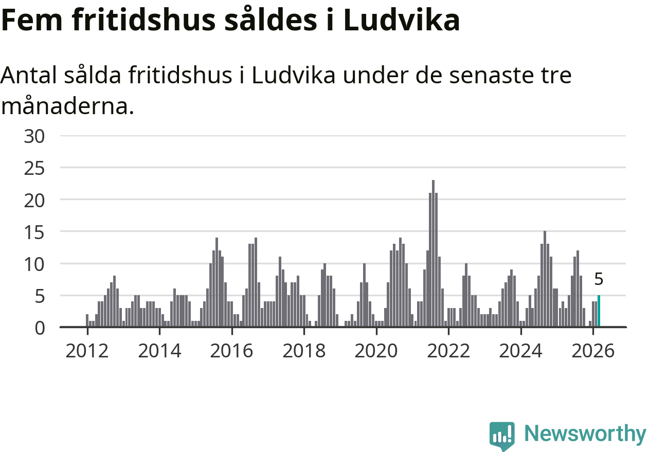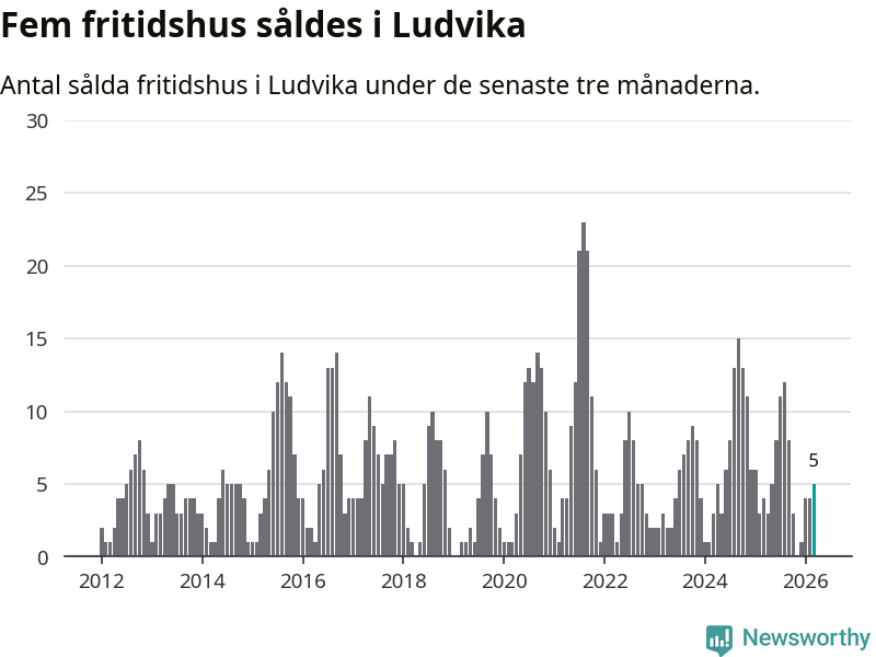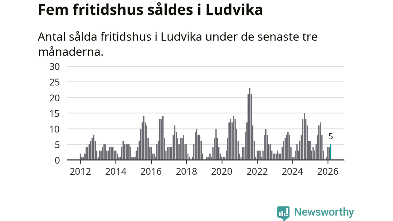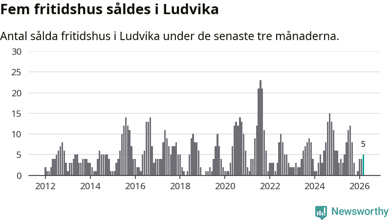 Mellan januari och mars gjordes sammanlagt fem affärer med fritidshus i Ludvika kommun. Det kan jämföras med fyra vid motsvarande tid i fjol.