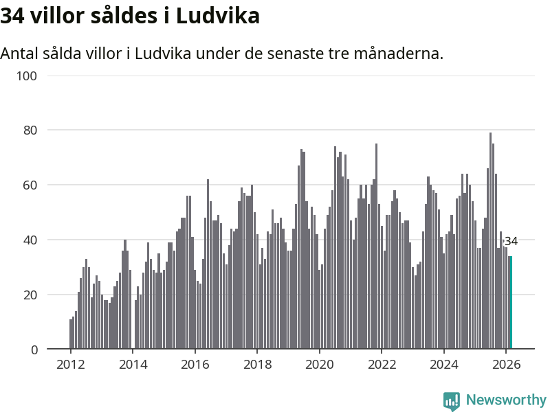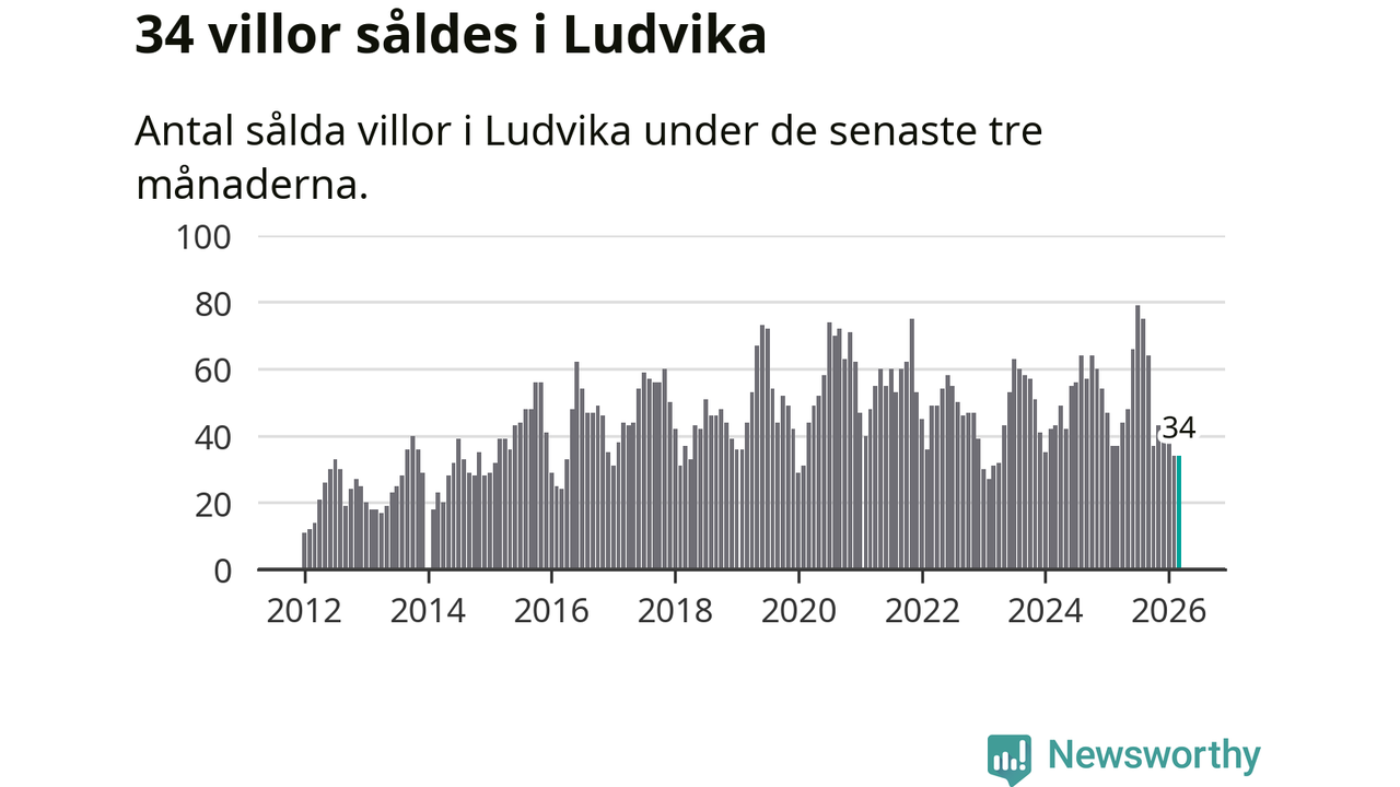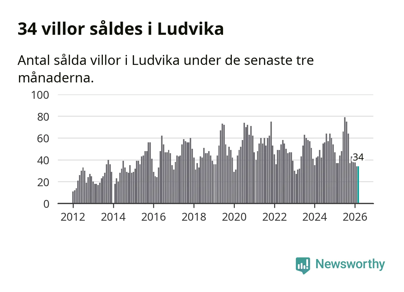 Sammanlagt såldes 34 villor i Ludvika kommun mellan januari och mars till ett genomsnittligt pris på 1,3 miljoner kronor. I fjol gjordes 37 affärer vid den här tiden på året.