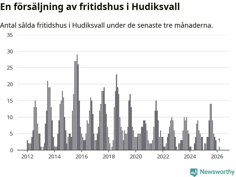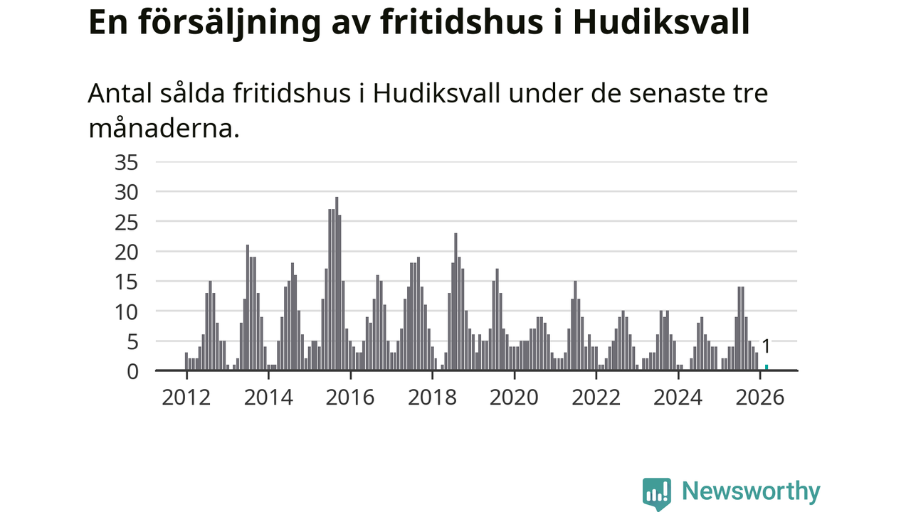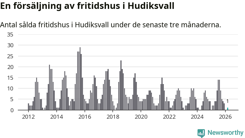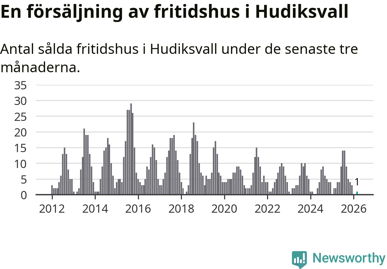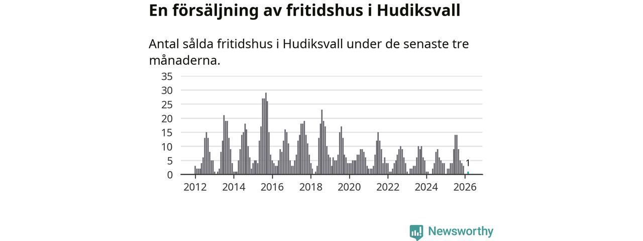 Mellan januari och mars gjordes sammanlagt en affär med fritidshus i Hudiksvalls kommun. Det kan jämföras med två vid motsvarande tid i fjol.