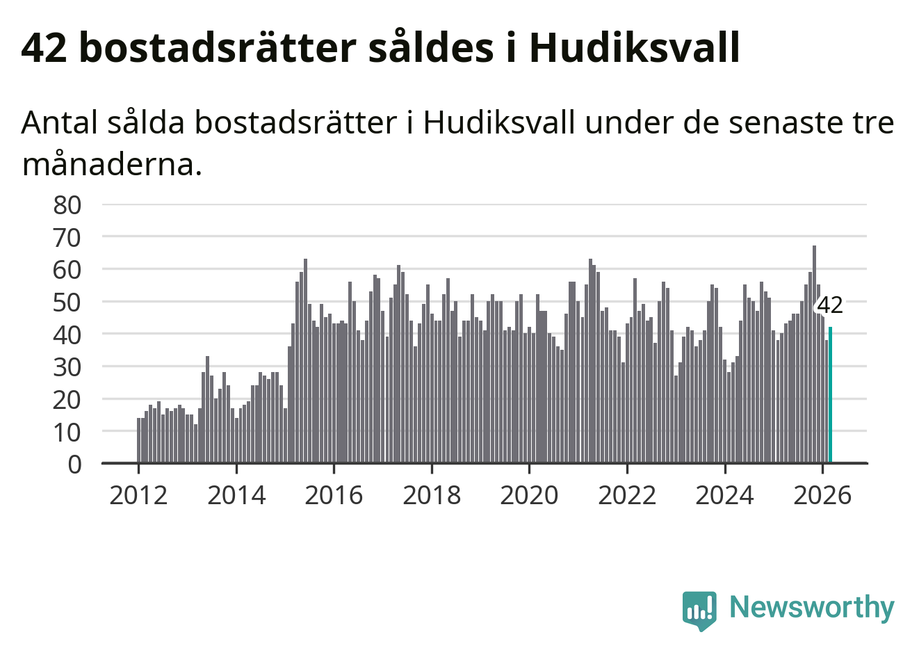 Graf: Antal sålda bostadsrätter i Hudiksvalls kommun