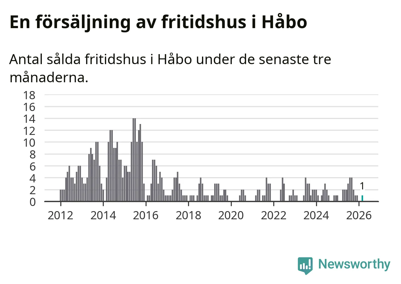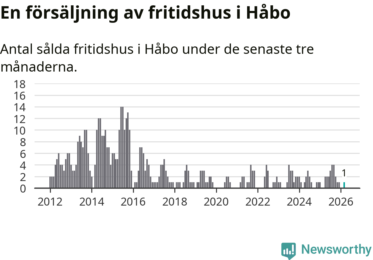 Mellan januari och mars gjordes sammanlagt en affär med fritidshus i Håbo kommun.