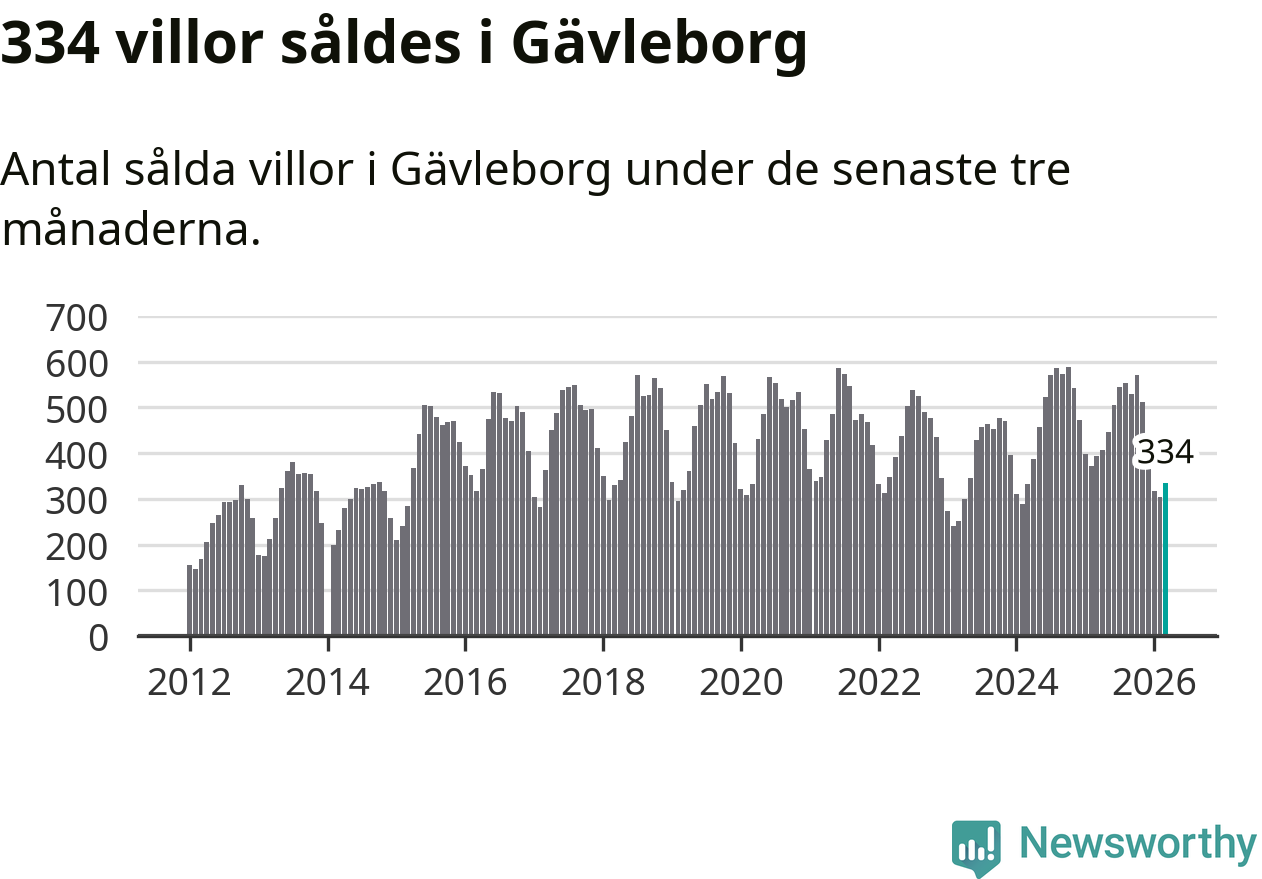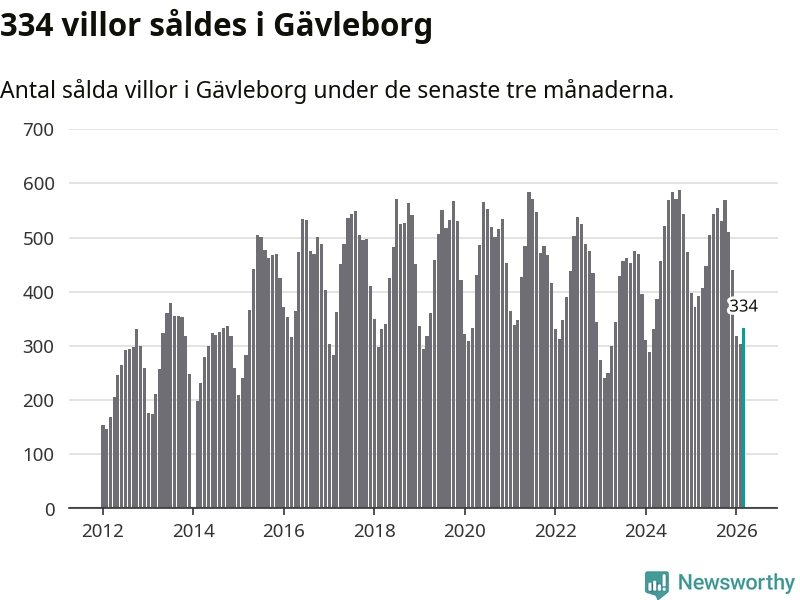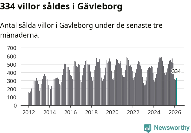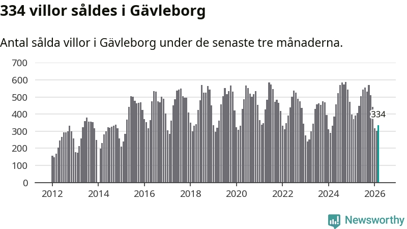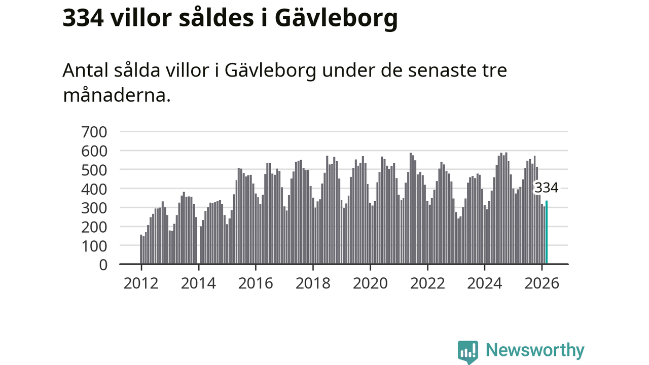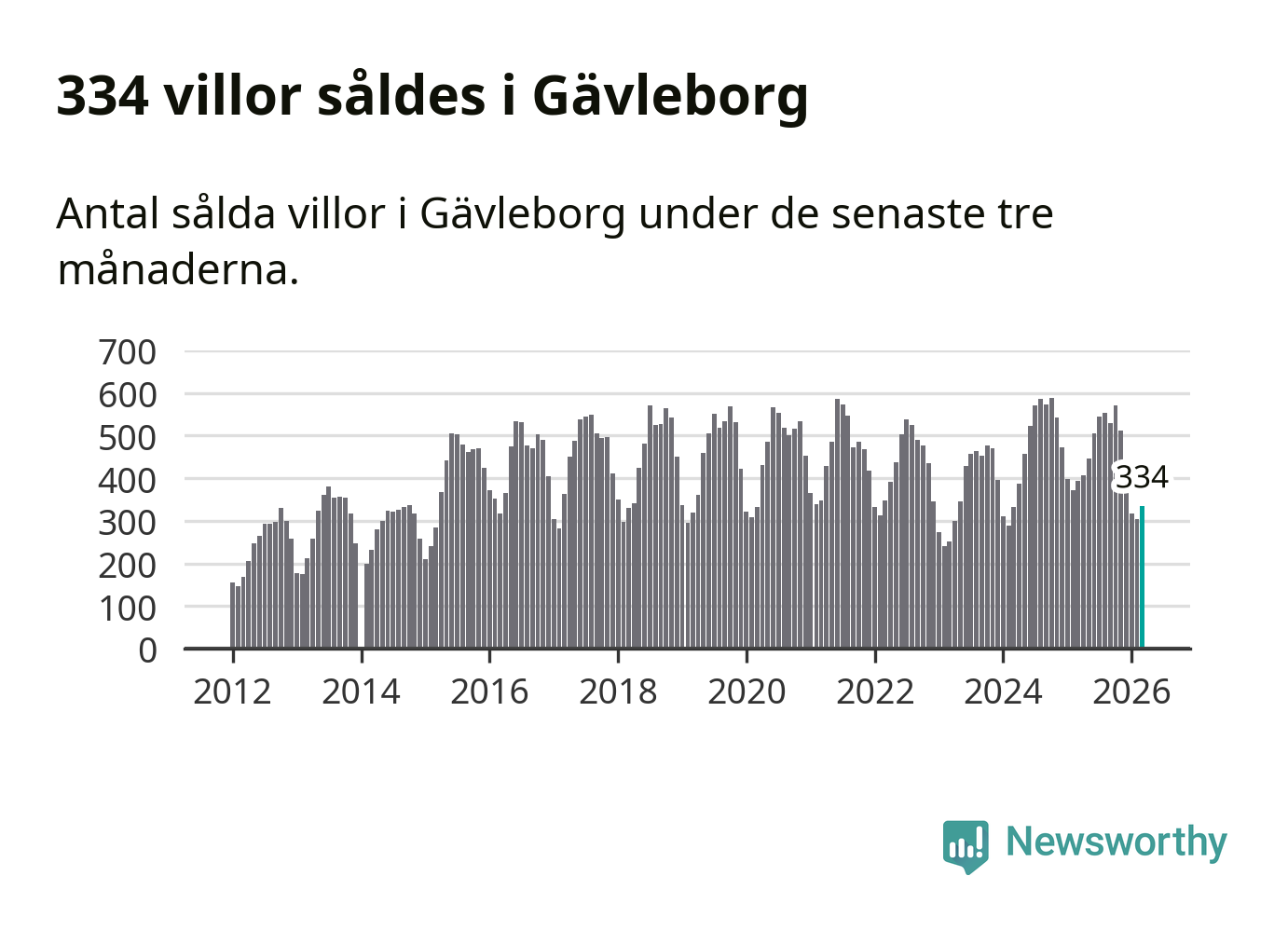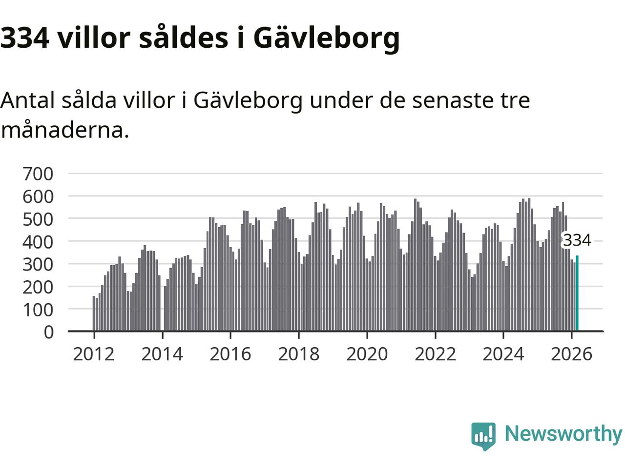 Sammanlagt såldes 334 villor i Gävleborgs län mellan januari och mars till ett genomsnittligt pris på 2,4 miljoner kronor. I fjol gjordes 393 affärer vid den här tiden på året.