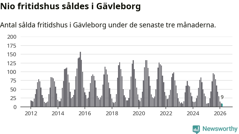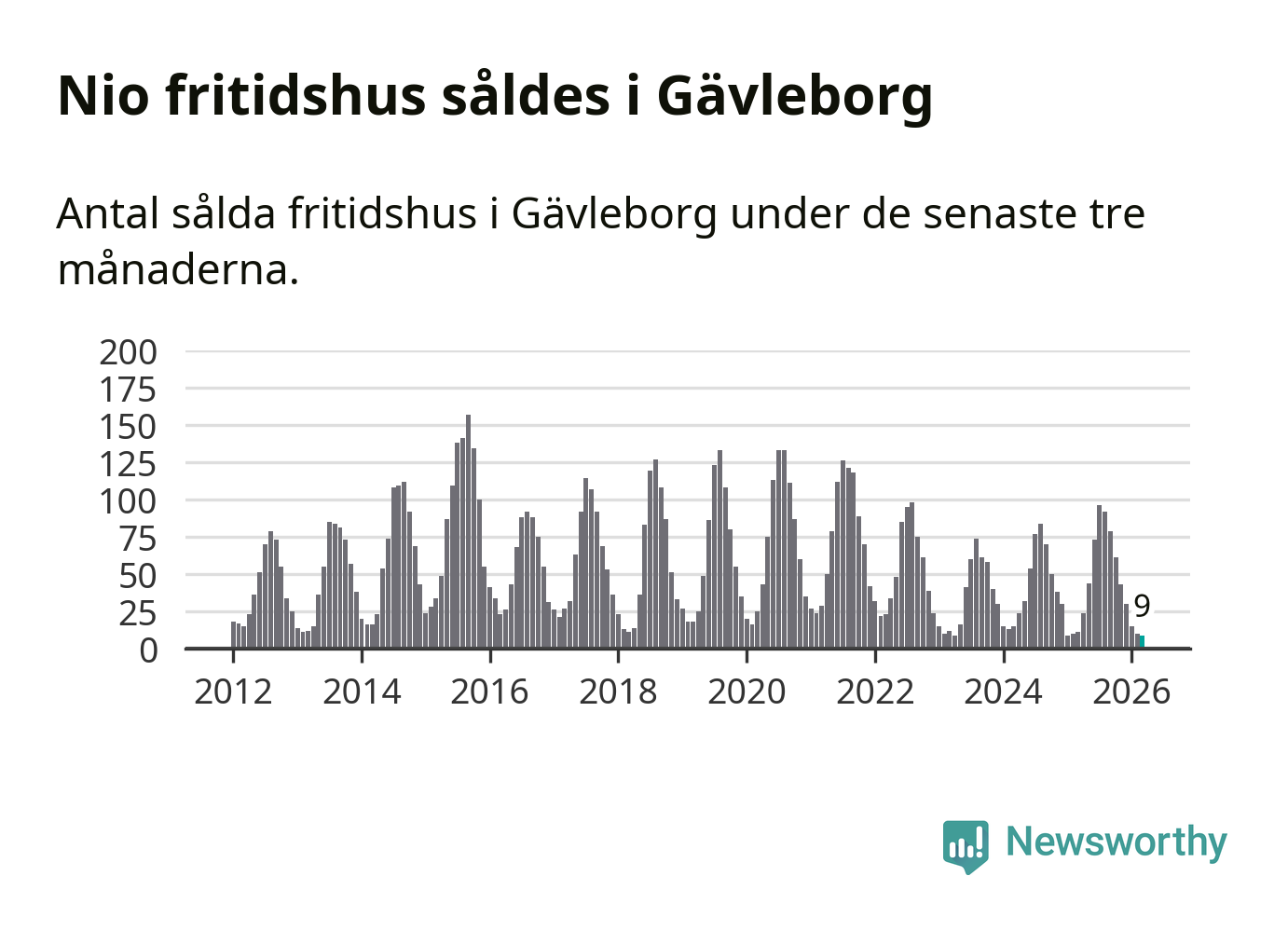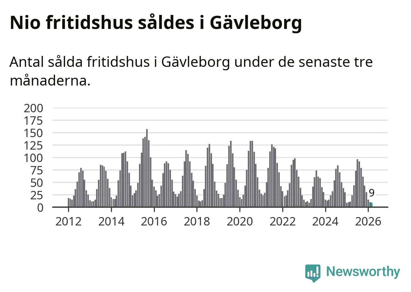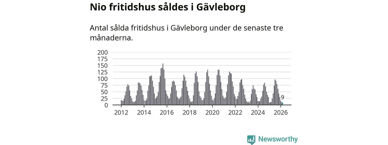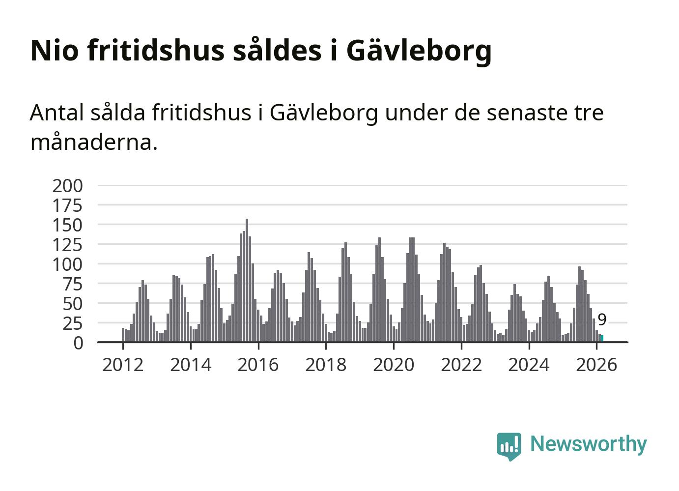 Sammanlagt såldes nio fritidshus i Gävleborgs län mellan januari och mars till ett genomsnittligt pris på 1,4 miljoner kronor. I fjol gjordes elva affärer vid den här tiden på året.