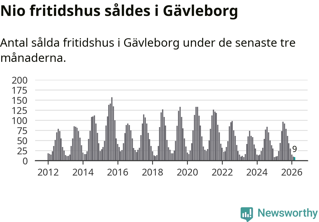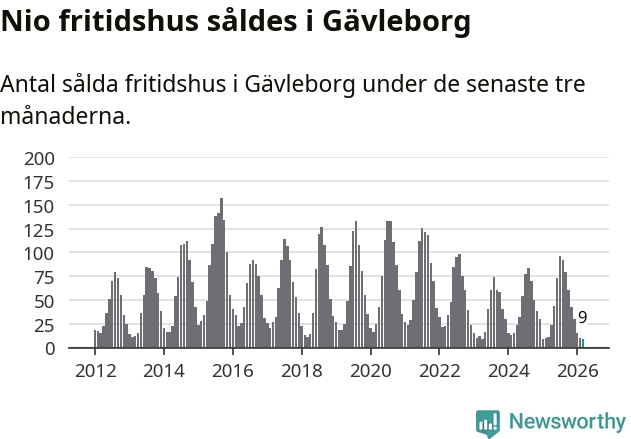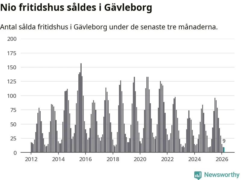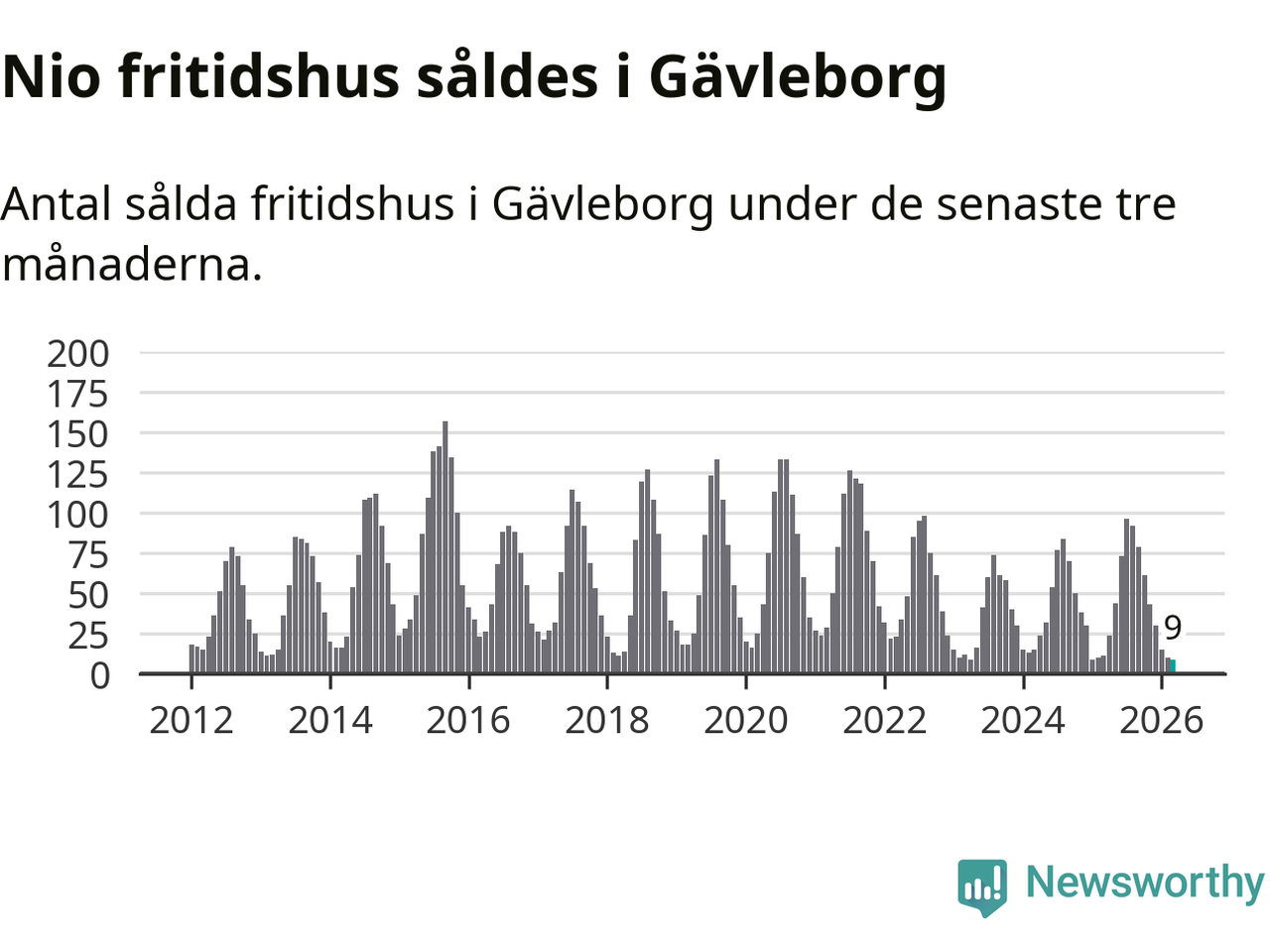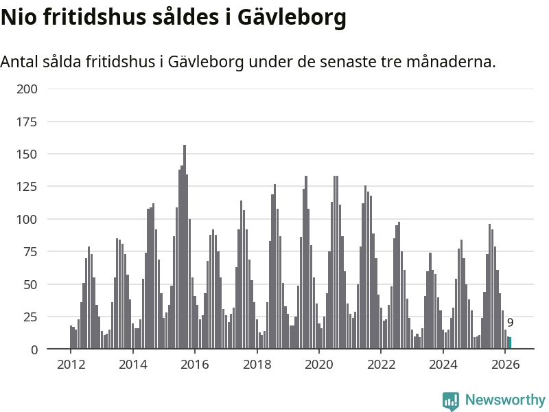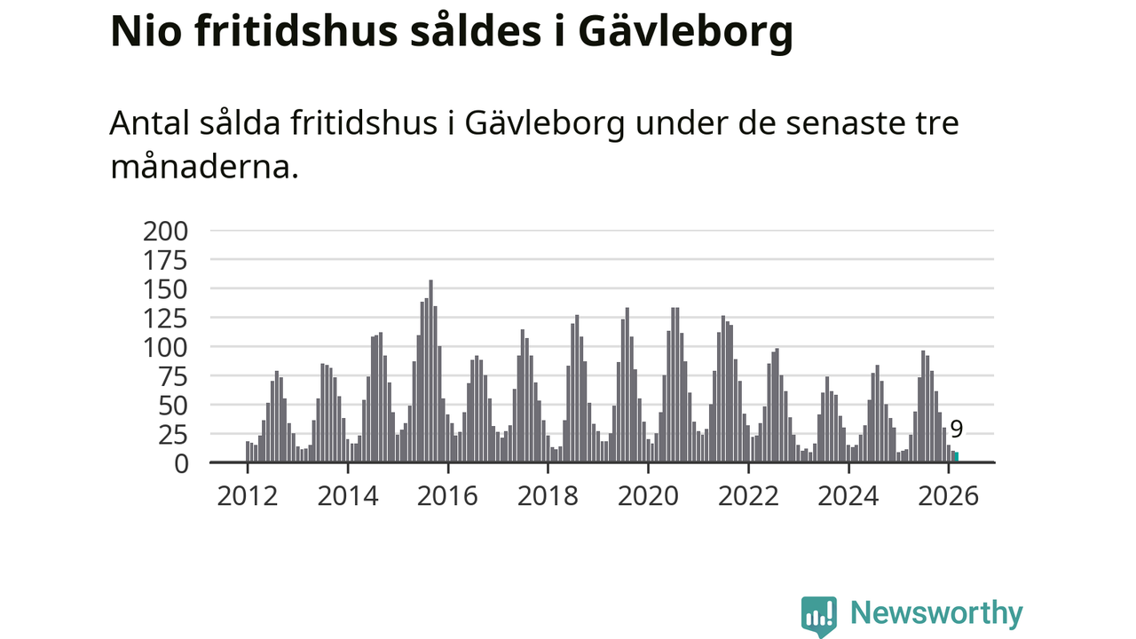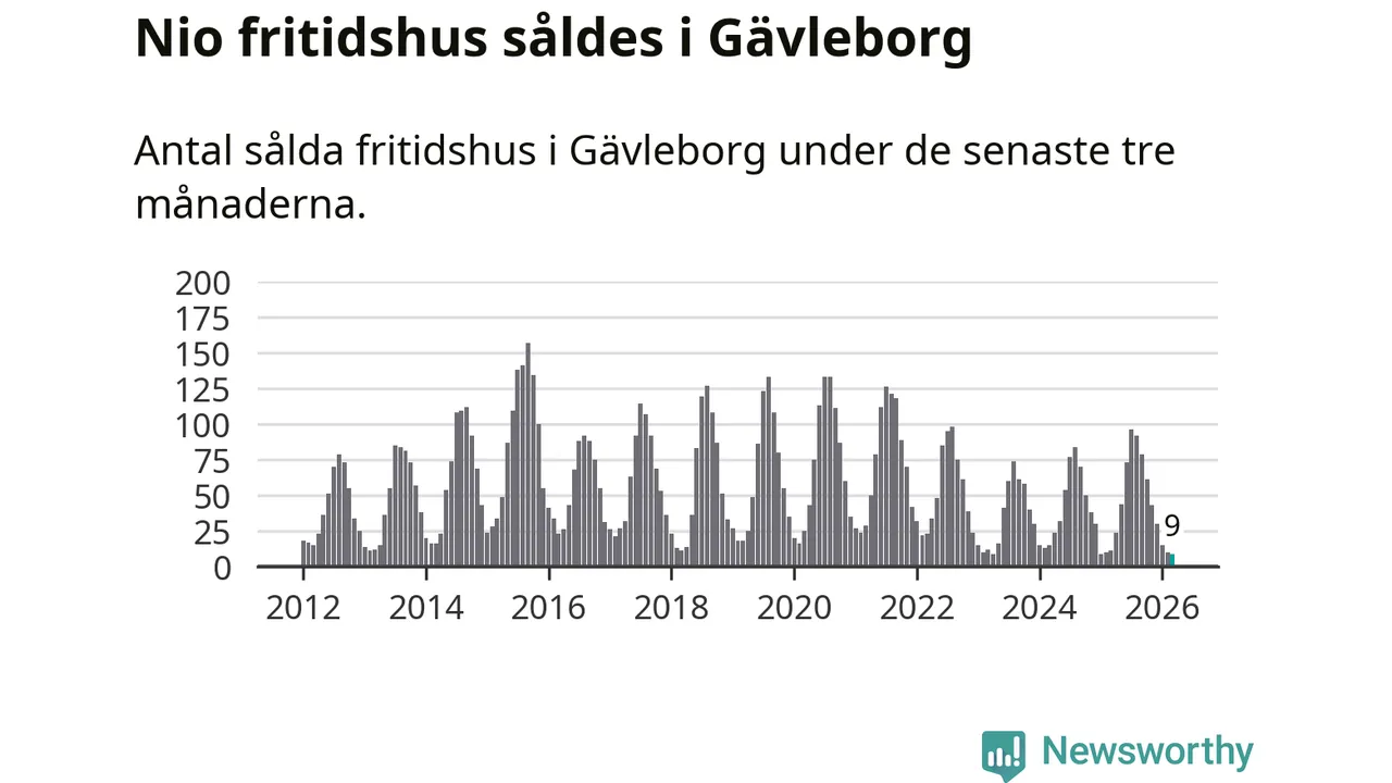 Sammanlagt såldes nio fritidshus i Gävleborgs län mellan januari och mars till ett genomsnittligt pris på 1,4 miljoner kronor. I fjol gjordes elva affärer vid den här tiden på året.