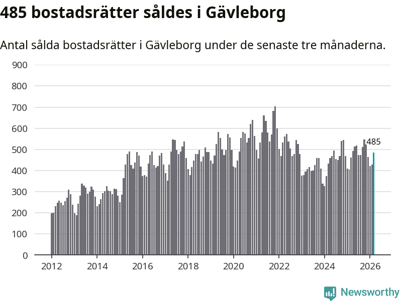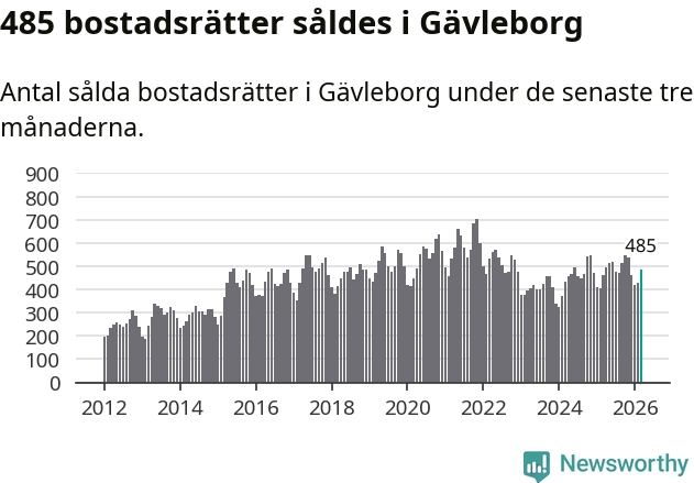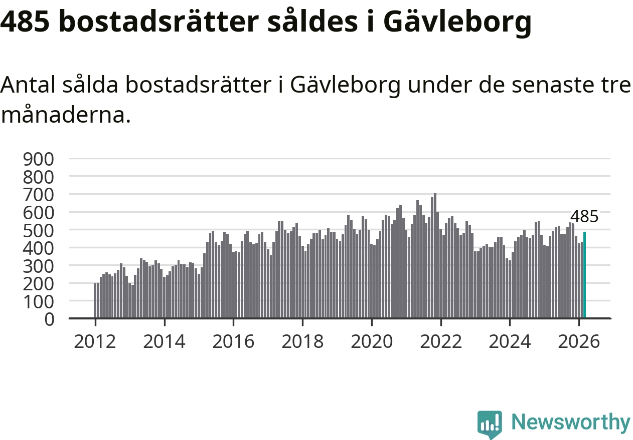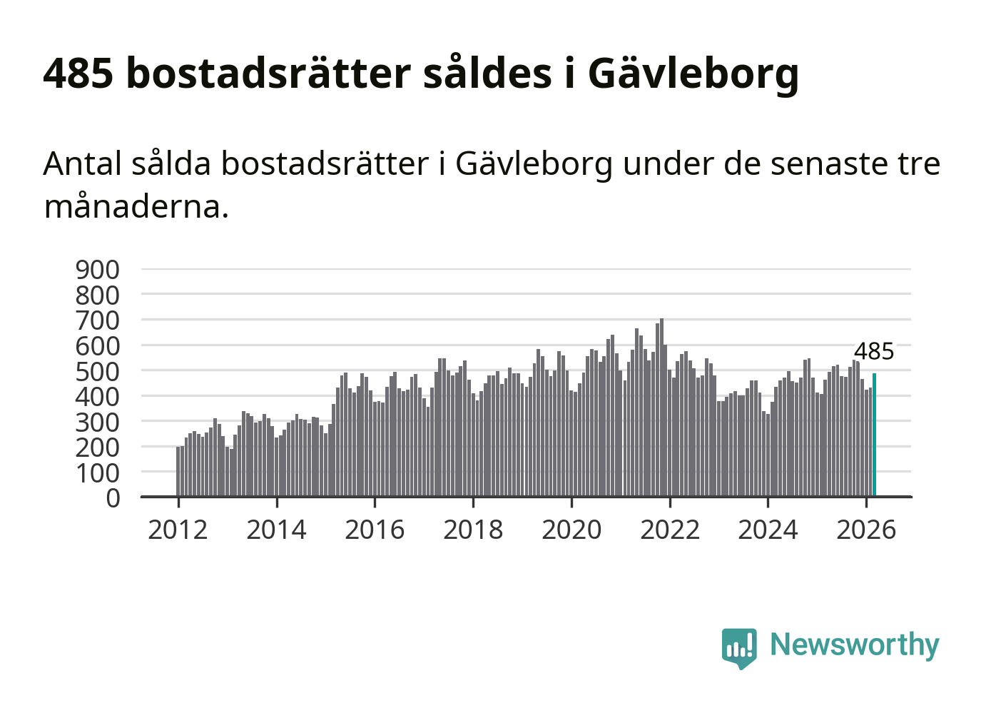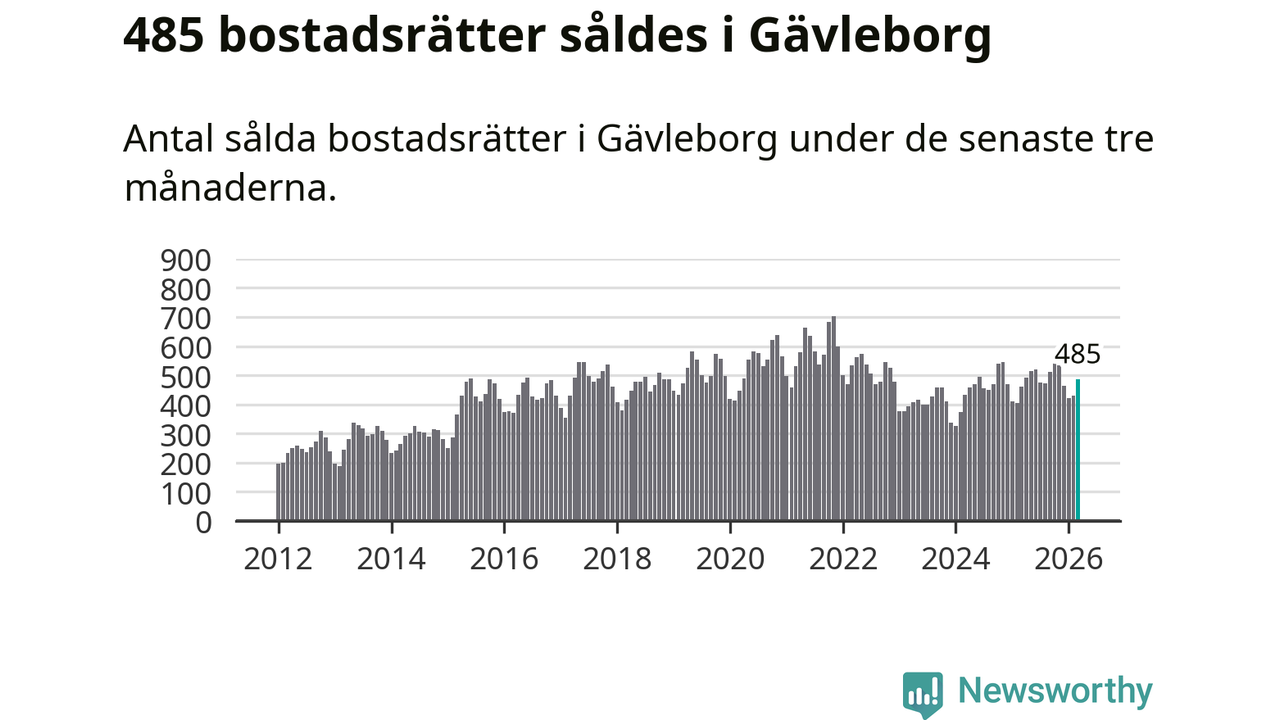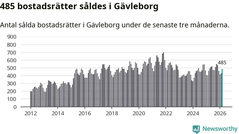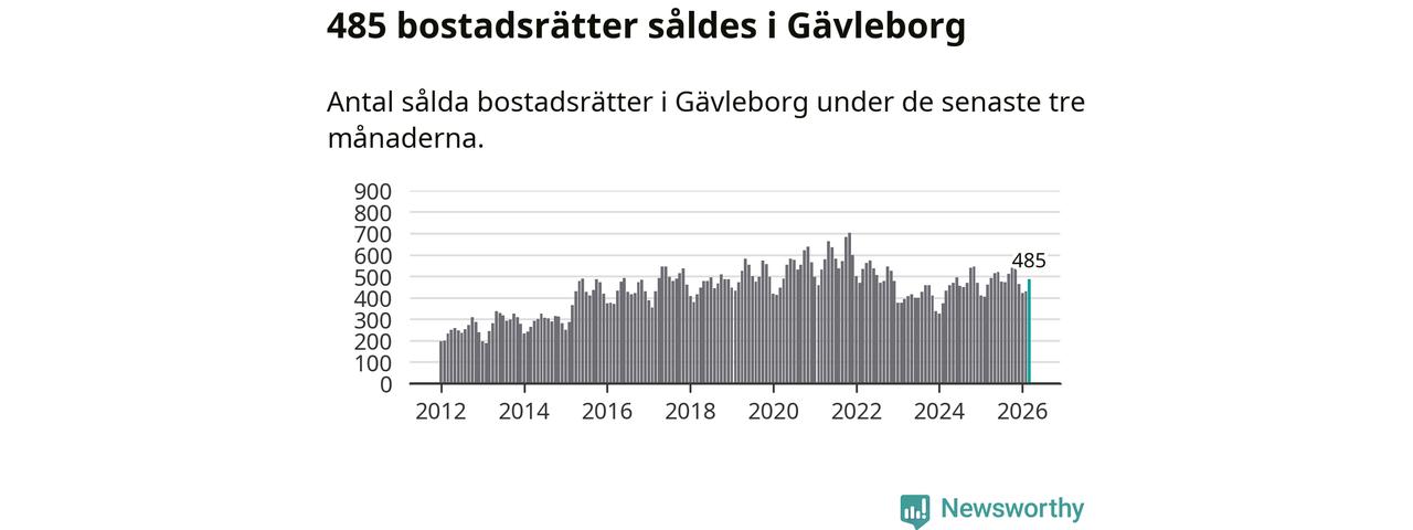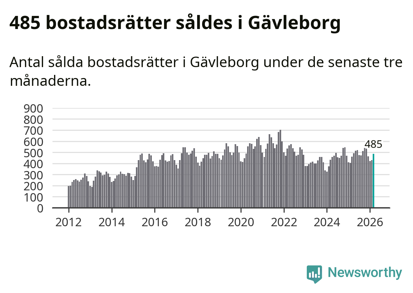 Sammanlagt såldes 485 bostadsrätter i Gävleborgs län mellan januari och mars till ett genomsnittligt pris på 1,3 miljoner kronor. I fjol gjordes 461 affärer vid den här tiden på året.