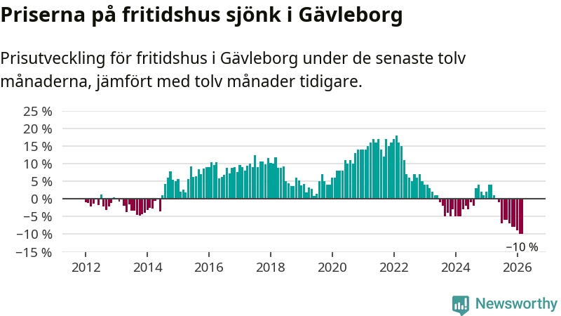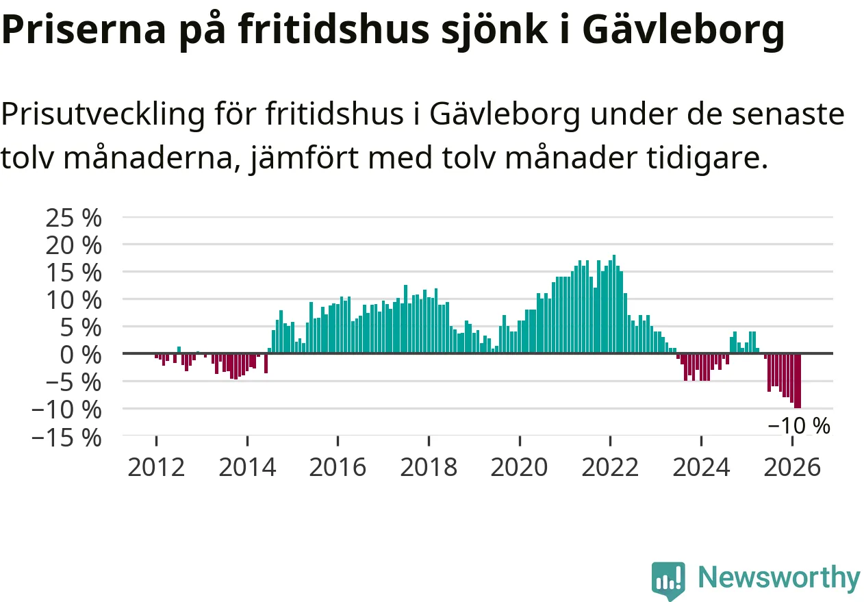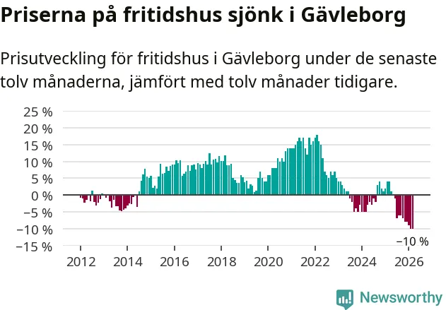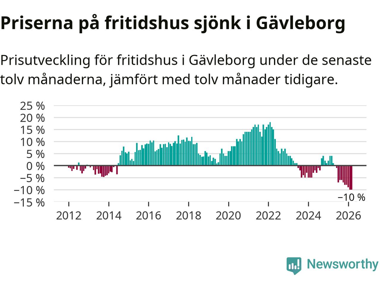 Priserna på fritidshus har gått ner i Gävleborgs län. Medelpriset på försäljningarna under de senaste tolv månaderna visar på en nedgång med 10 procent.