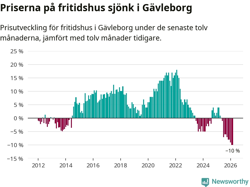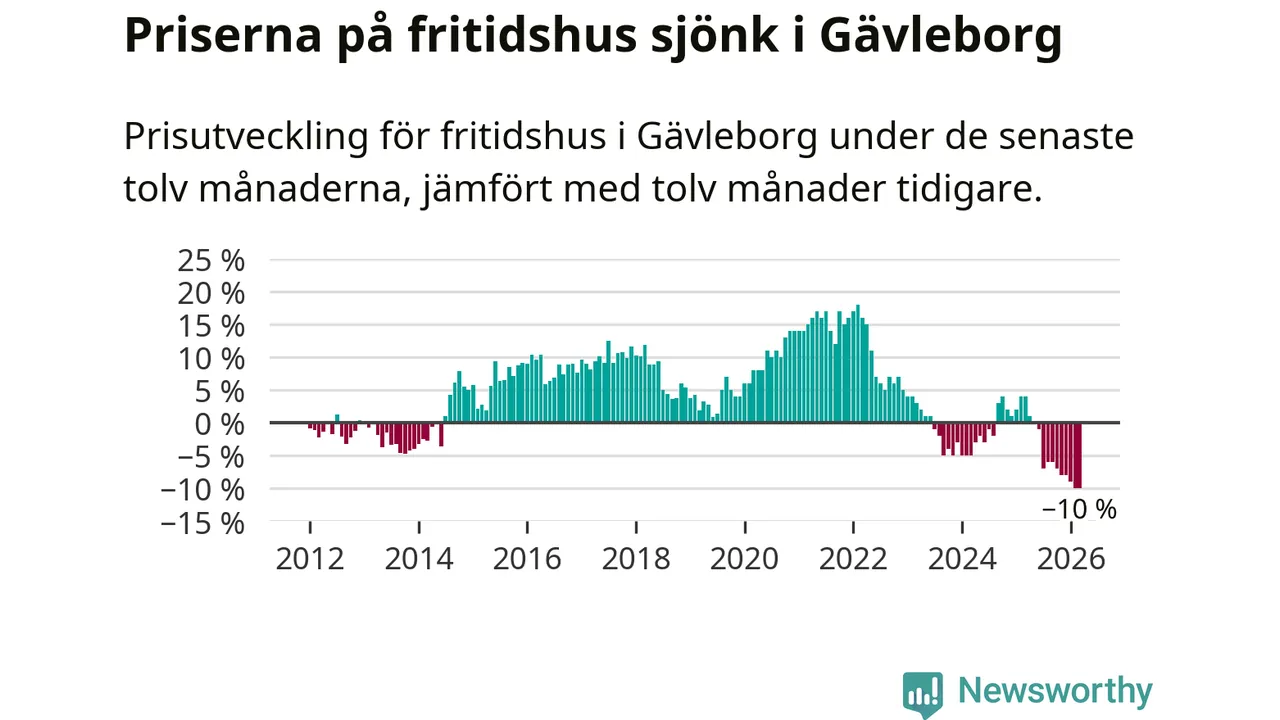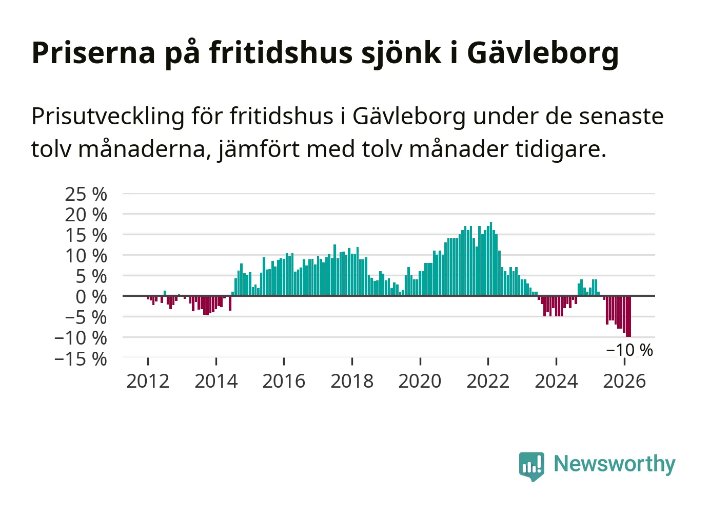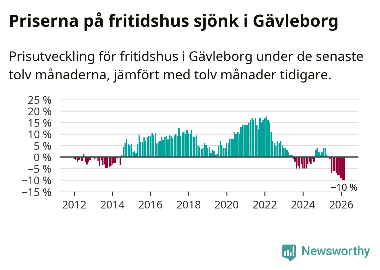 Priserna på fritidshus har gått ner i Gävleborgs län. Medelpriset på försäljningarna under de senaste tolv månaderna visar på en nedgång med 10 procent.