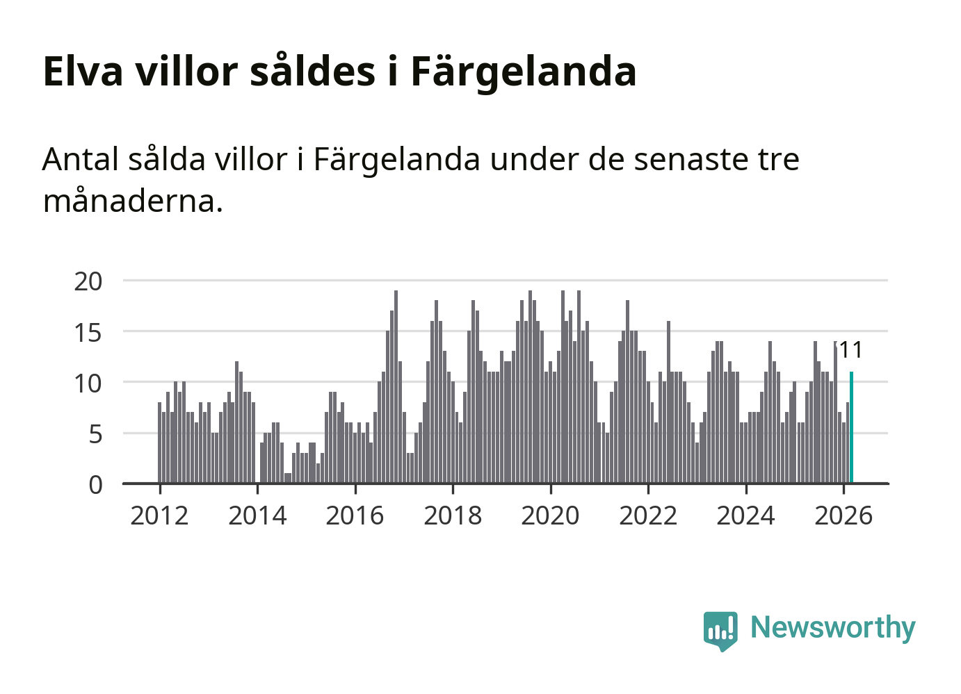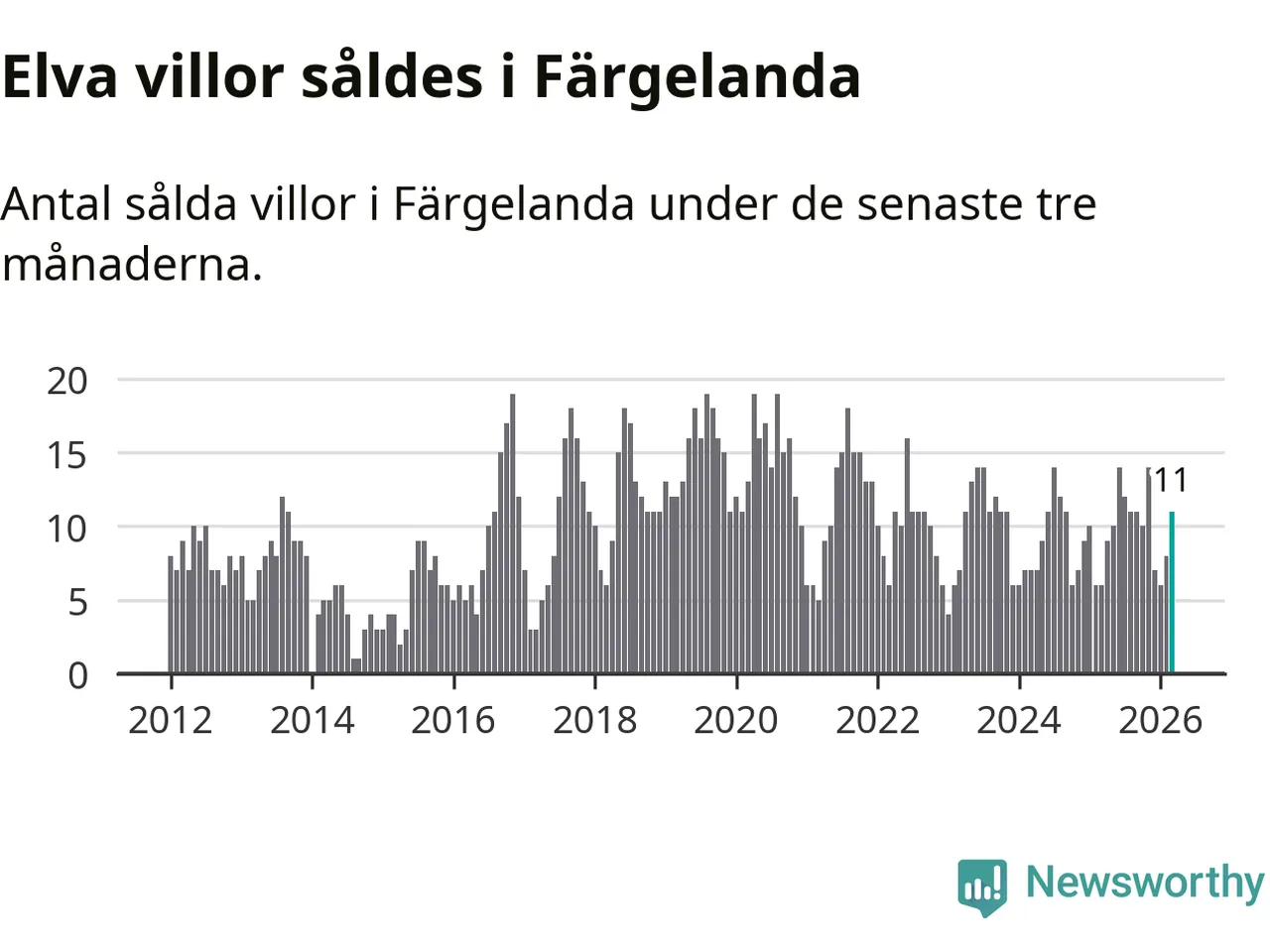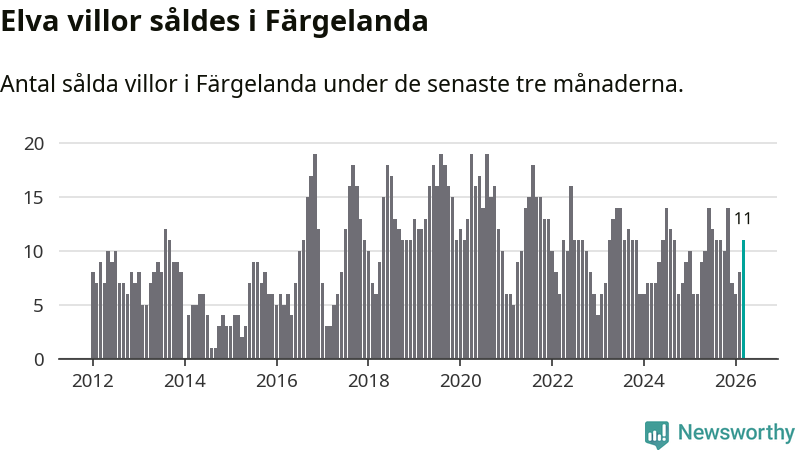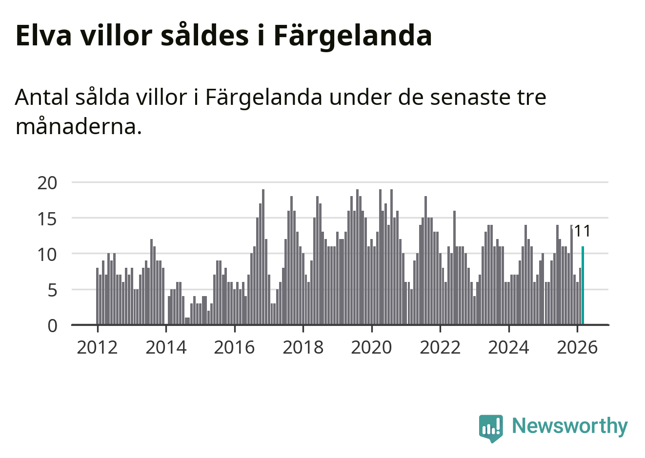 Mellan januari och mars gjordes sammanlagt elva affärer med villor i Färgelanda kommun. Det kan jämföras med sex vid motsvarande tid i fjol.