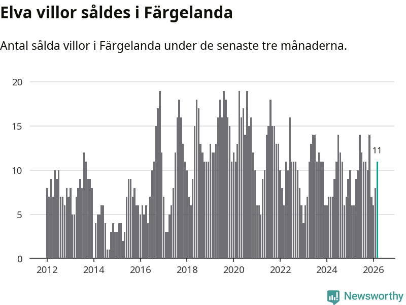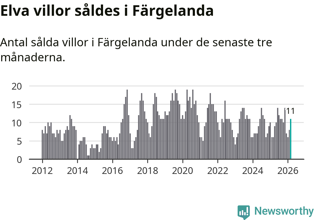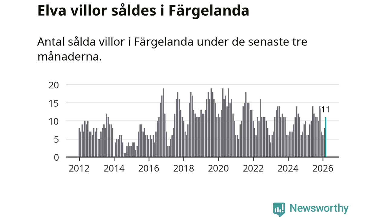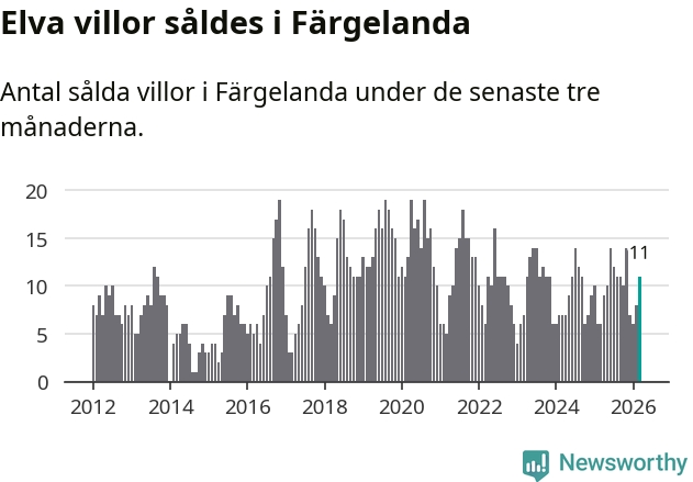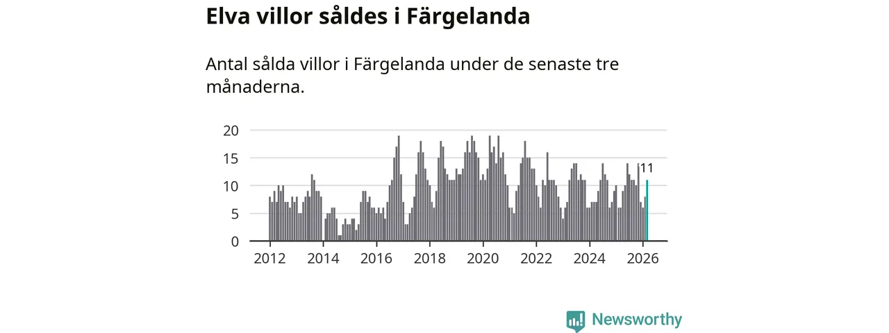 Mellan januari och mars gjordes sammanlagt elva affärer med villor i Färgelanda kommun. Det kan jämföras med sex vid motsvarande tid i fjol.