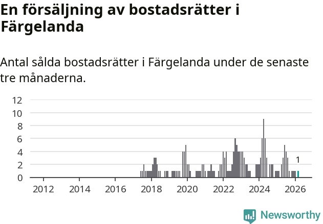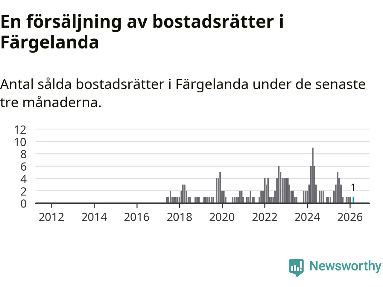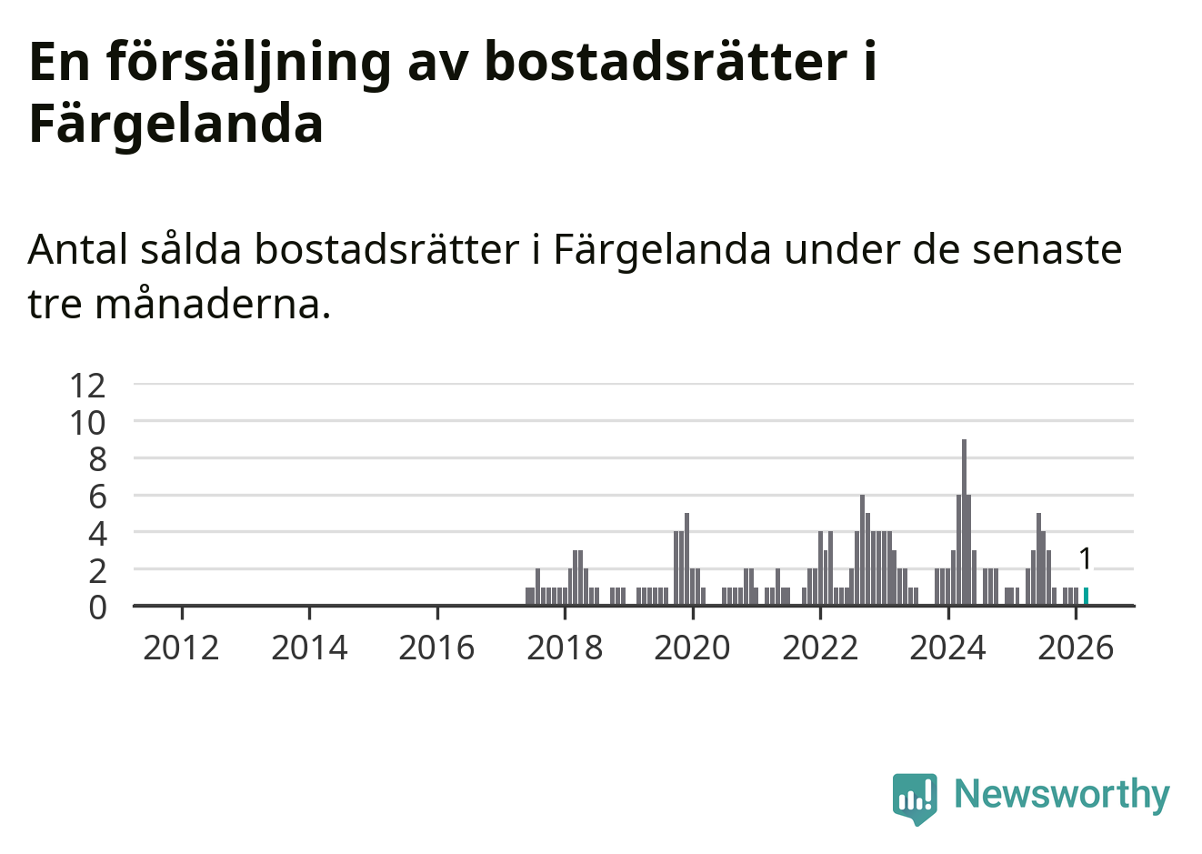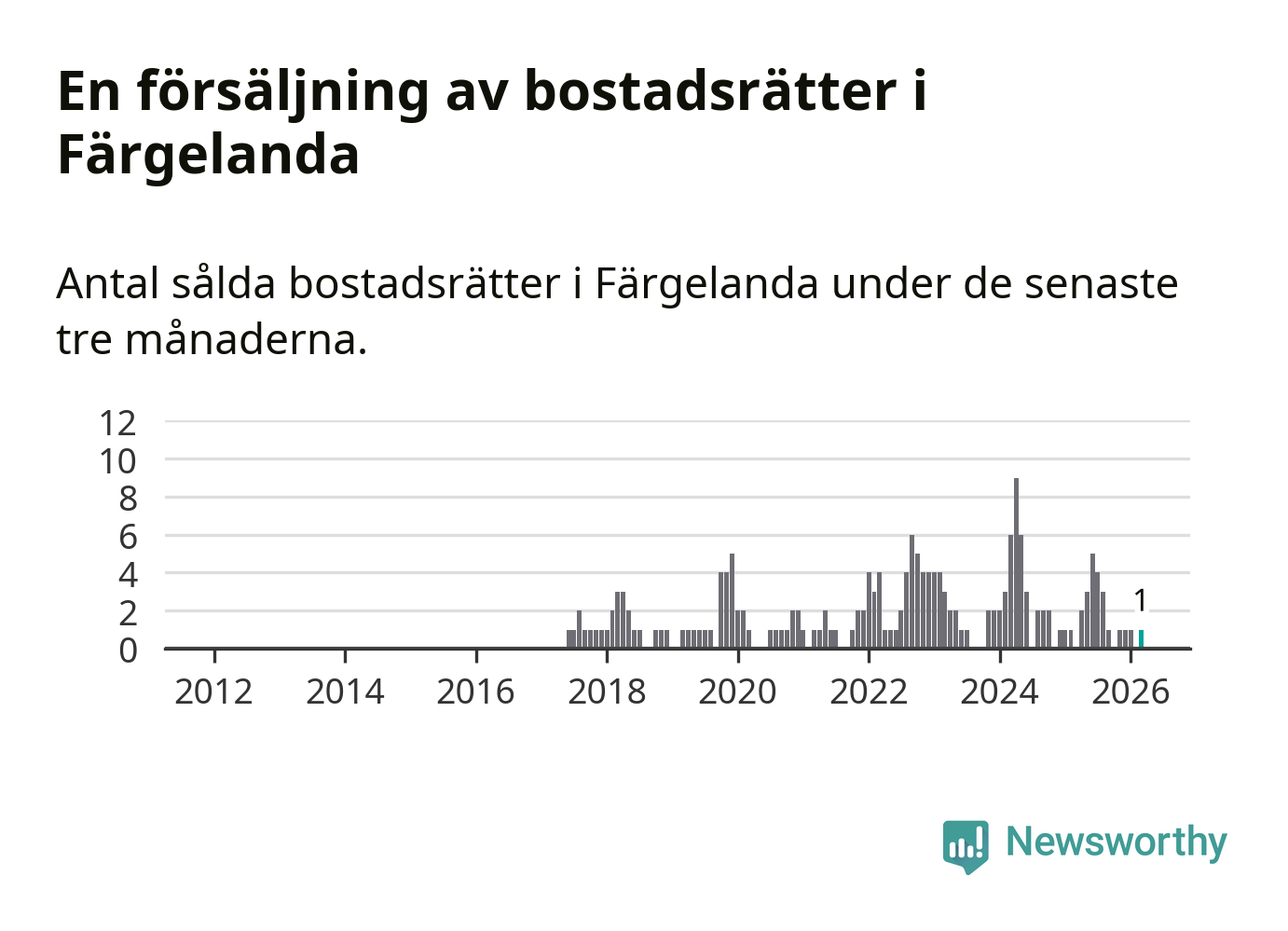 Mellan januari och mars gjordes sammanlagt en affär med bostadsrätter i Färgelanda kommun.
