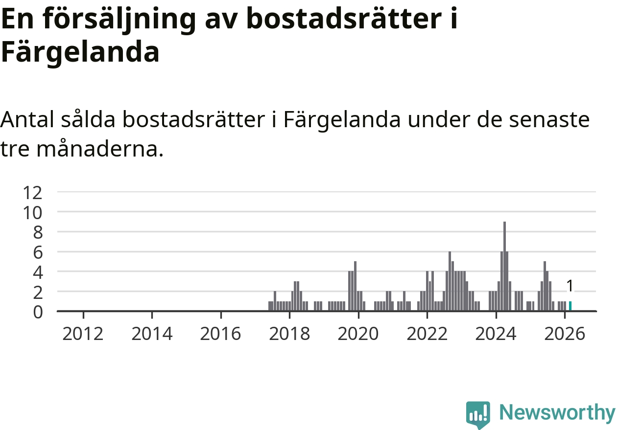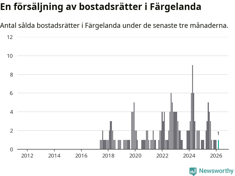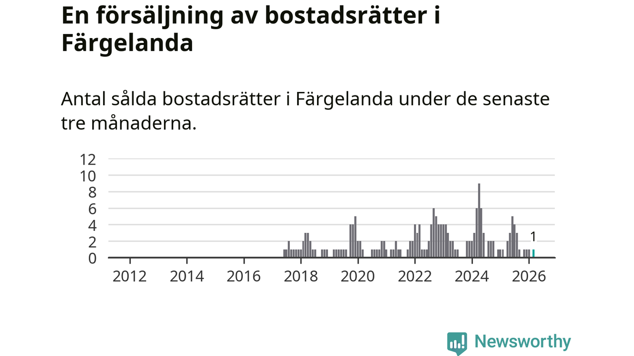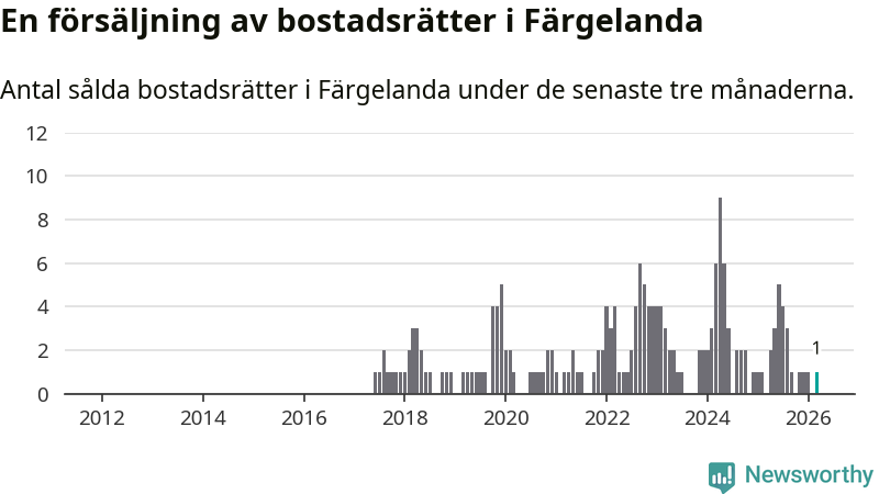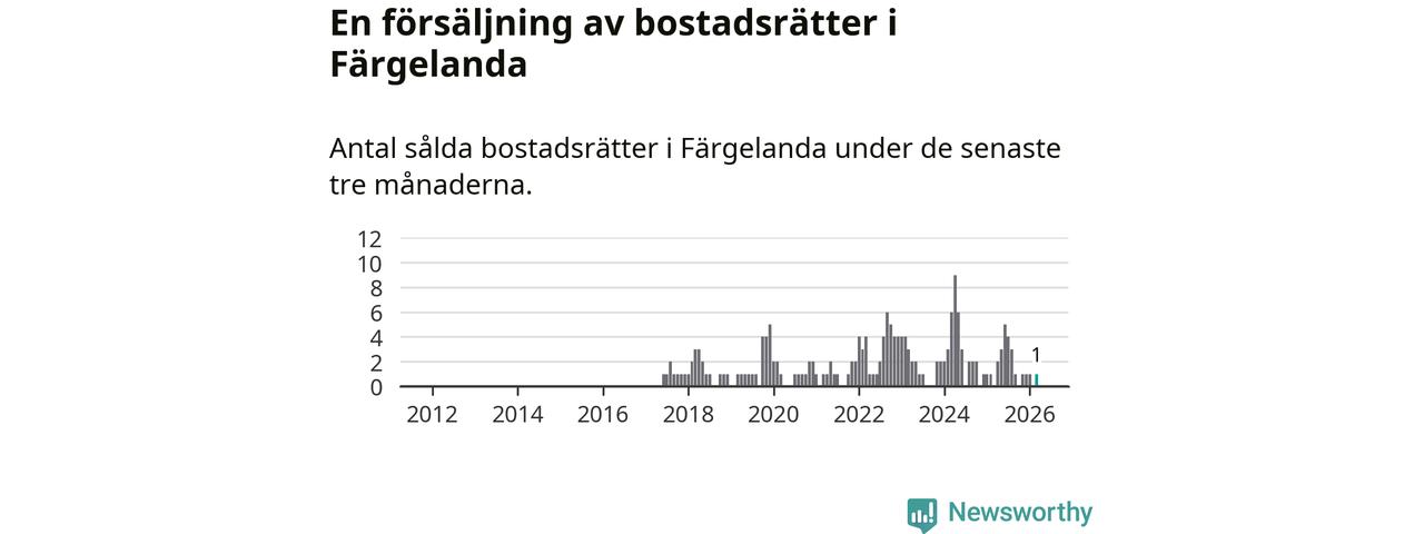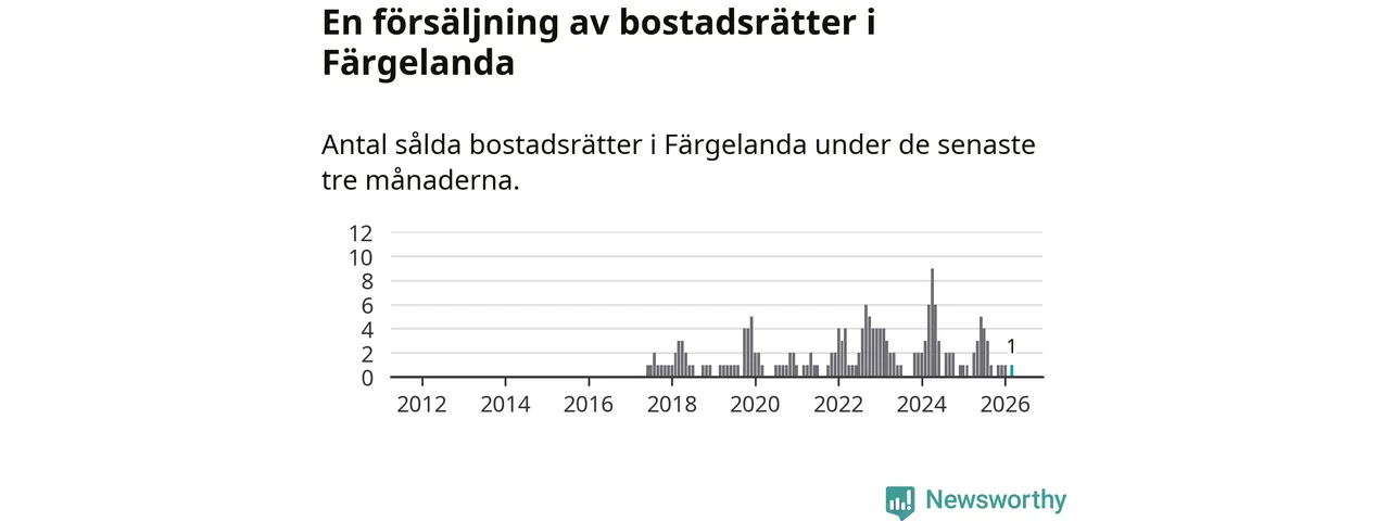 Mellan januari och mars gjordes sammanlagt en affär med bostadsrätter i Färgelanda kommun.