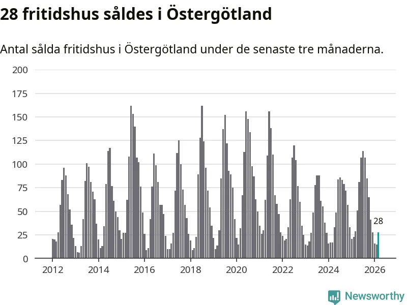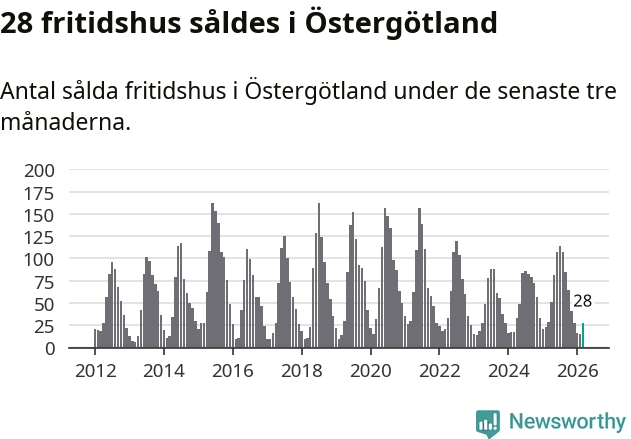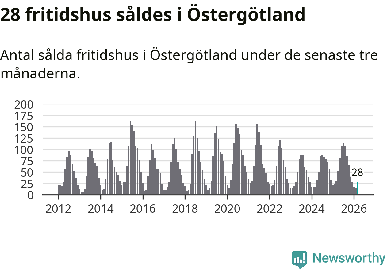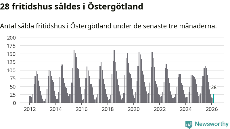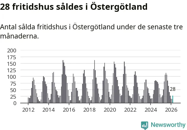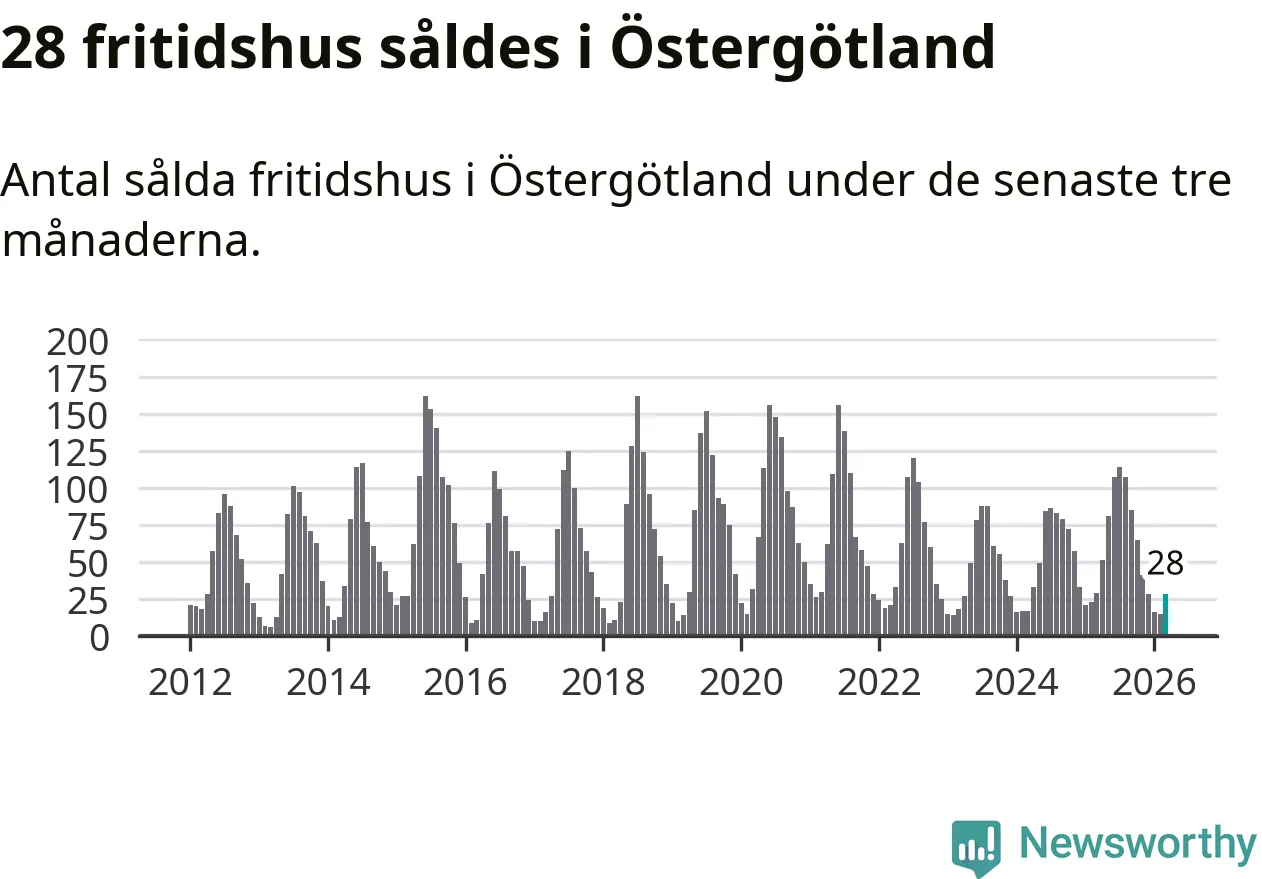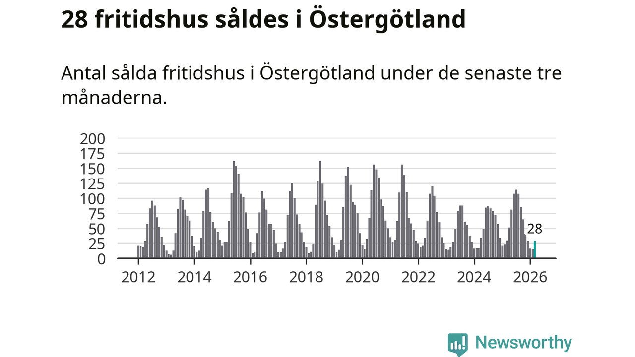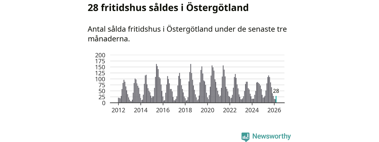 Sammanlagt såldes 28 fritidshus i Östergötlands län mellan januari och mars till ett genomsnittligt pris på 2,2 miljoner kronor. I fjol gjordes 29 affärer vid den här tiden på året.