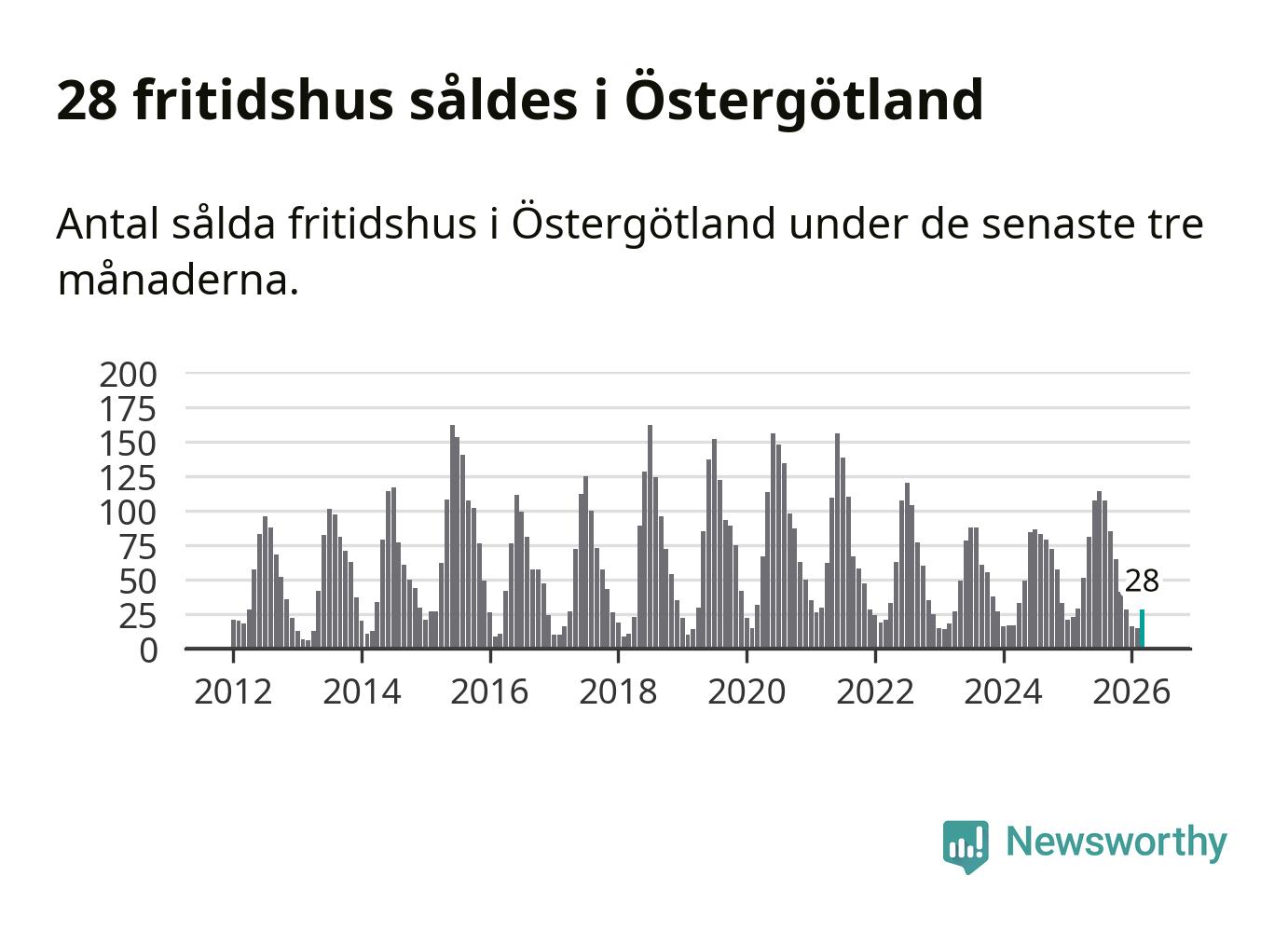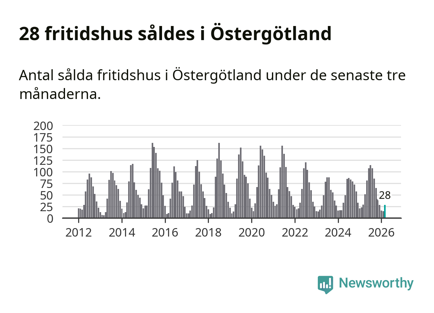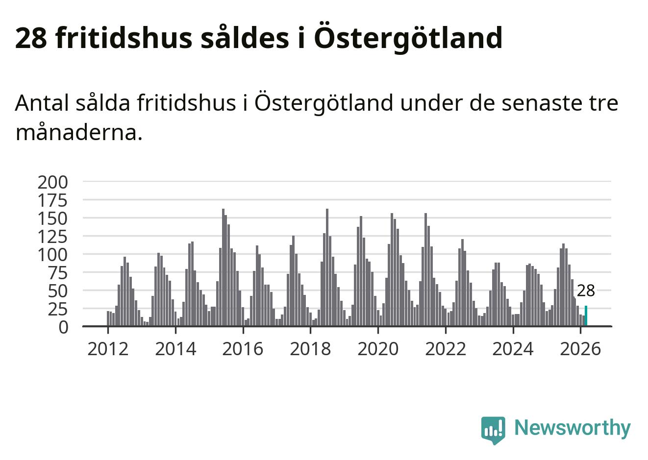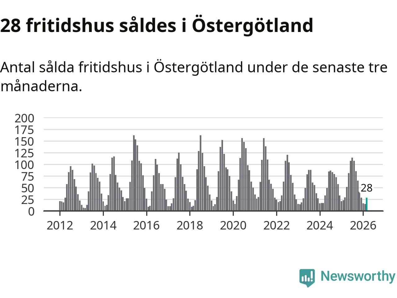 Sammanlagt såldes 28 fritidshus i Östergötlands län mellan januari och mars till ett genomsnittligt pris på 2,2 miljoner kronor. I fjol gjordes 29 affärer vid den här tiden på året.