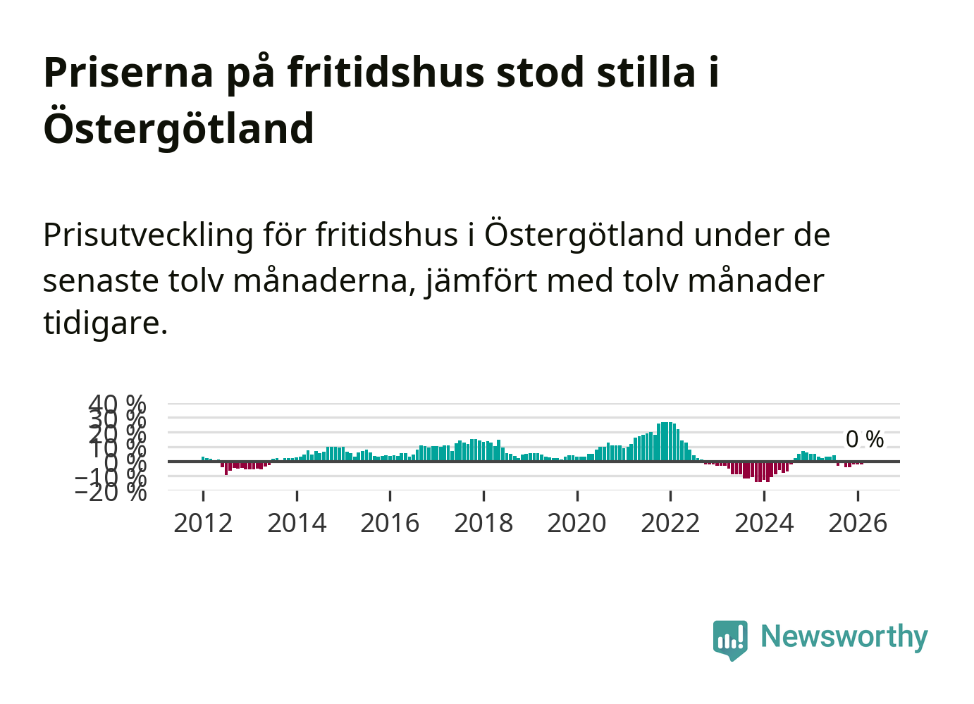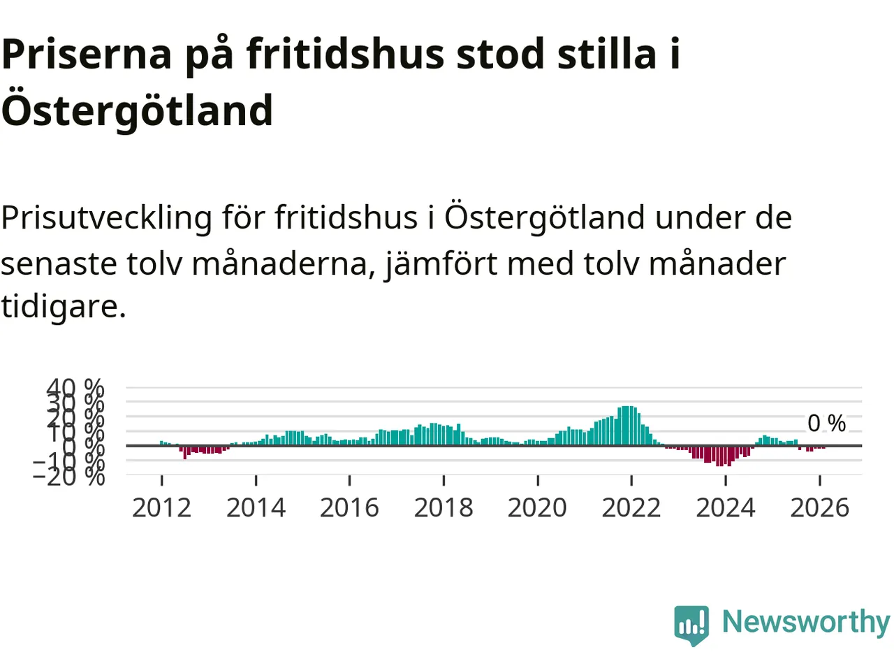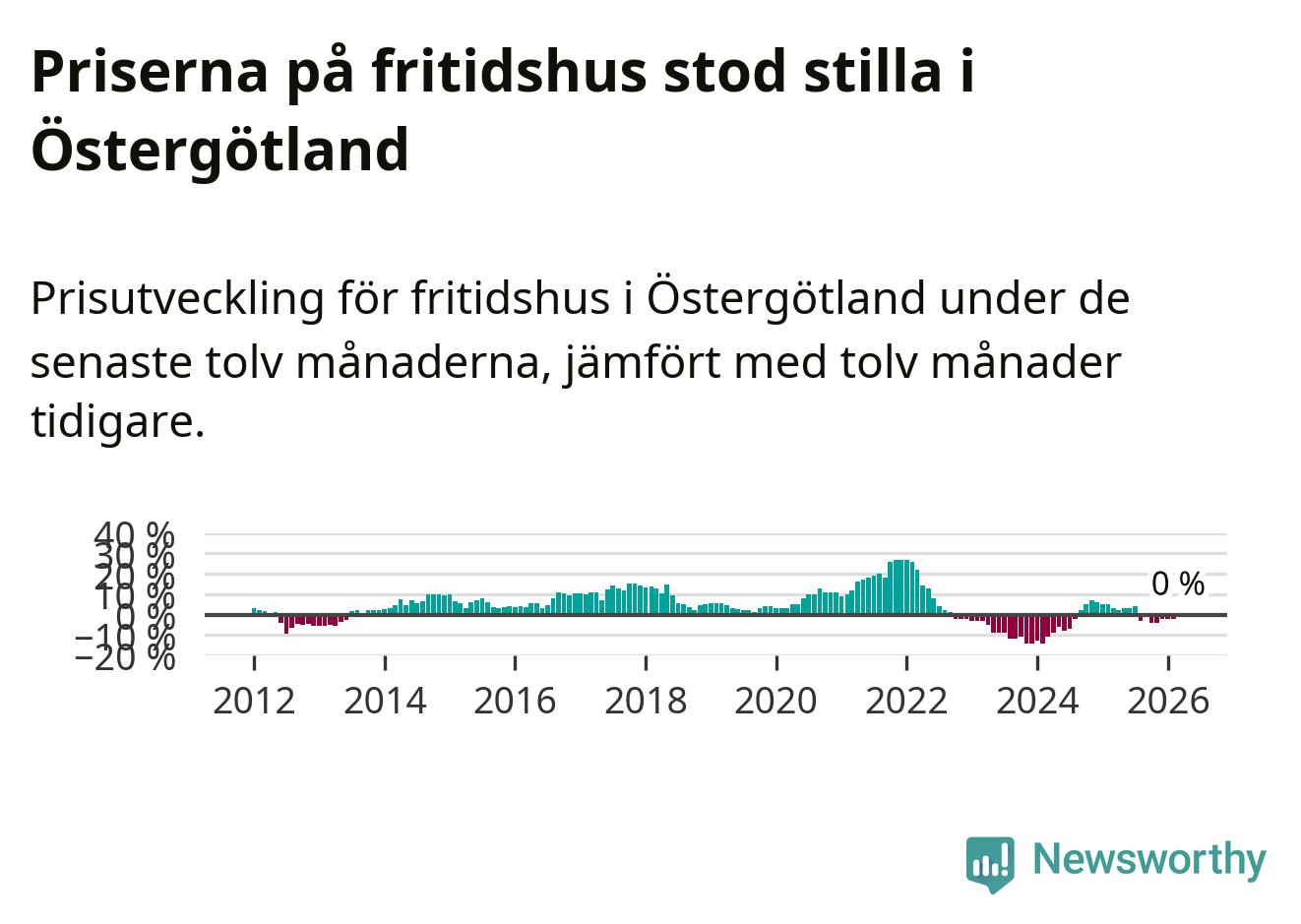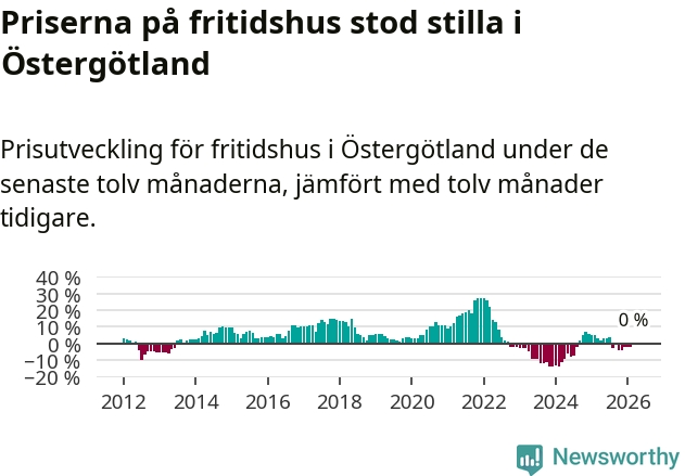 Priserna på fritidshus står i stort sett stilla i Östergötlands län. Medelpriset på de på försäljningarna under de senaste tolv månaderna låg på samma nivå som för ett år sedan.