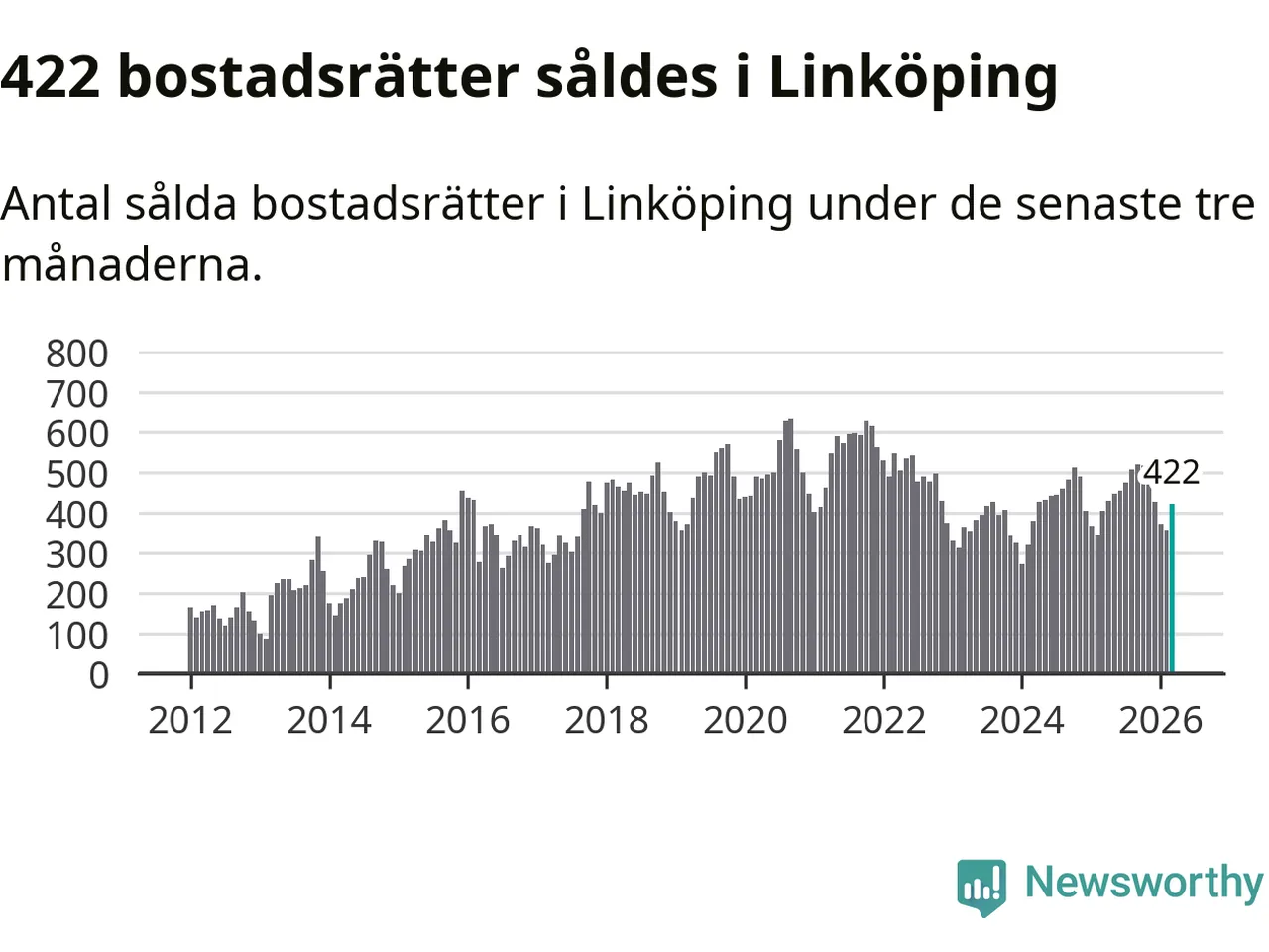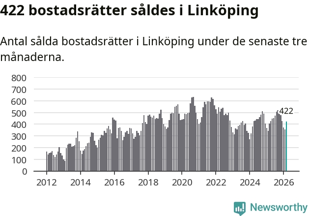 | Linköping | +3 % ▲ | 422 | 2,1 miljoner |